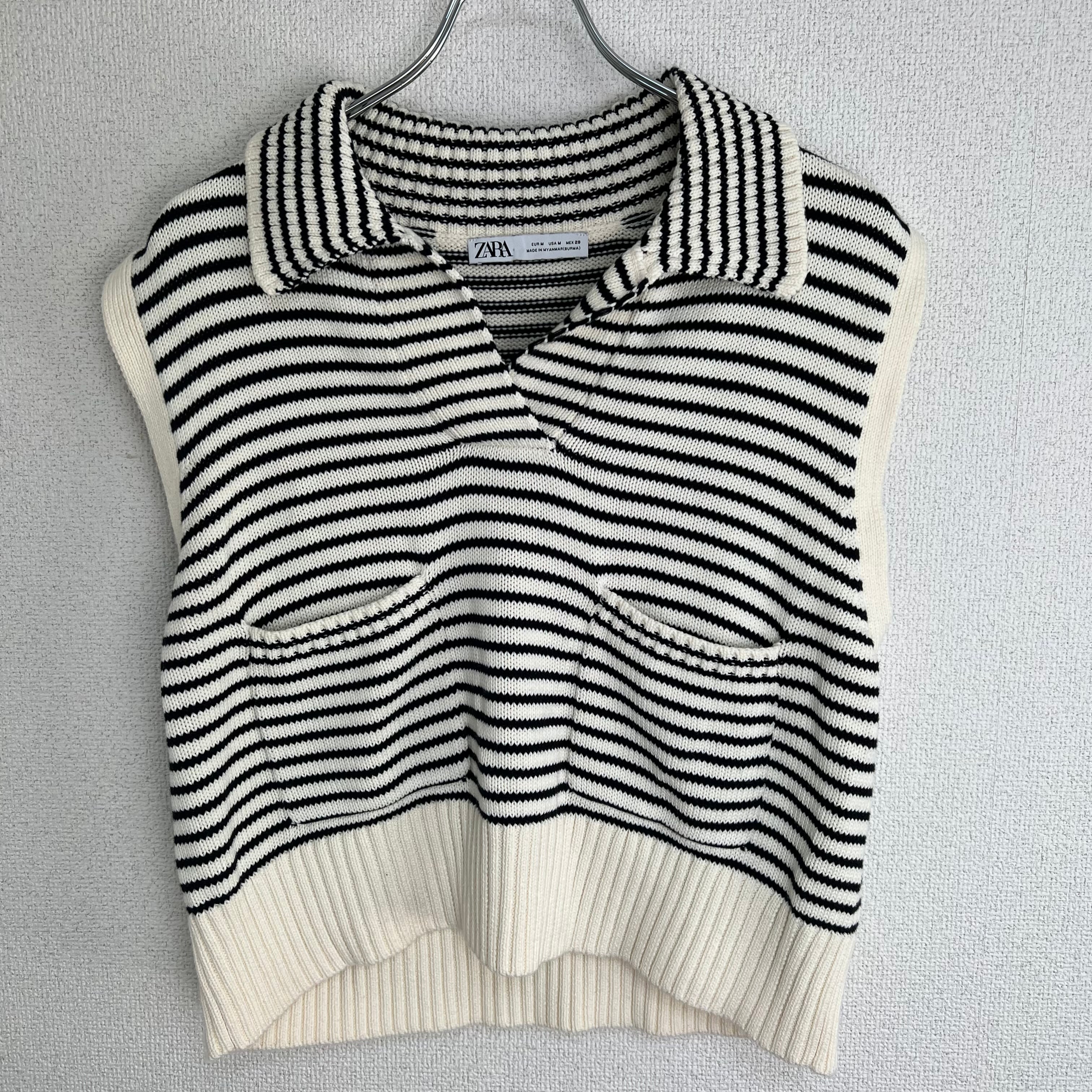 襟付きストライプ ニットベスト ZARA 古着 レディース