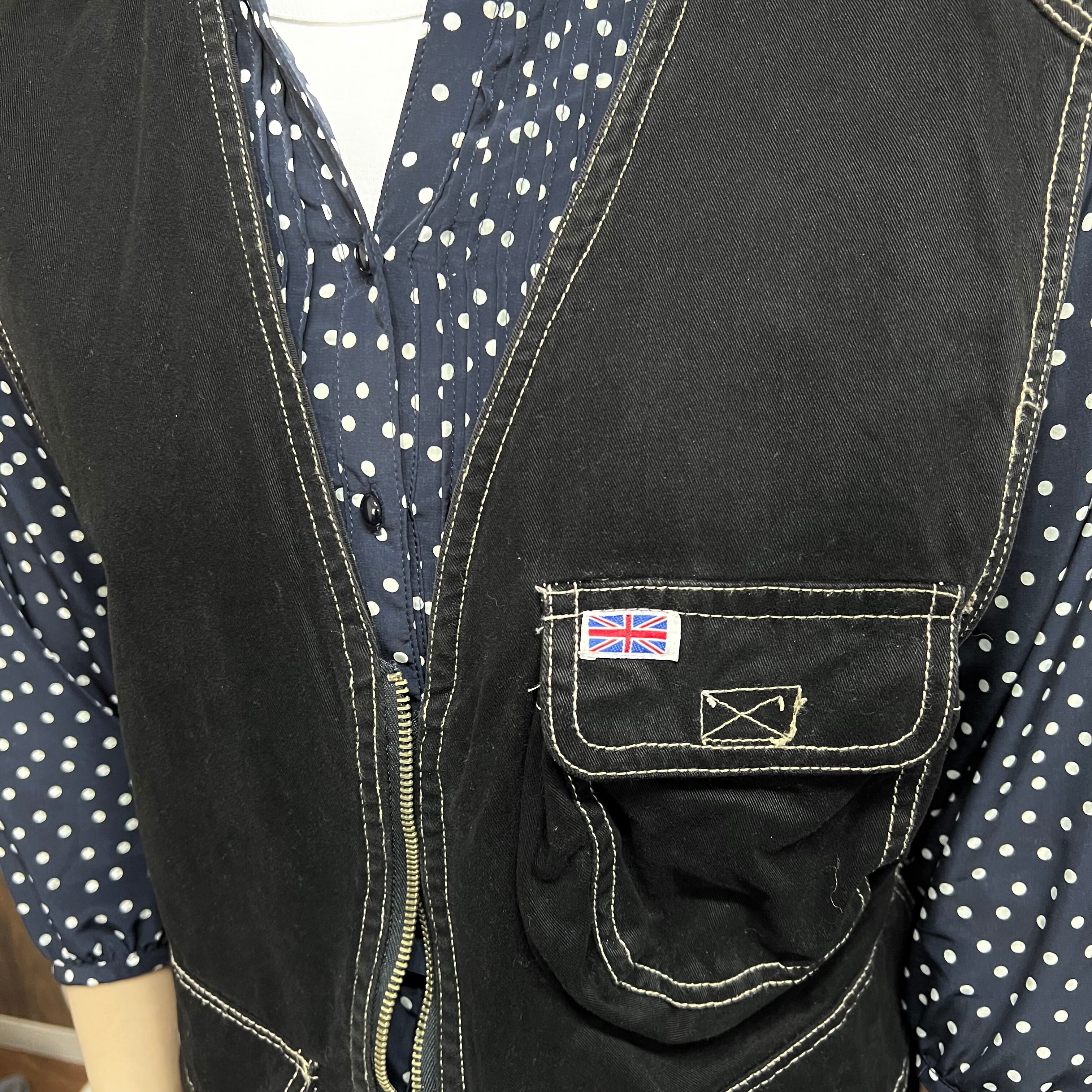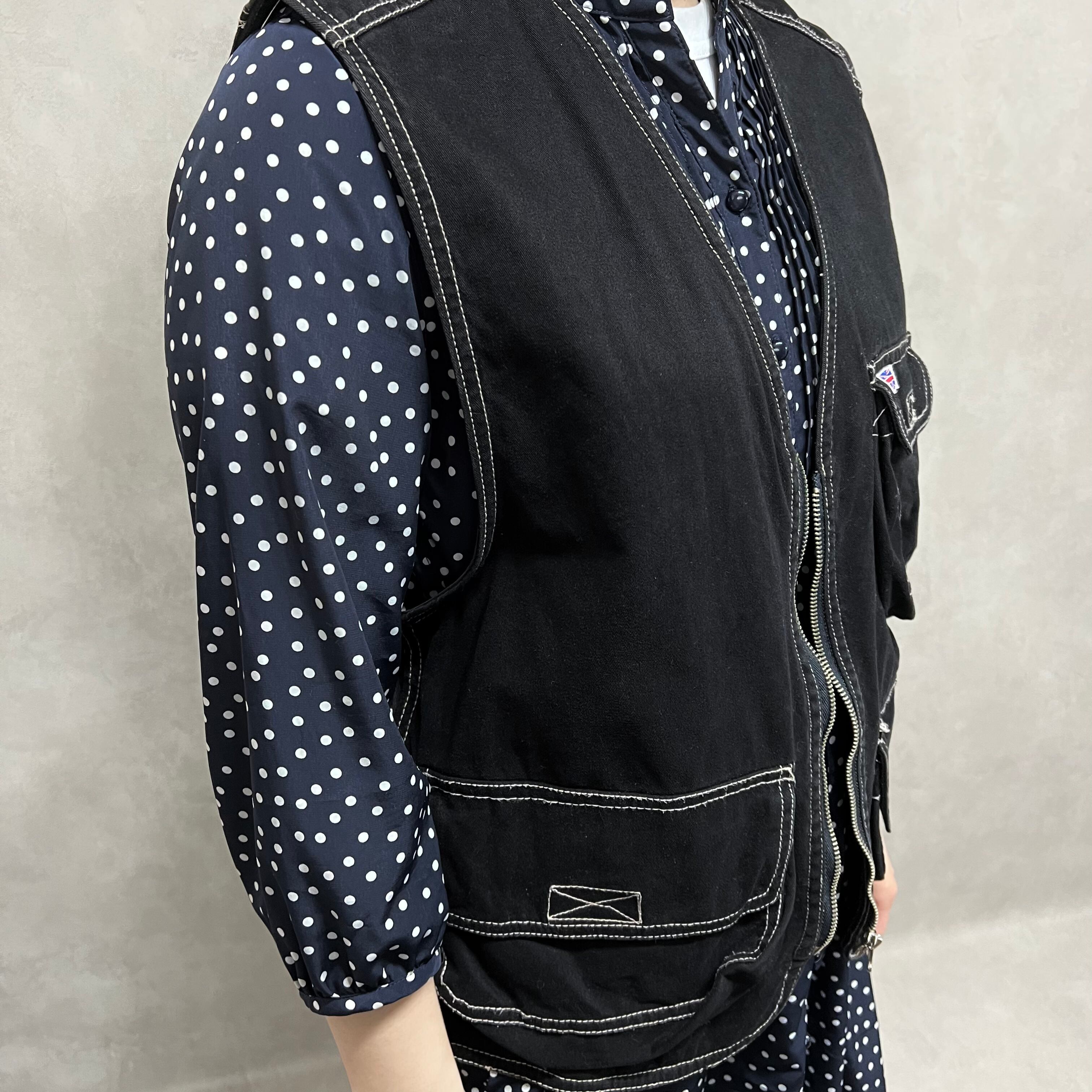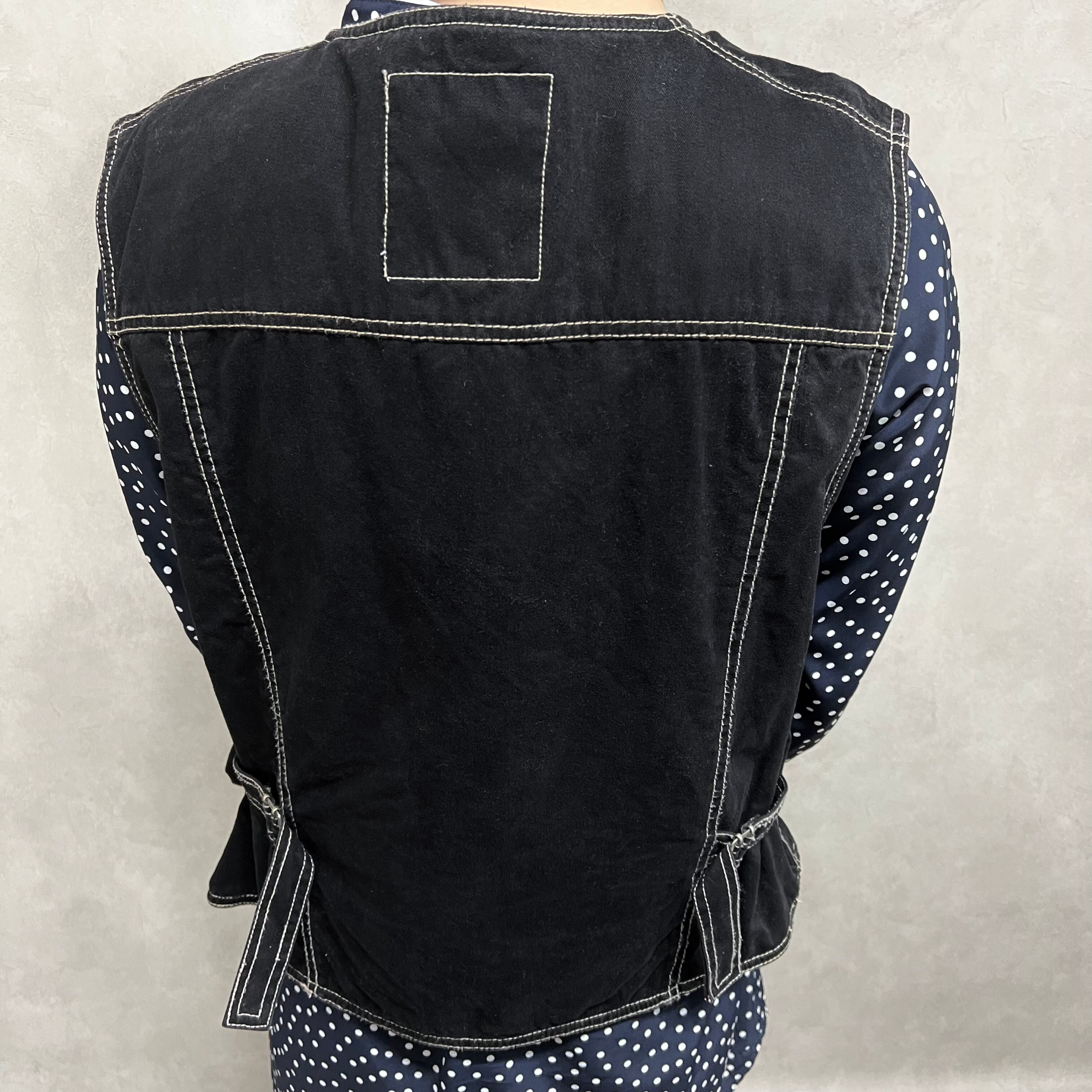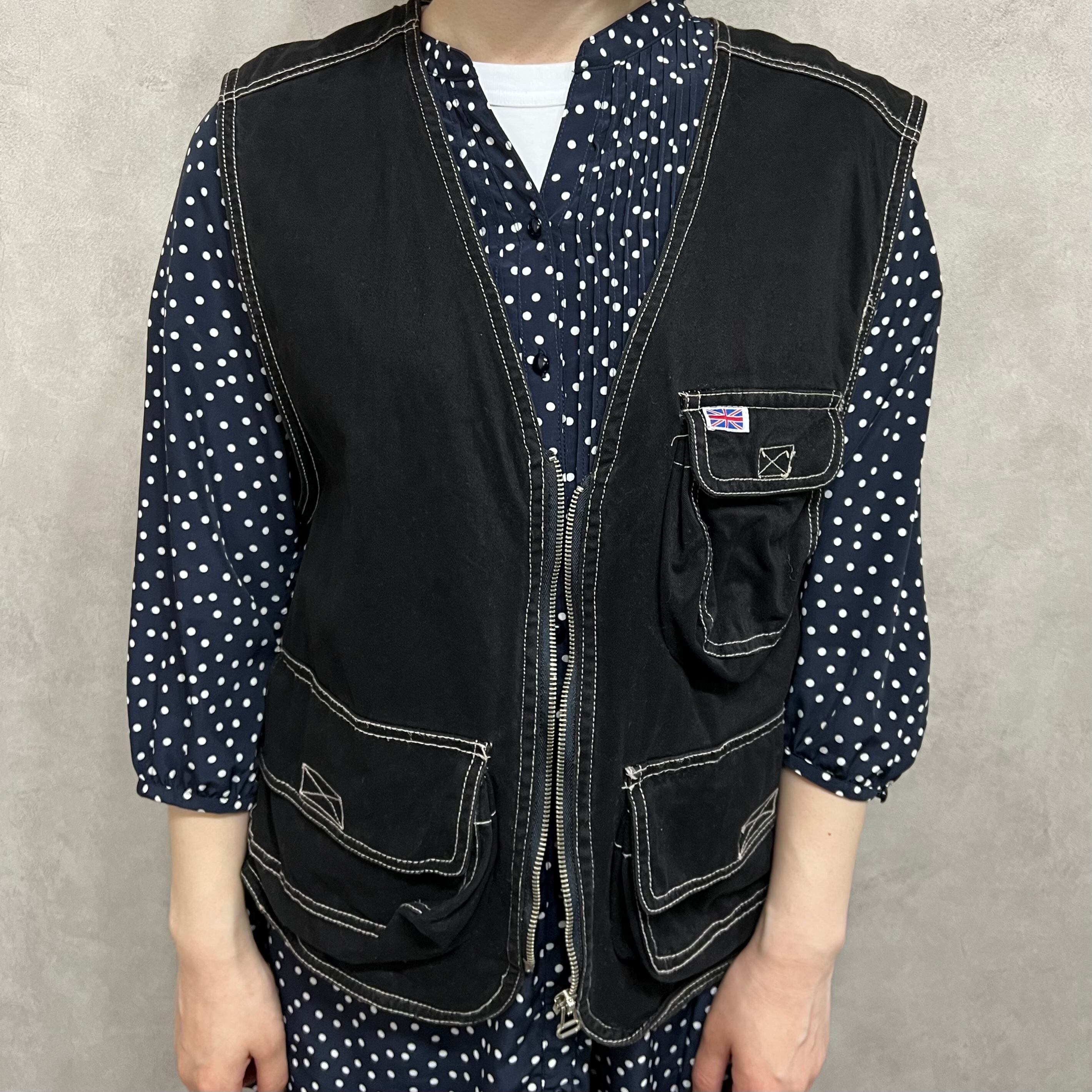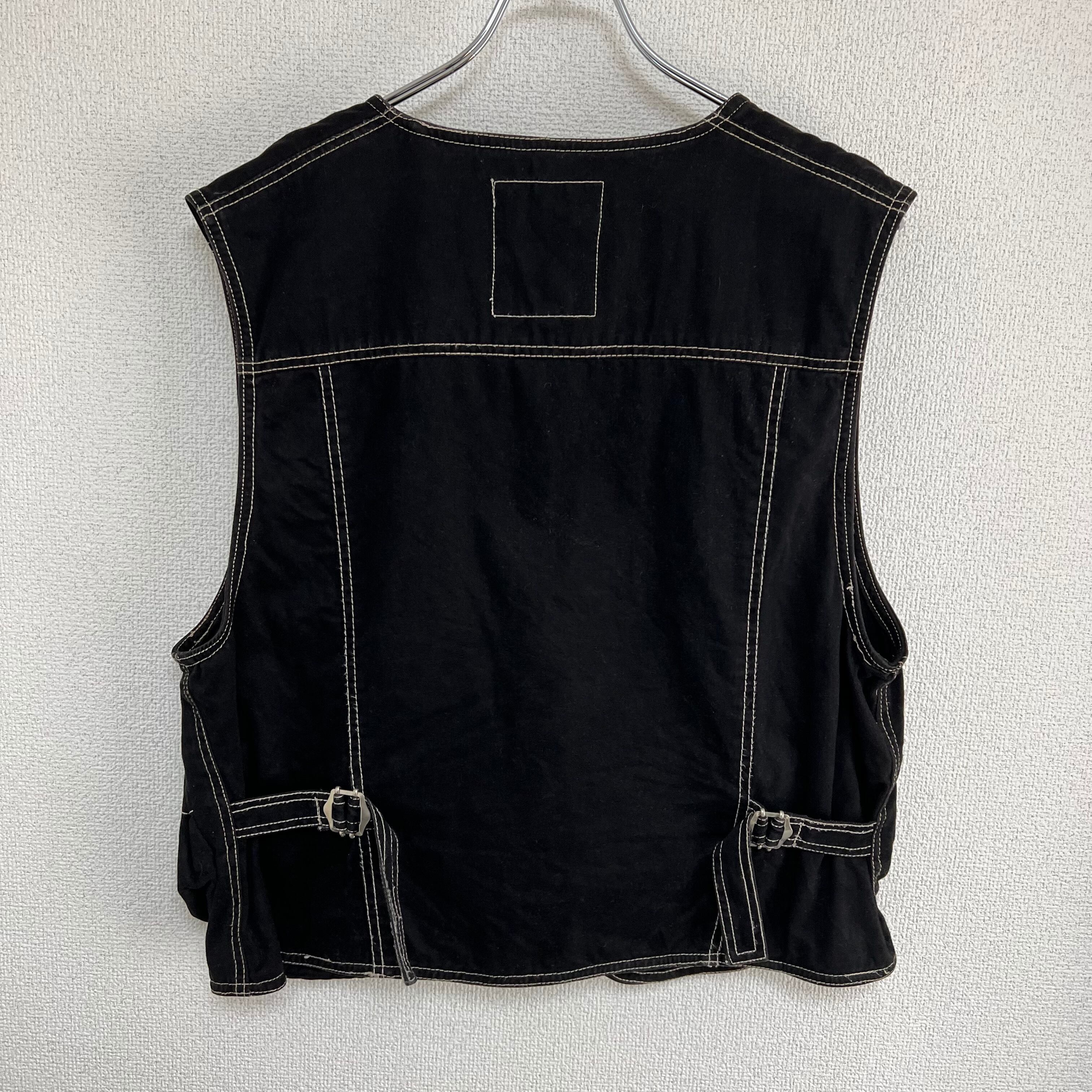 ステッチ入り ワークジップベスト ブラック 古着 レディース