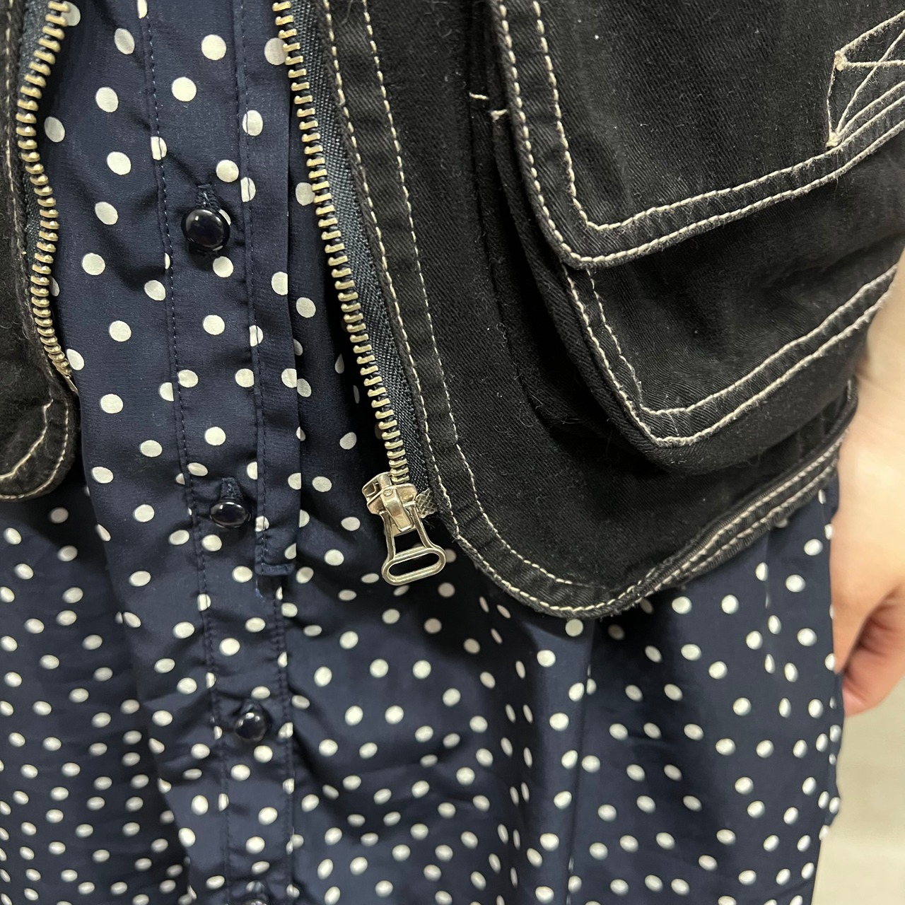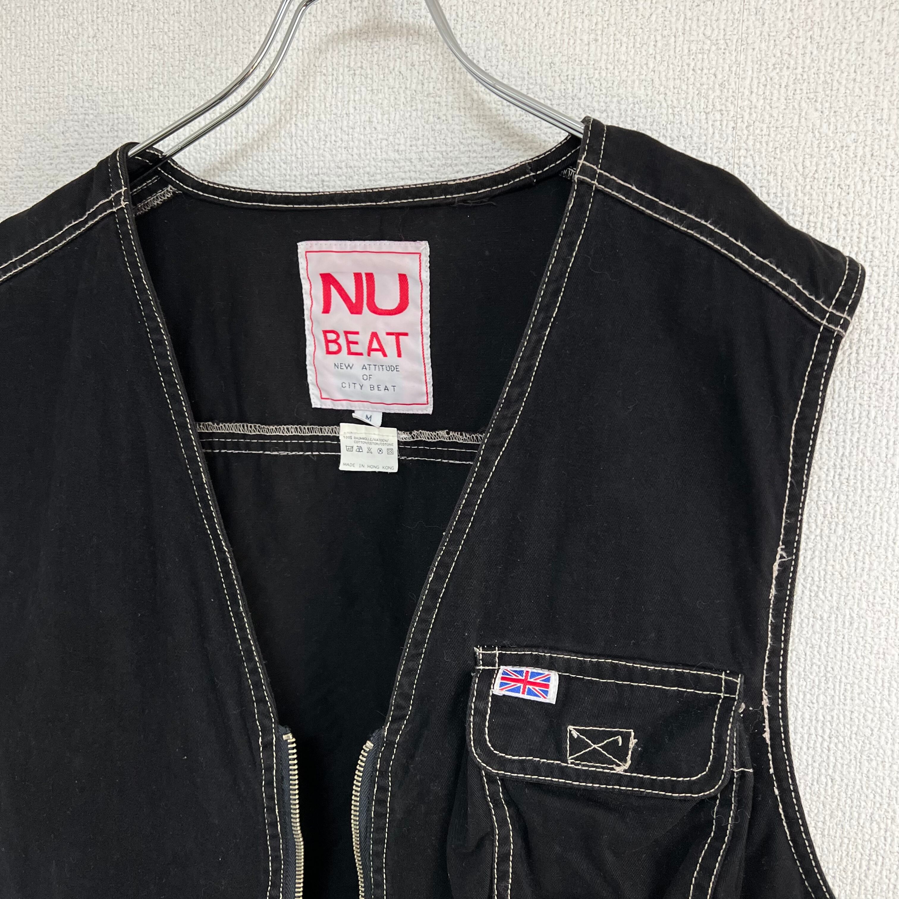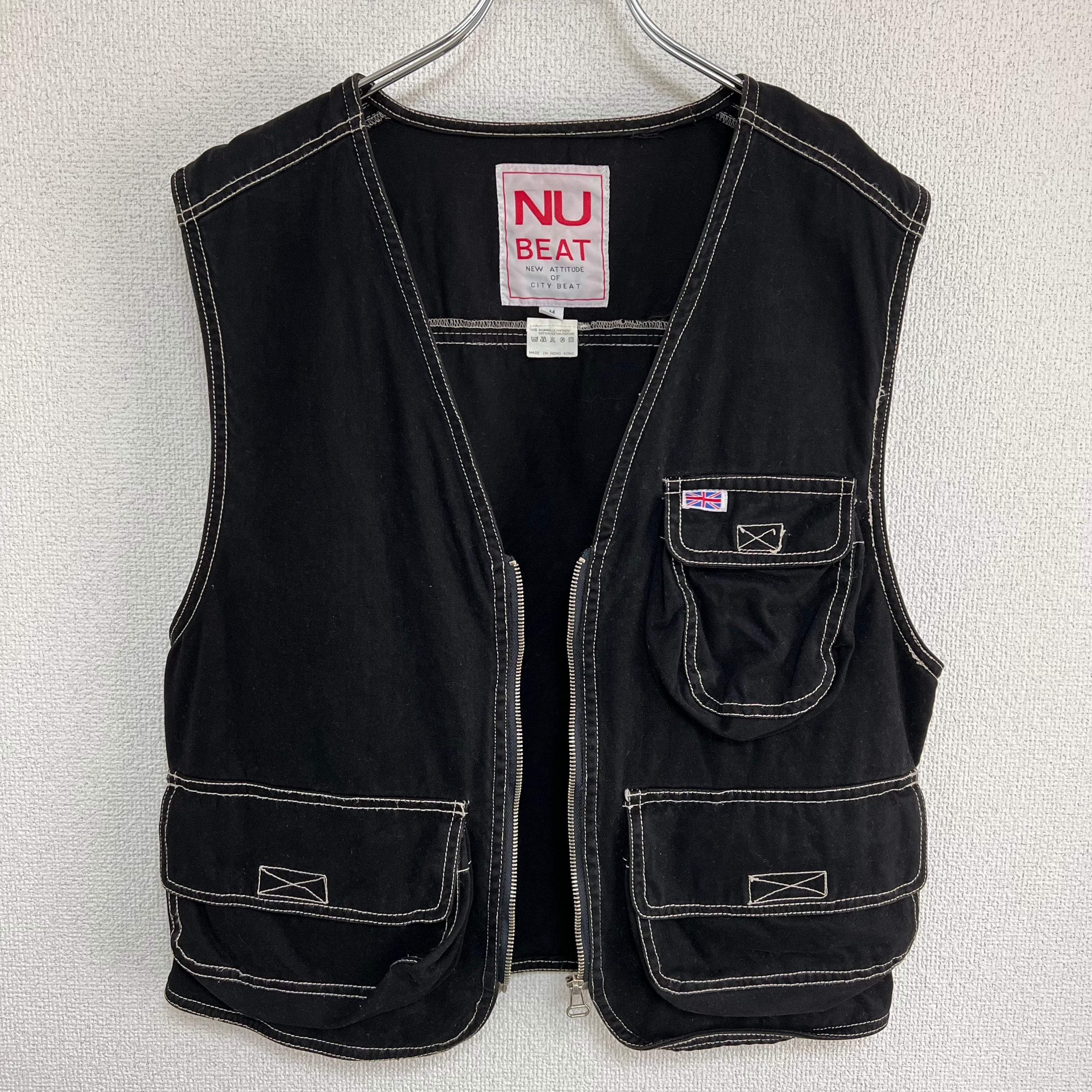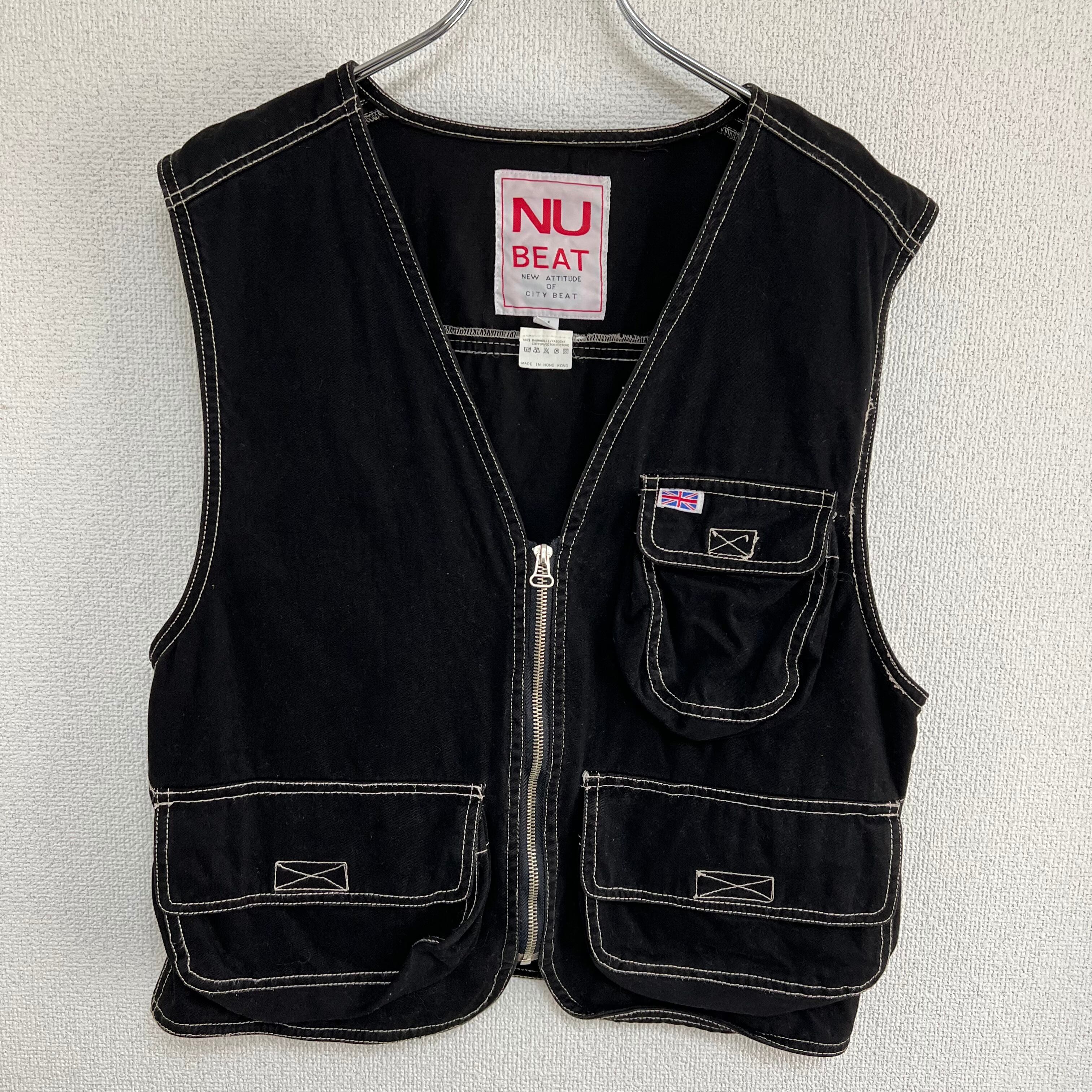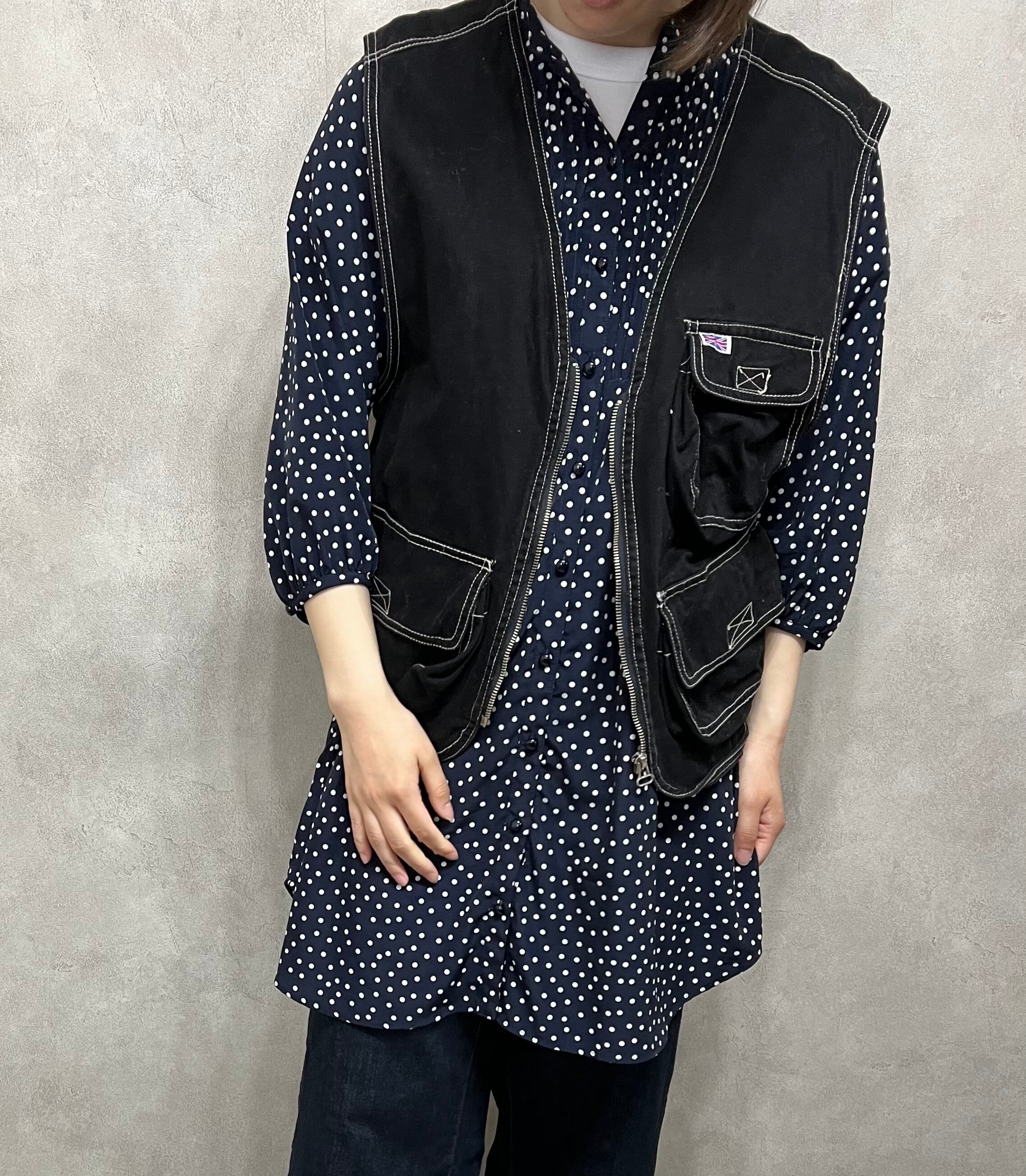 ステッチ入り ワークジップベスト ブラック 古着 レディース