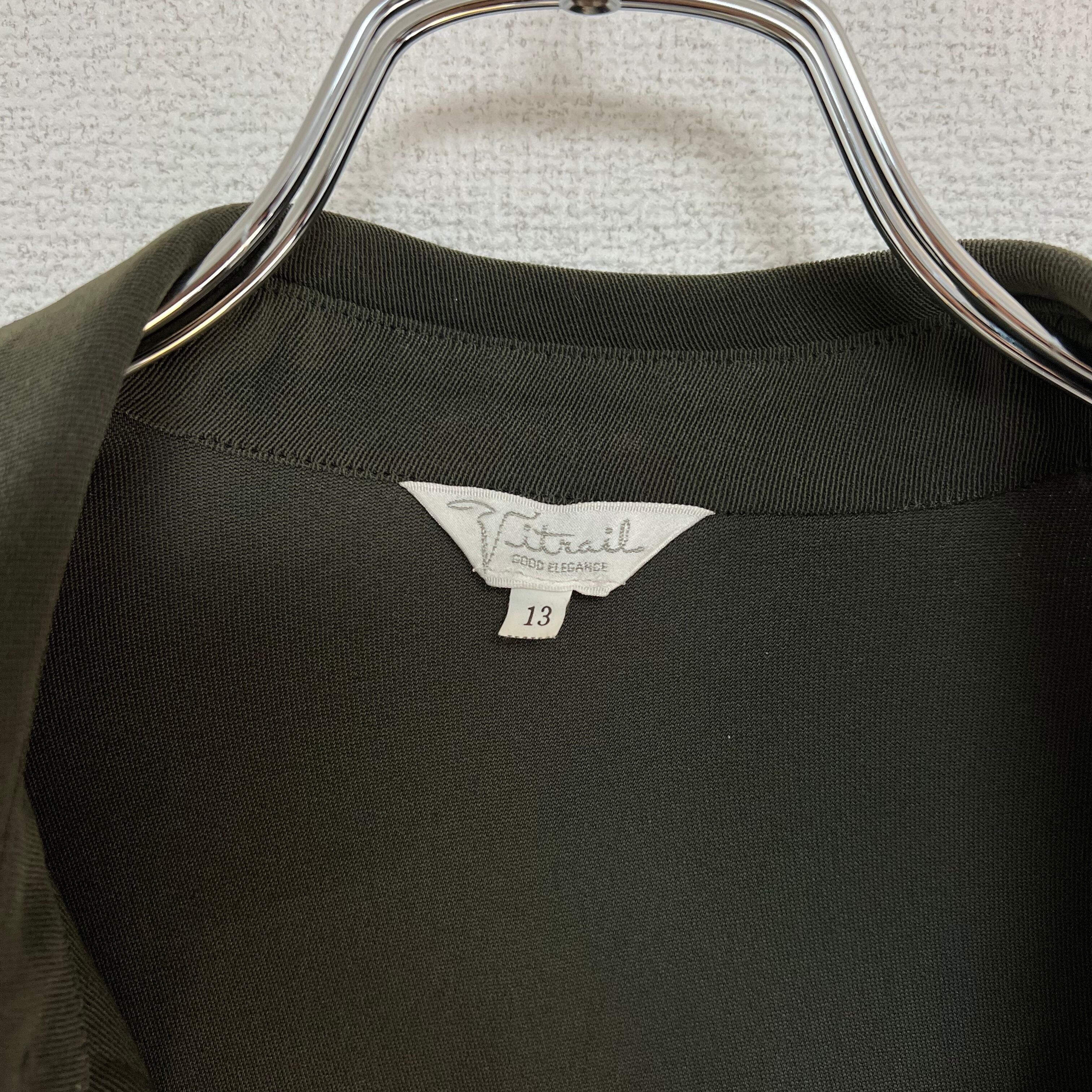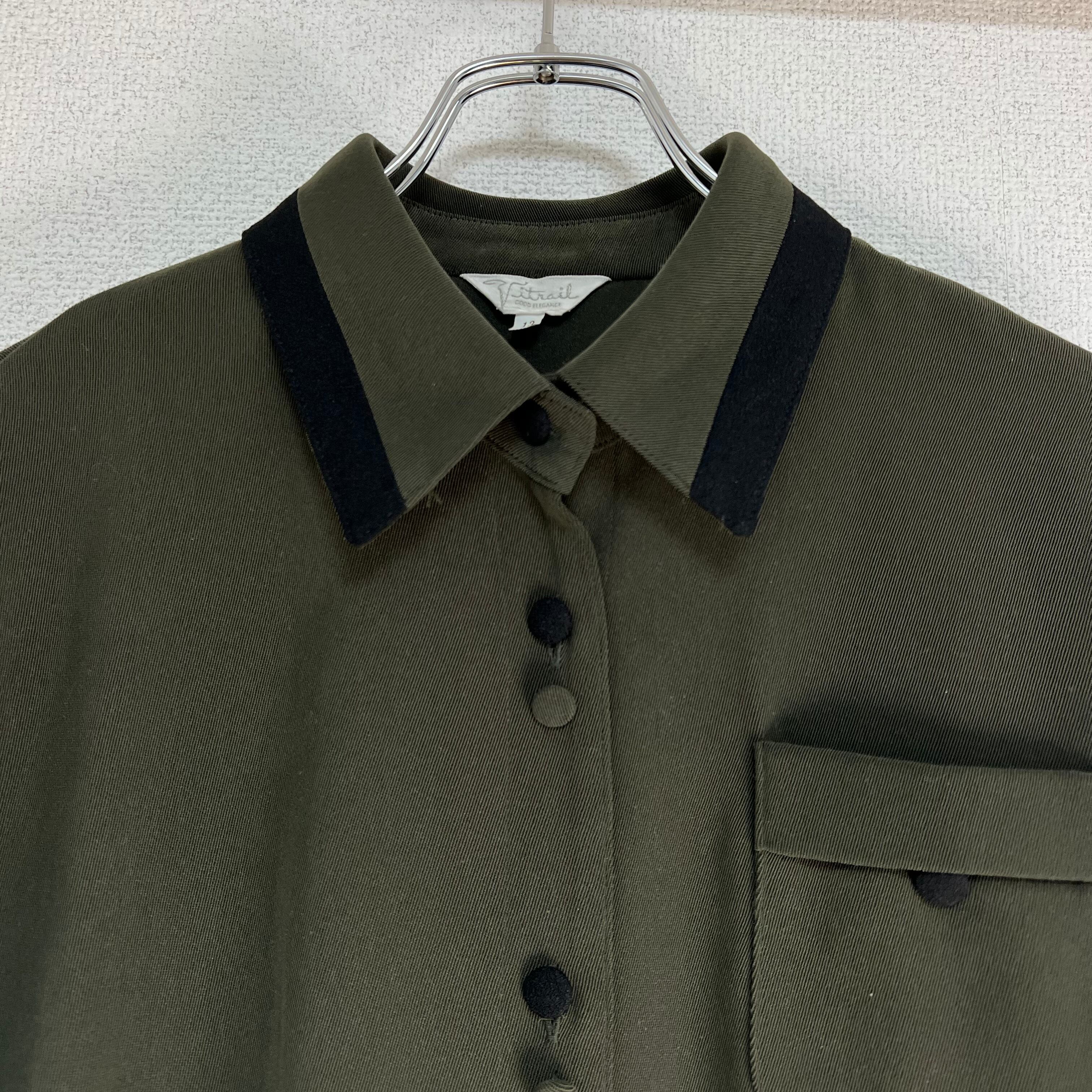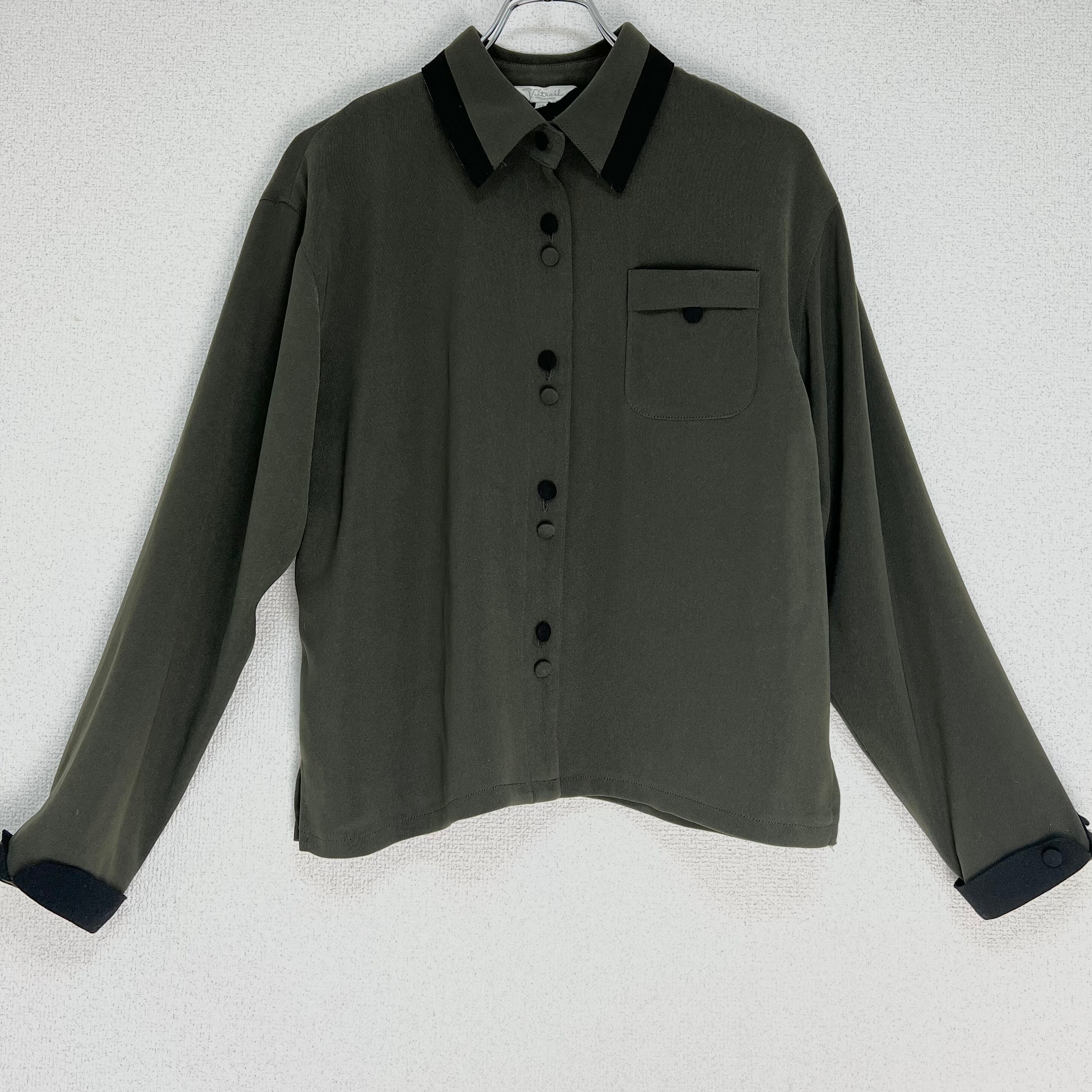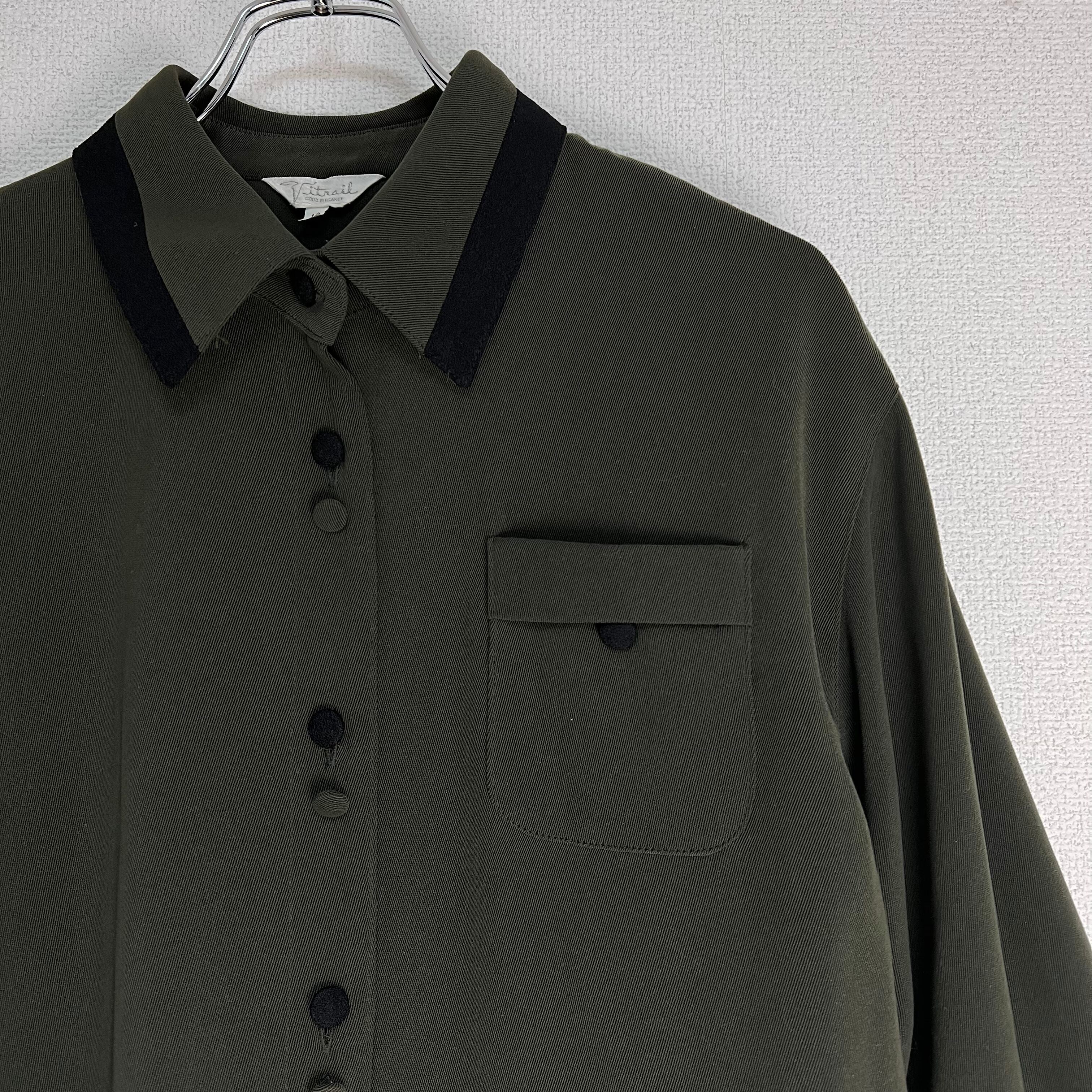 ドットボタン カジュアルシャツ 長袖 カーキ 古着 レディース vintage