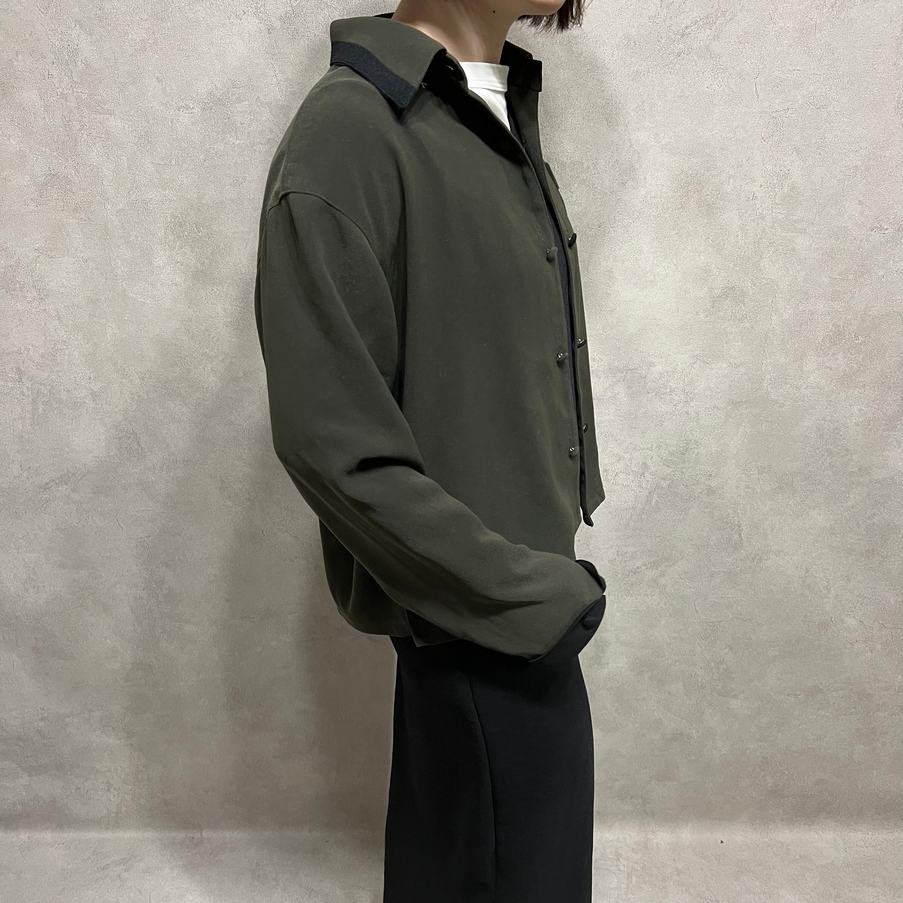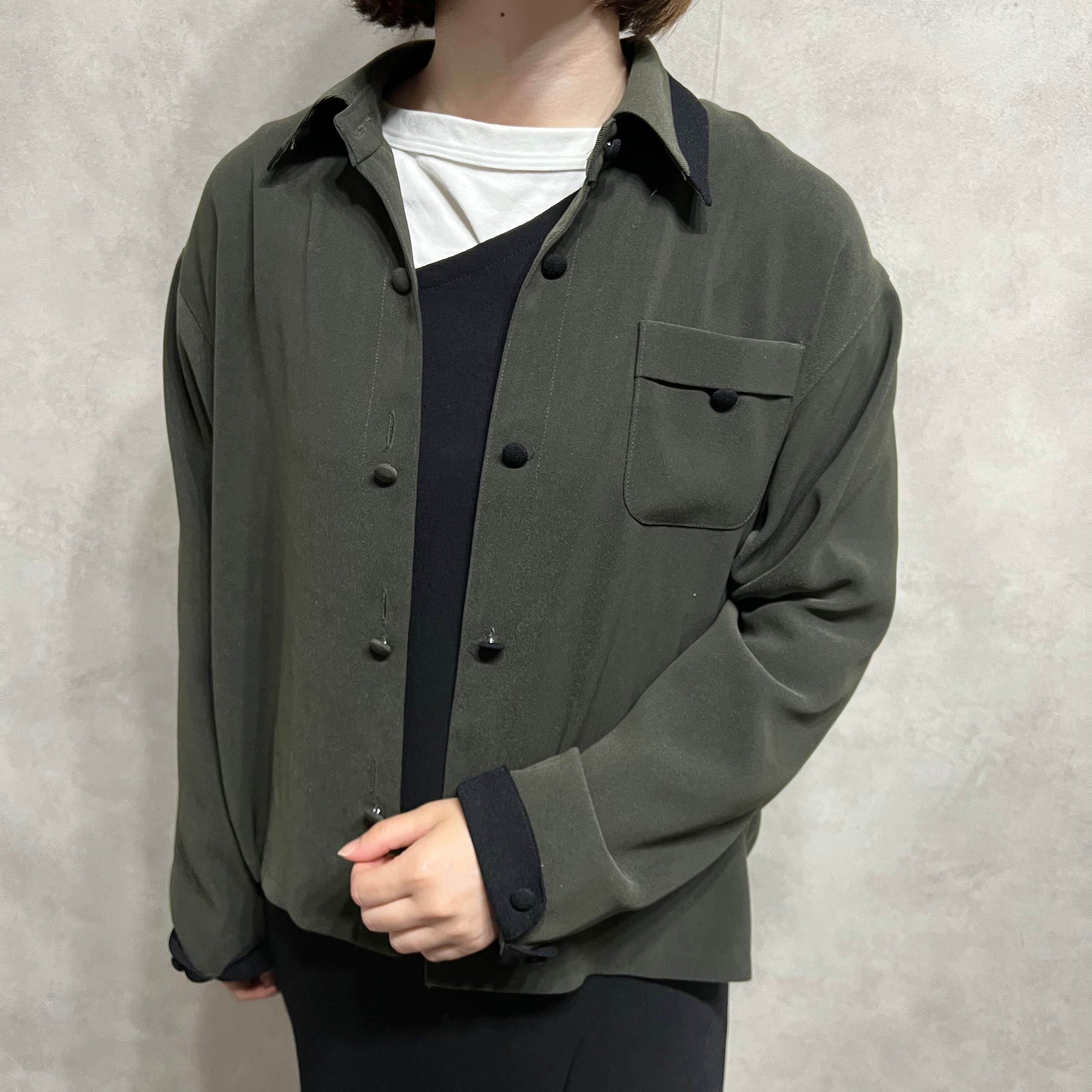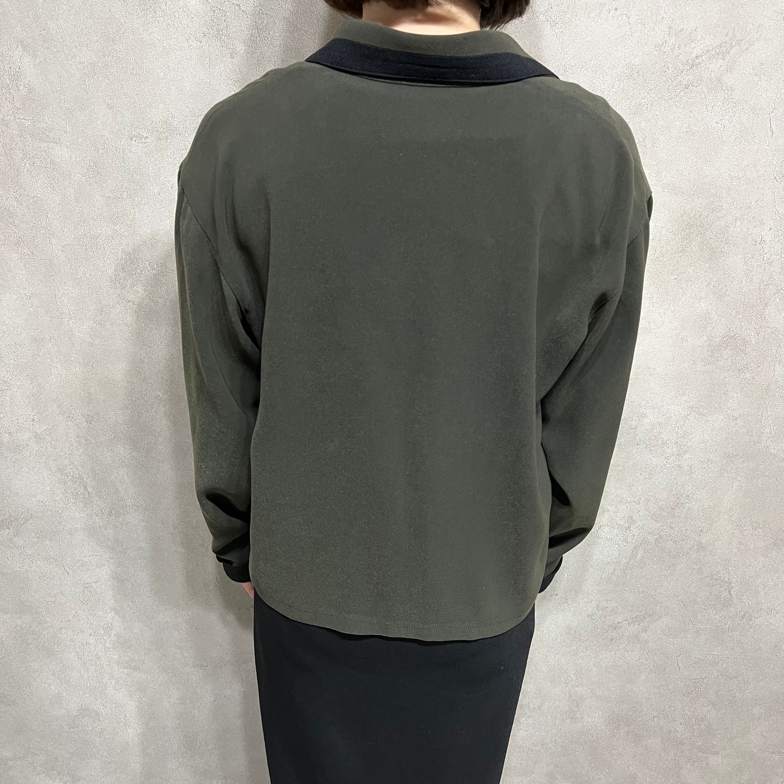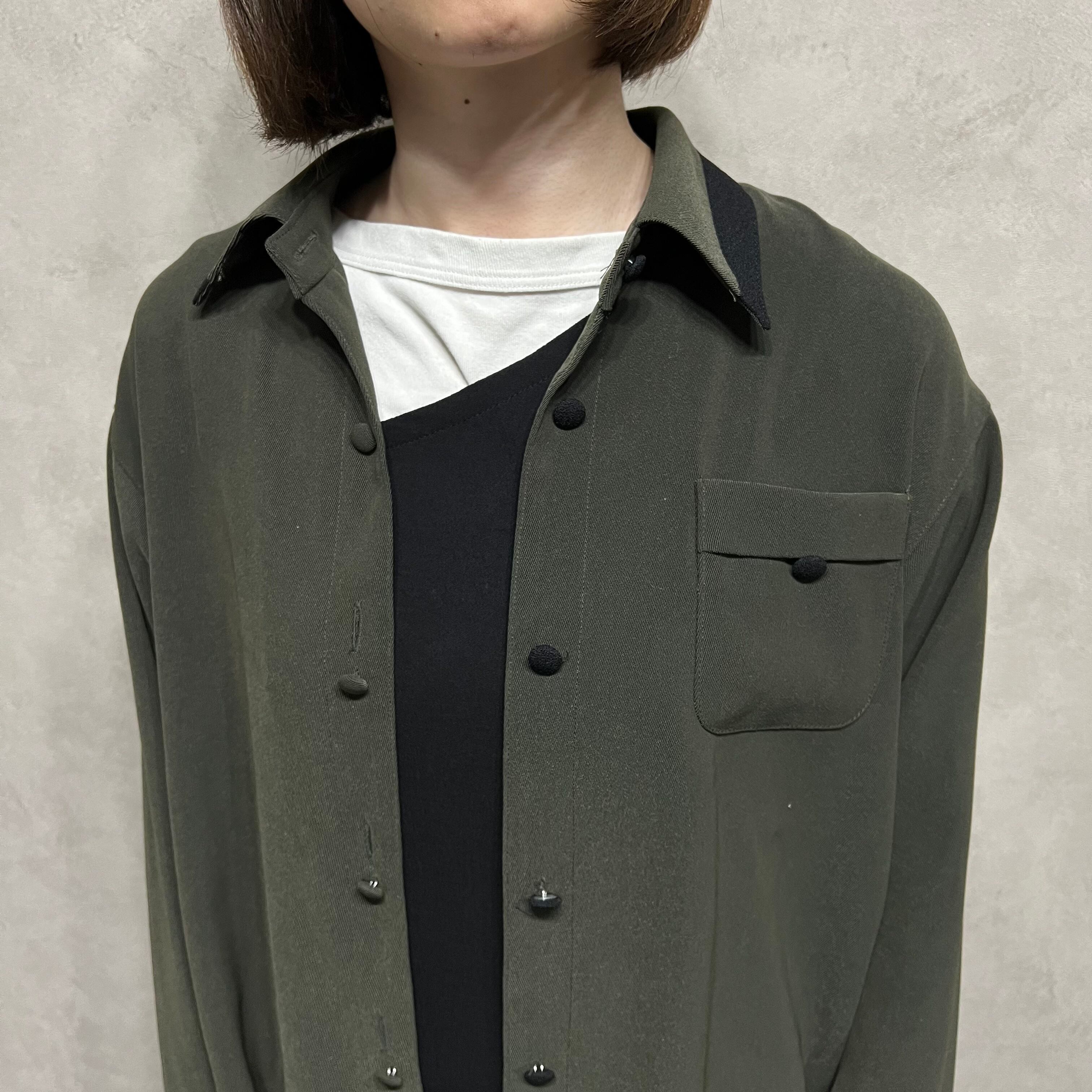ドットボタン カジュアルシャツ 長袖 カーキ 古着 レディース vintage