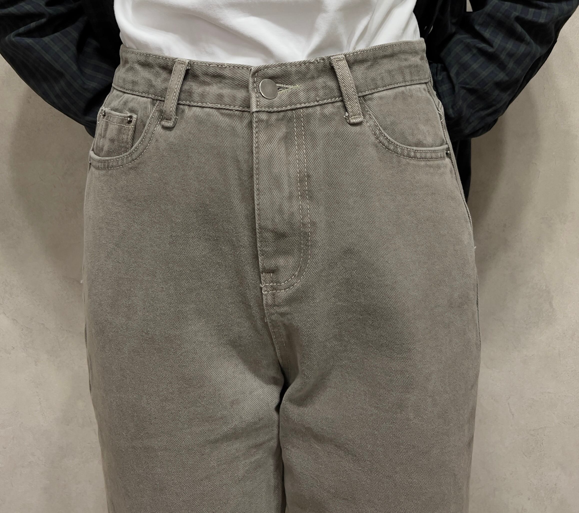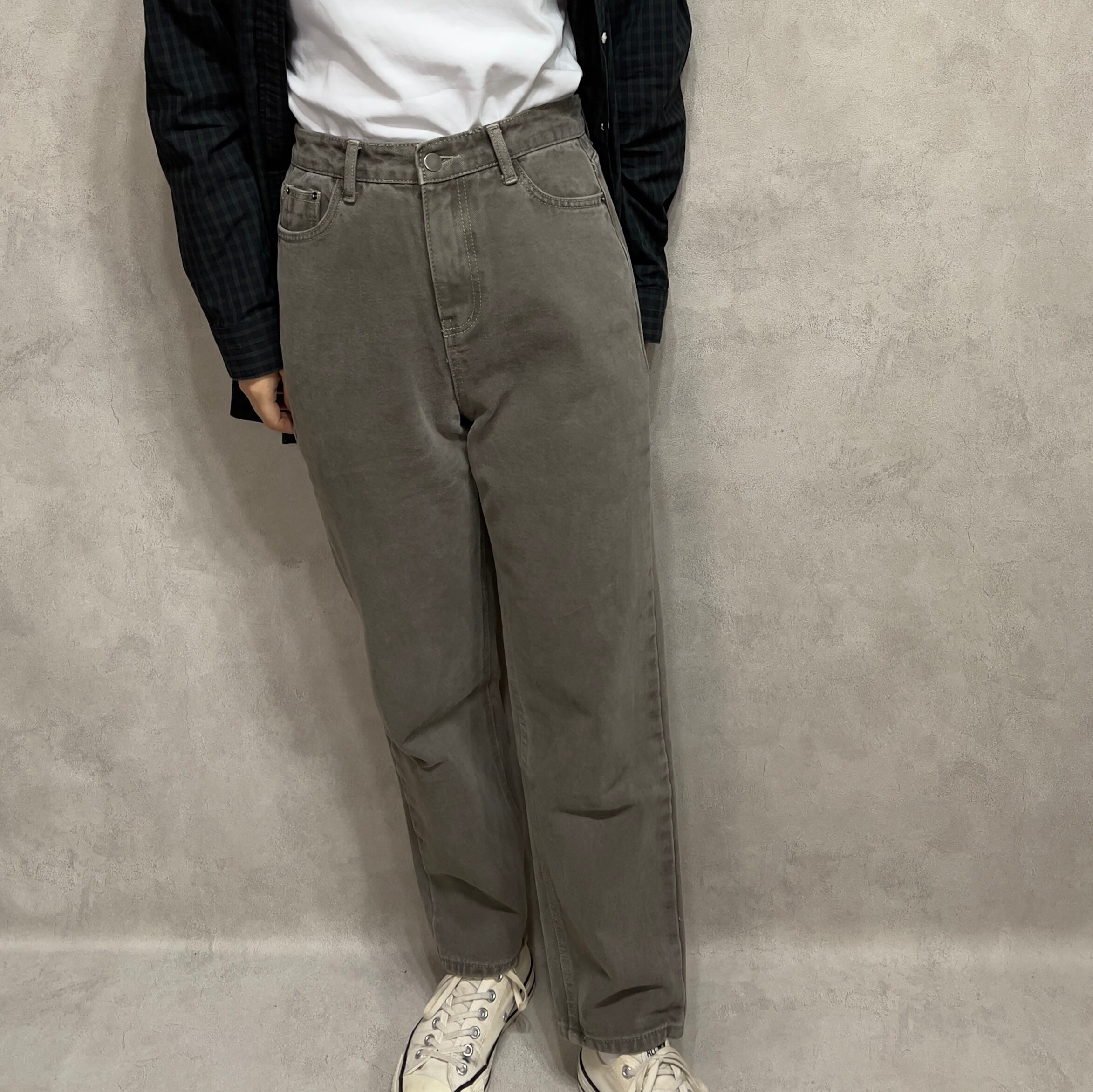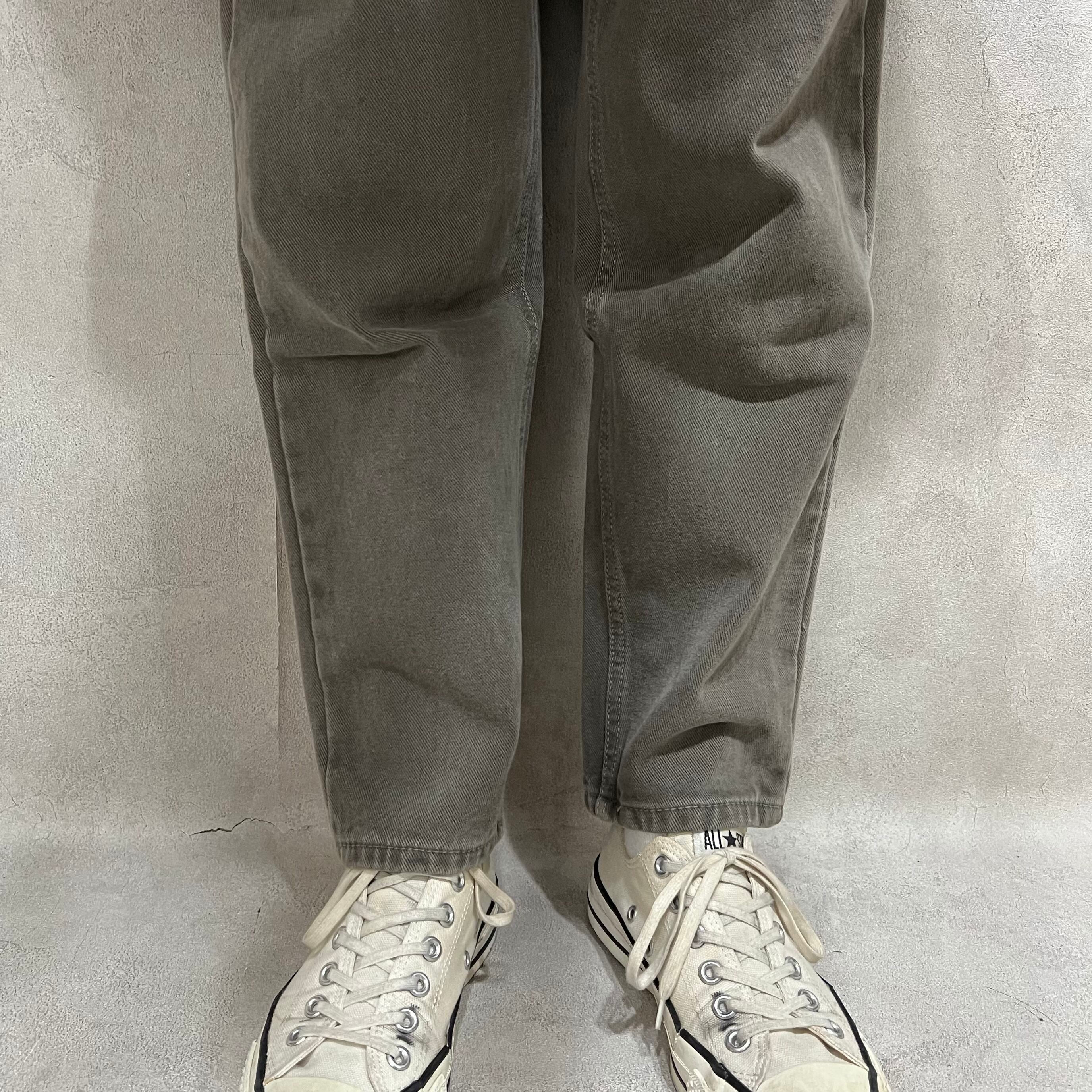 表起毛ハイウエストレッグパンツ レディース 古着 チャコールグレー