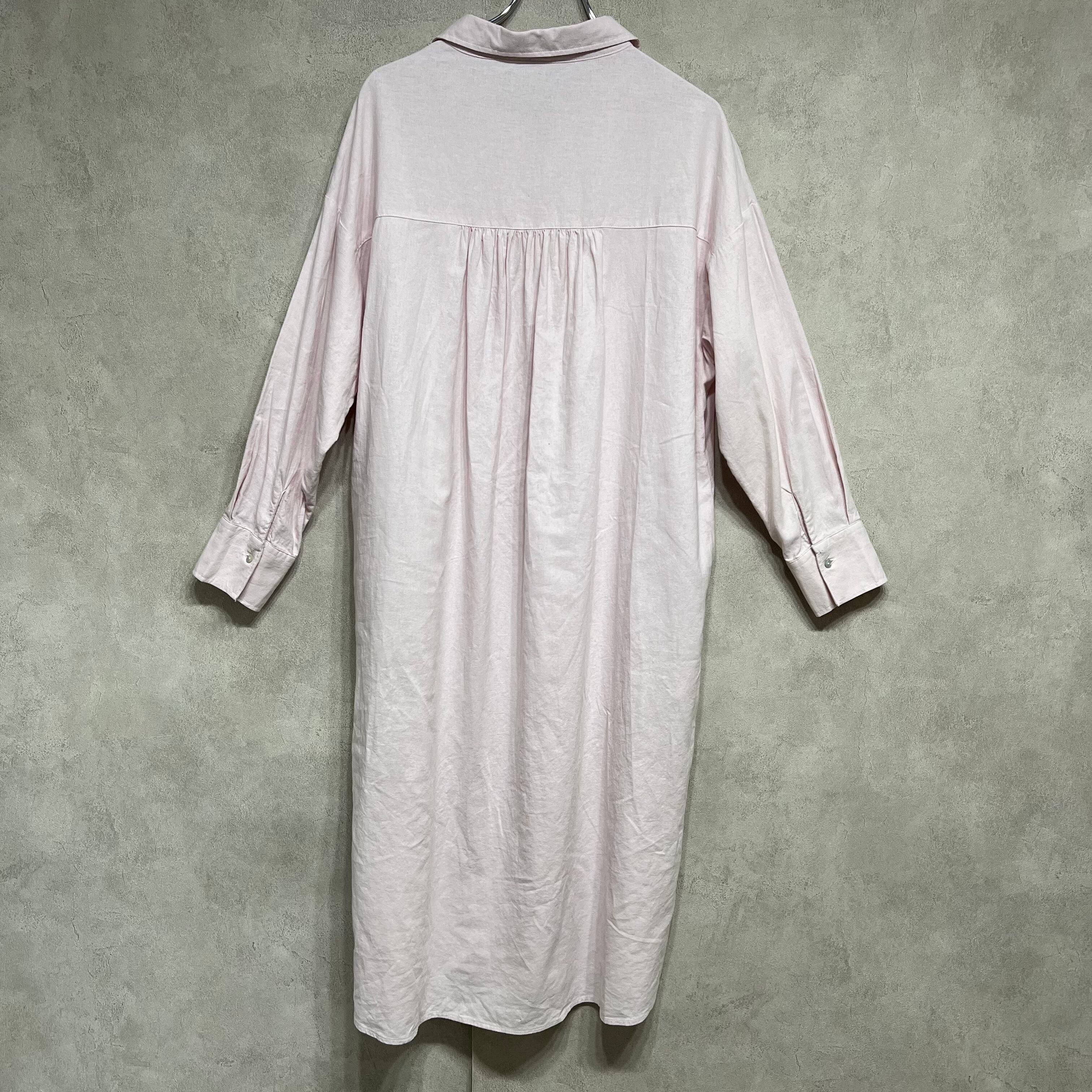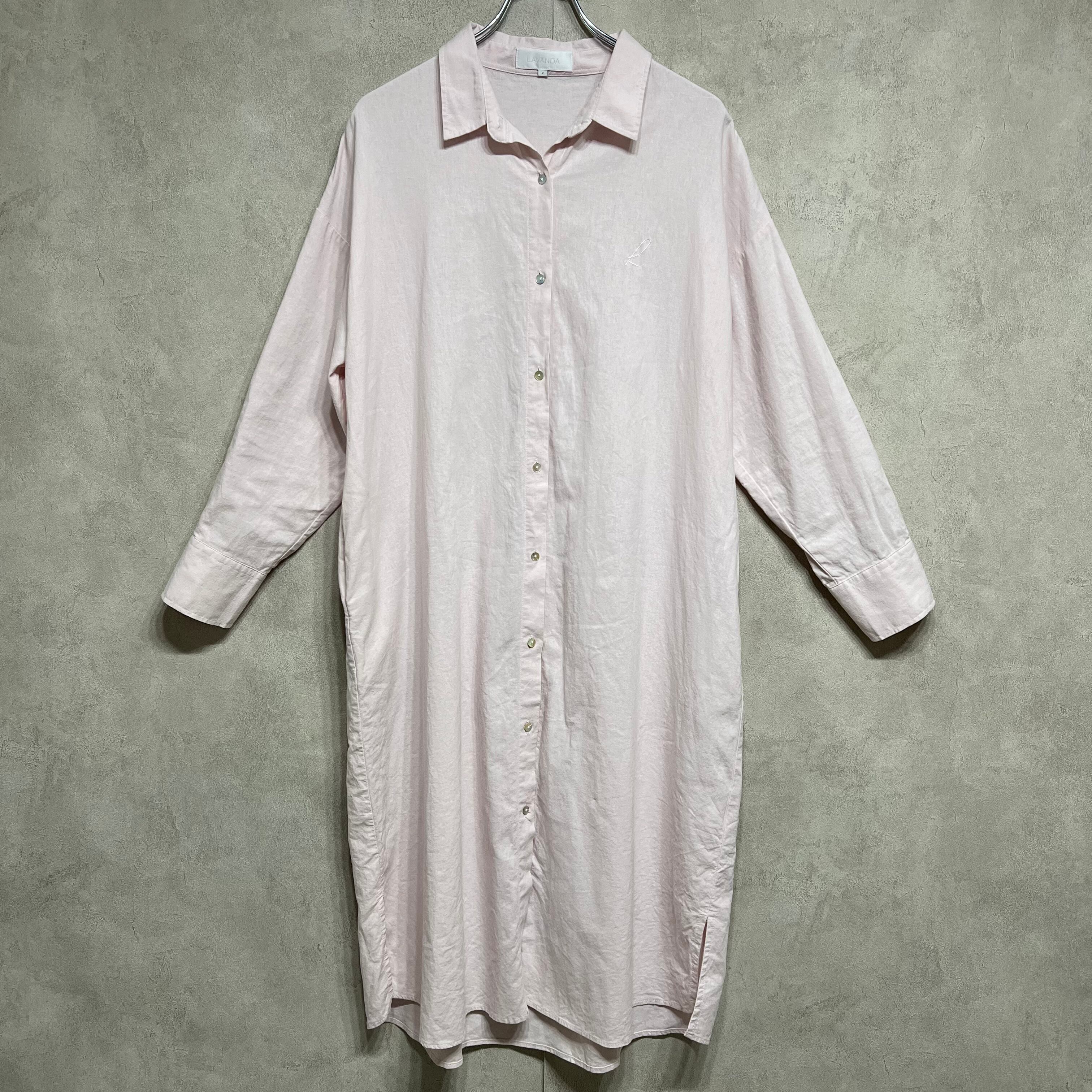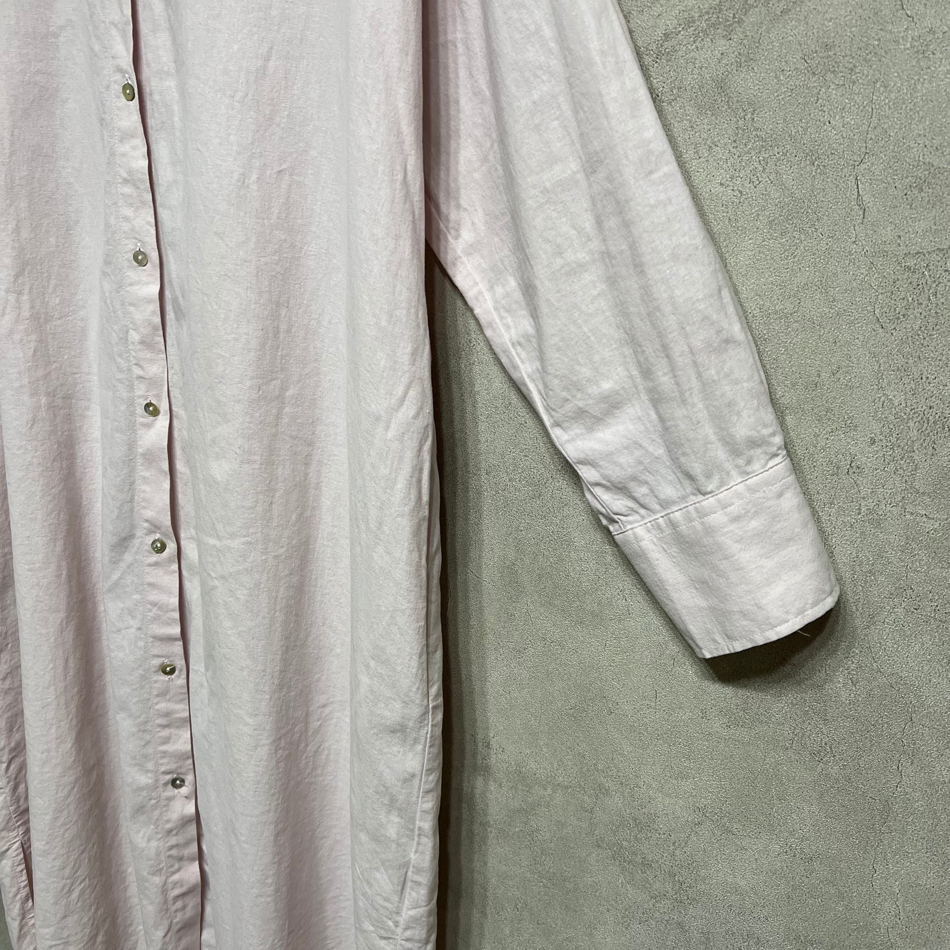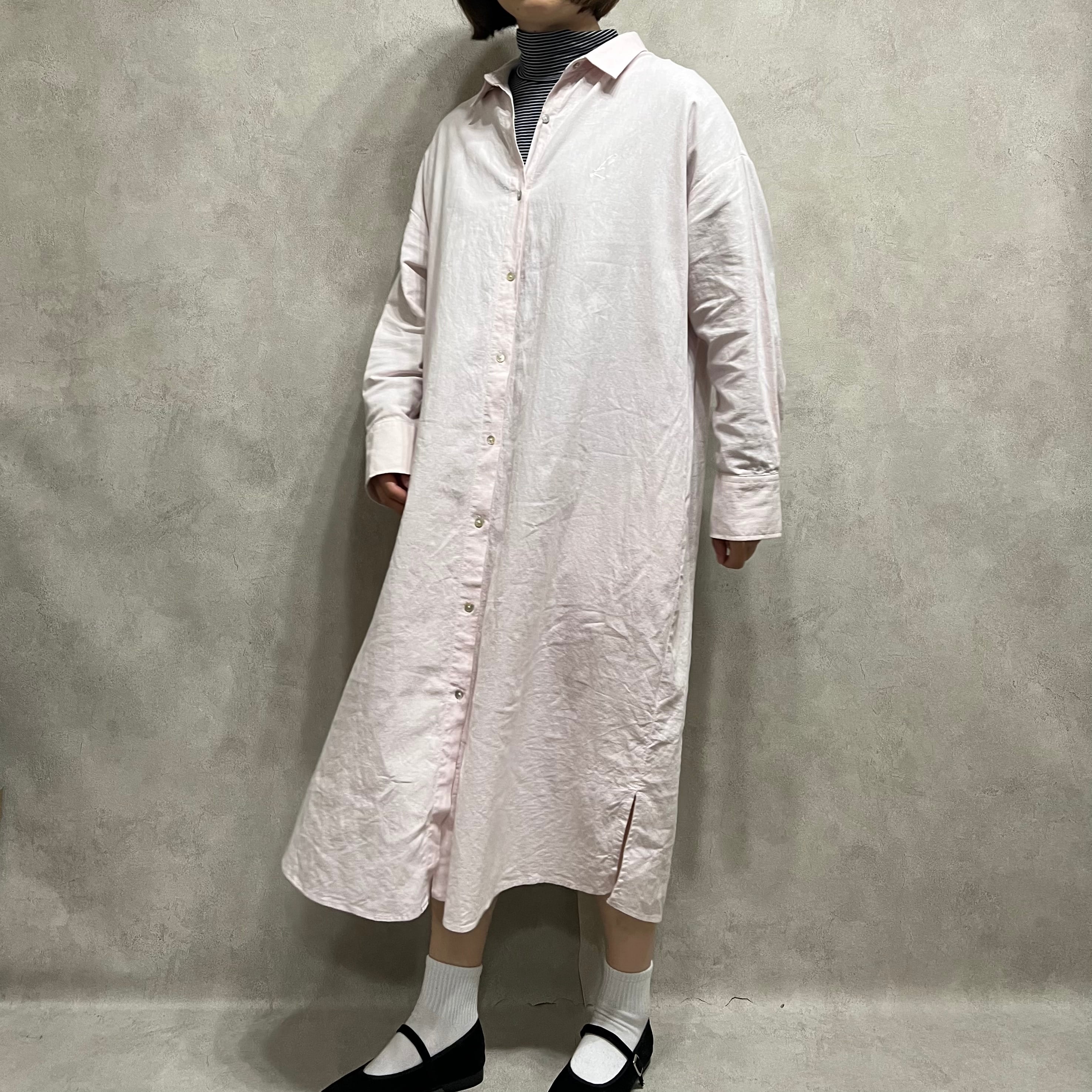 綿麻ロングシャツワンピース リネン ピンク LAVANDA 古着 レディース