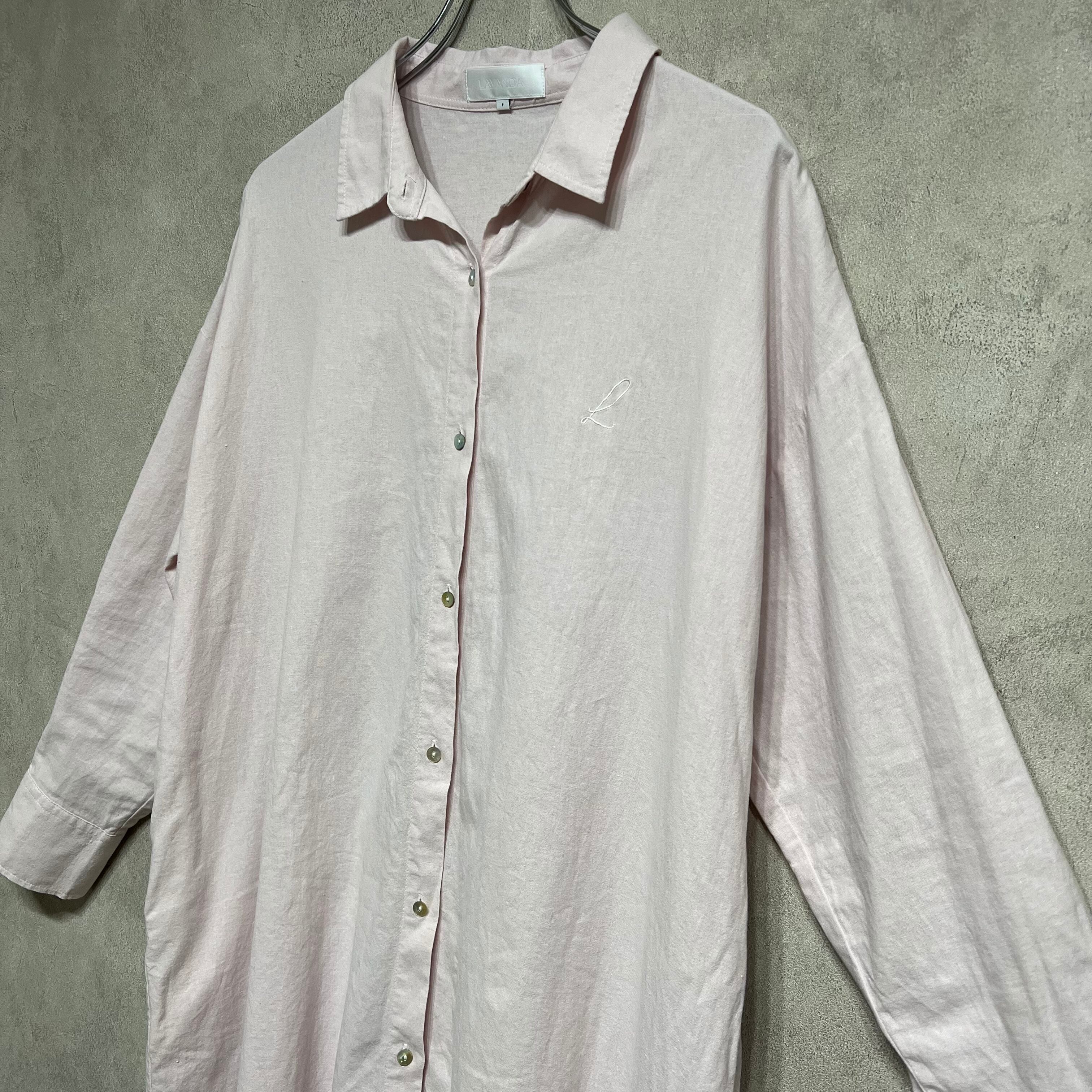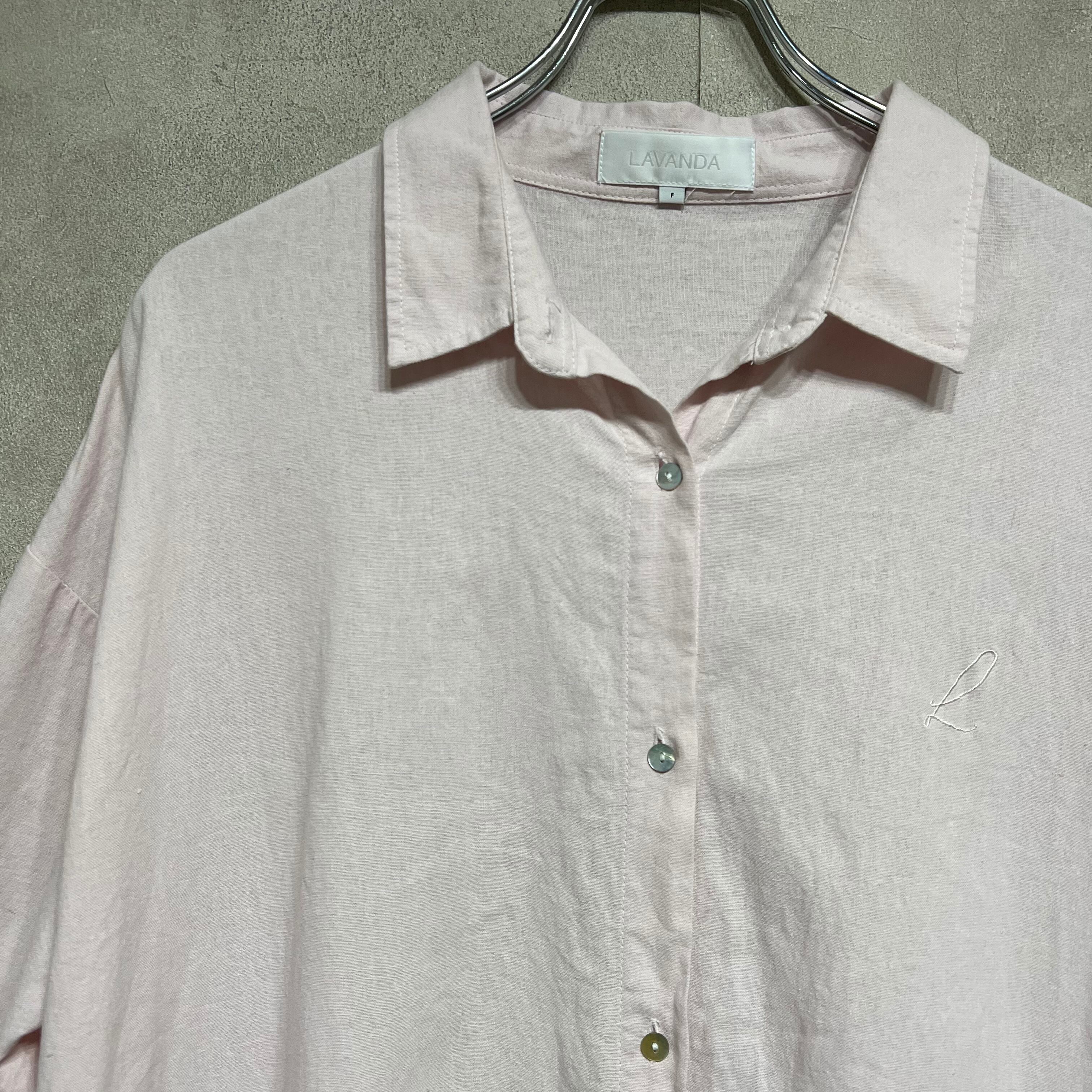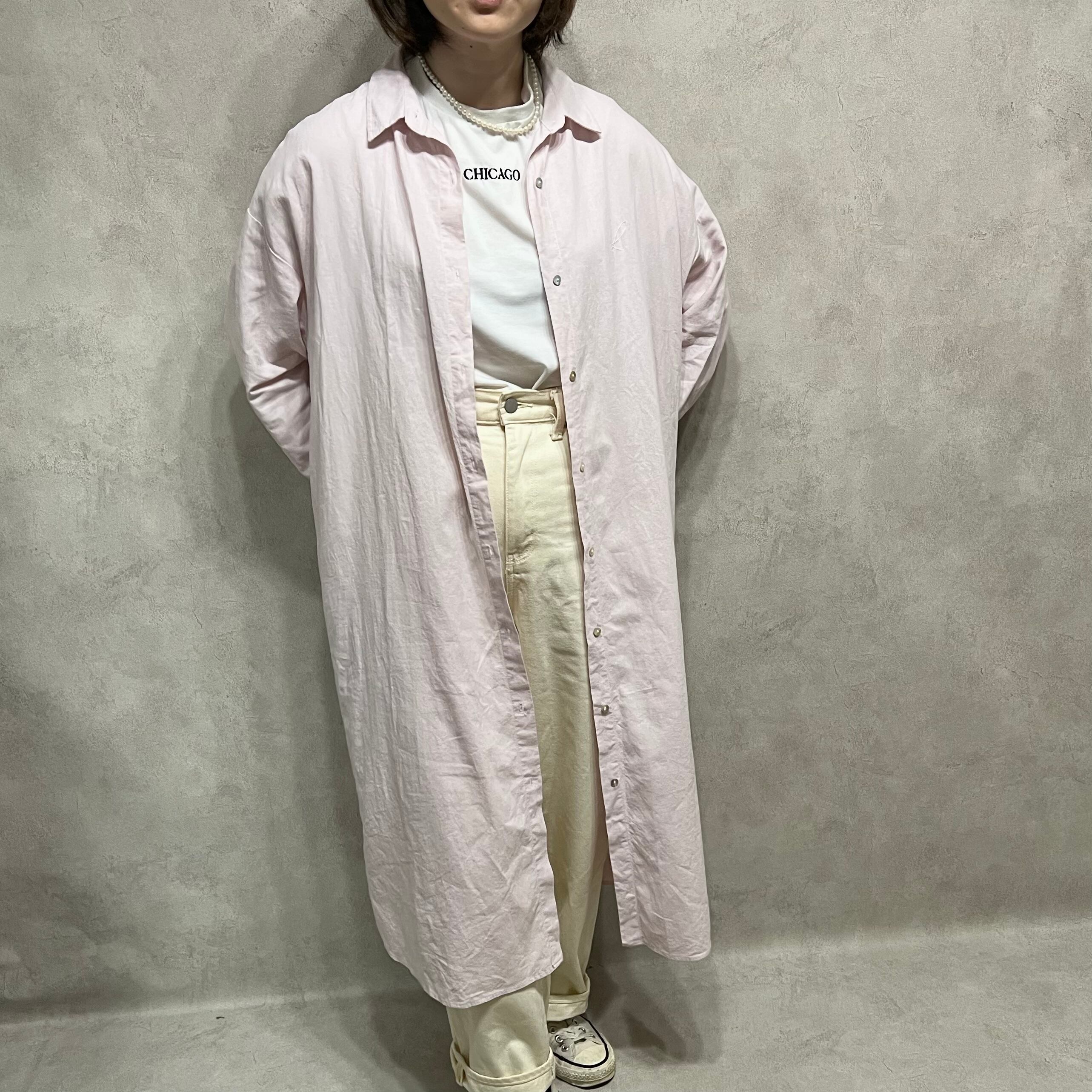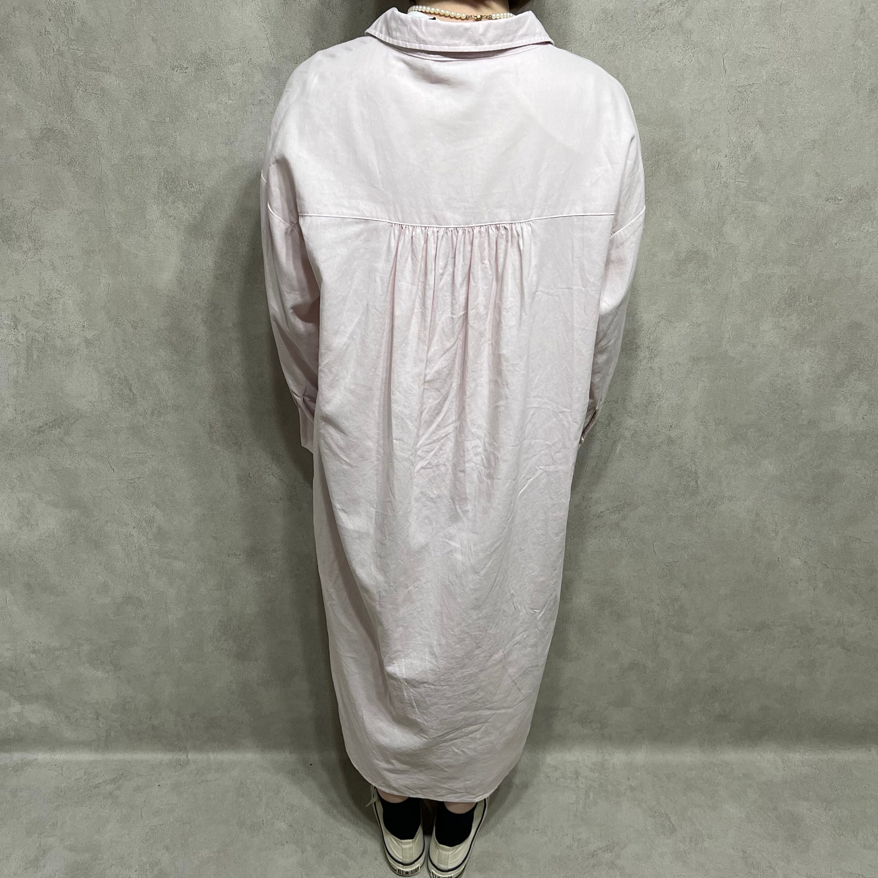 綿麻ロングシャツワンピース リネン ピンク LAVANDA 古着 レディース