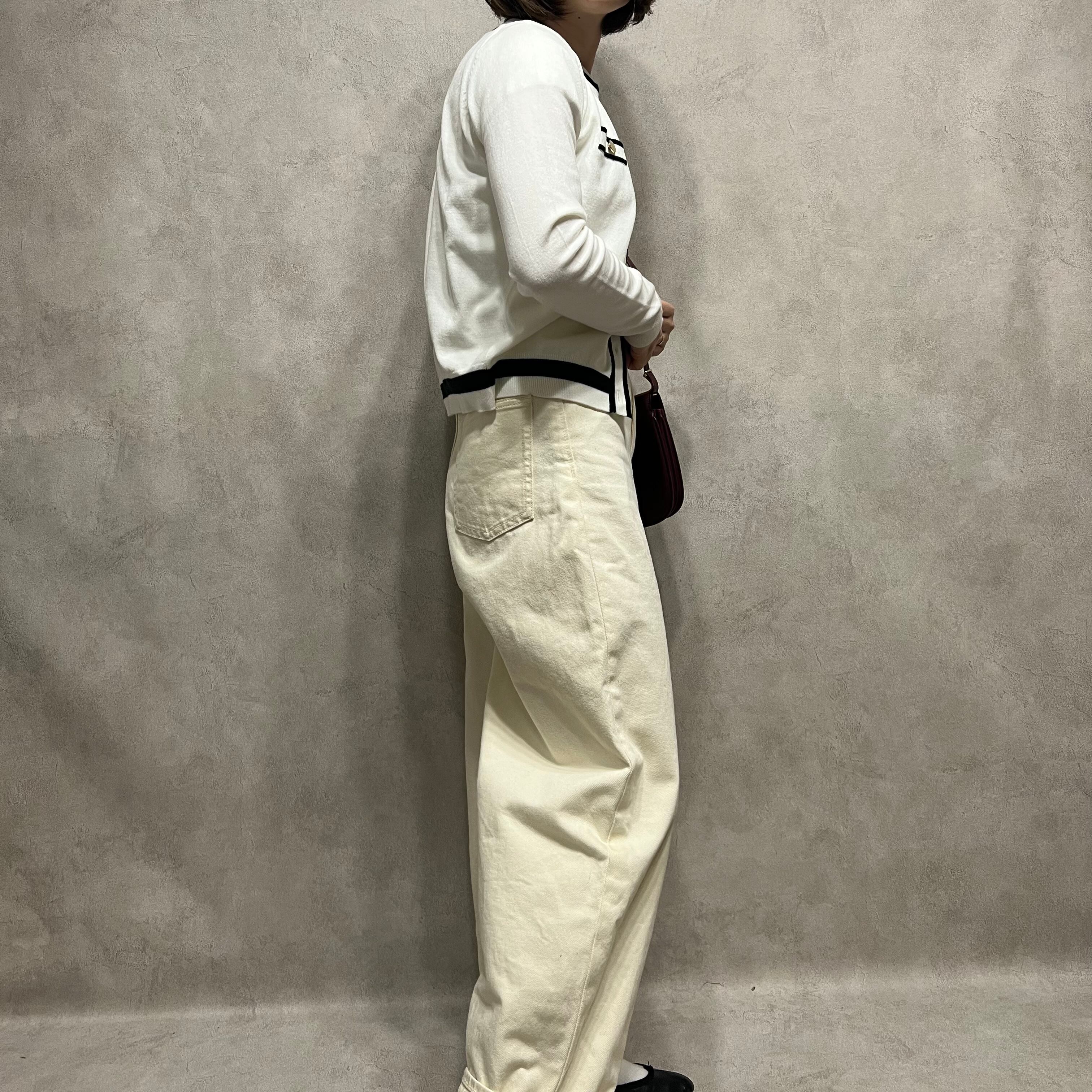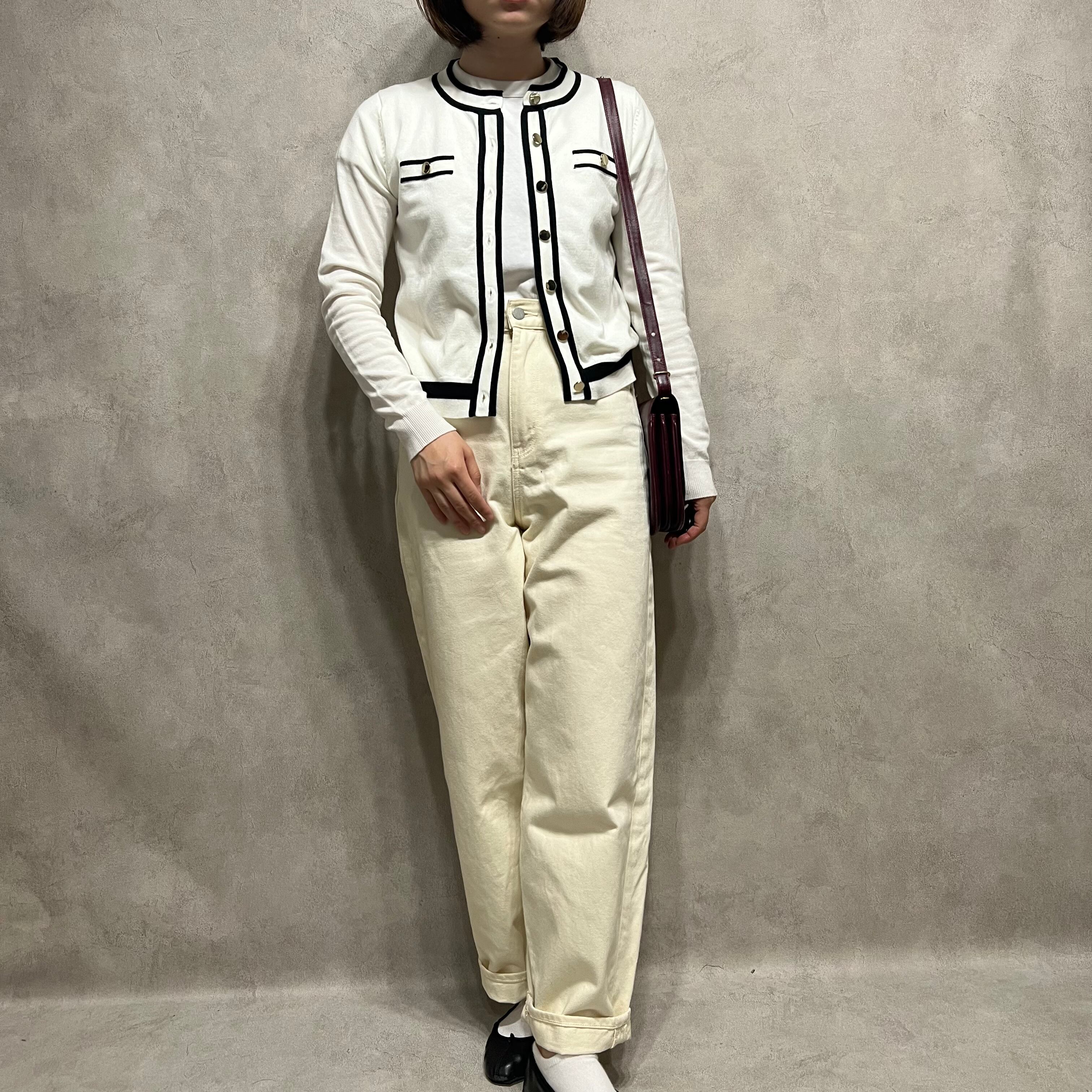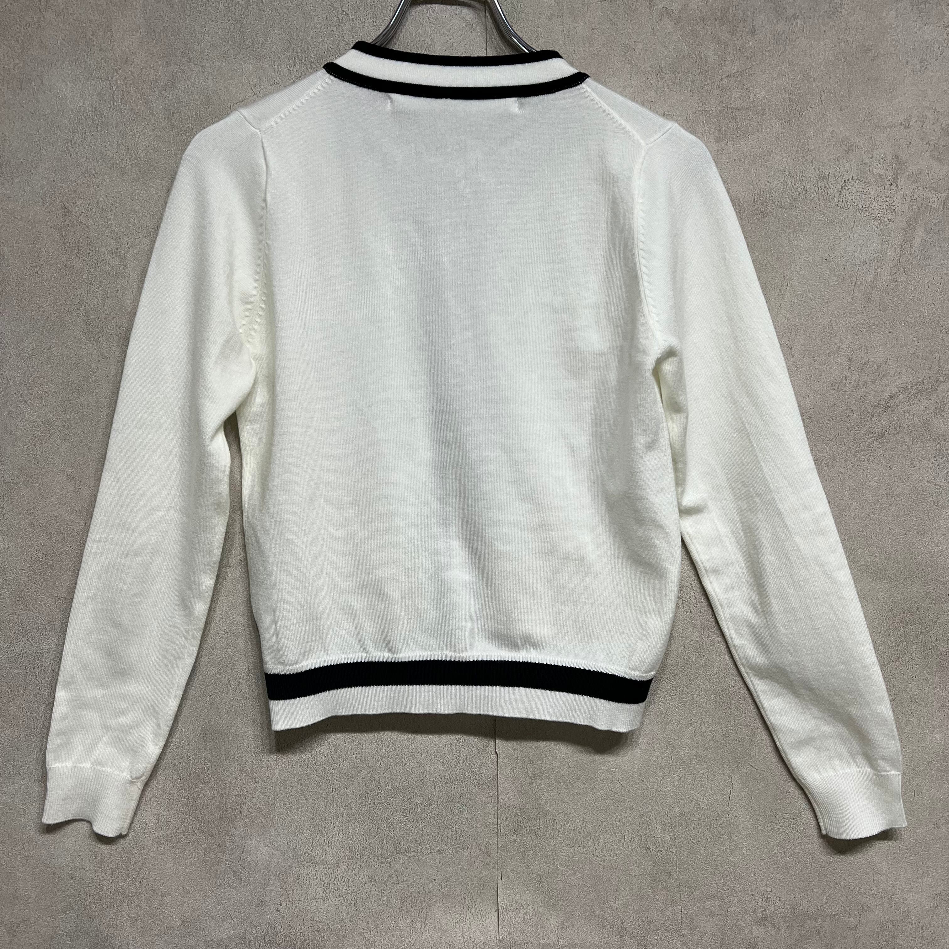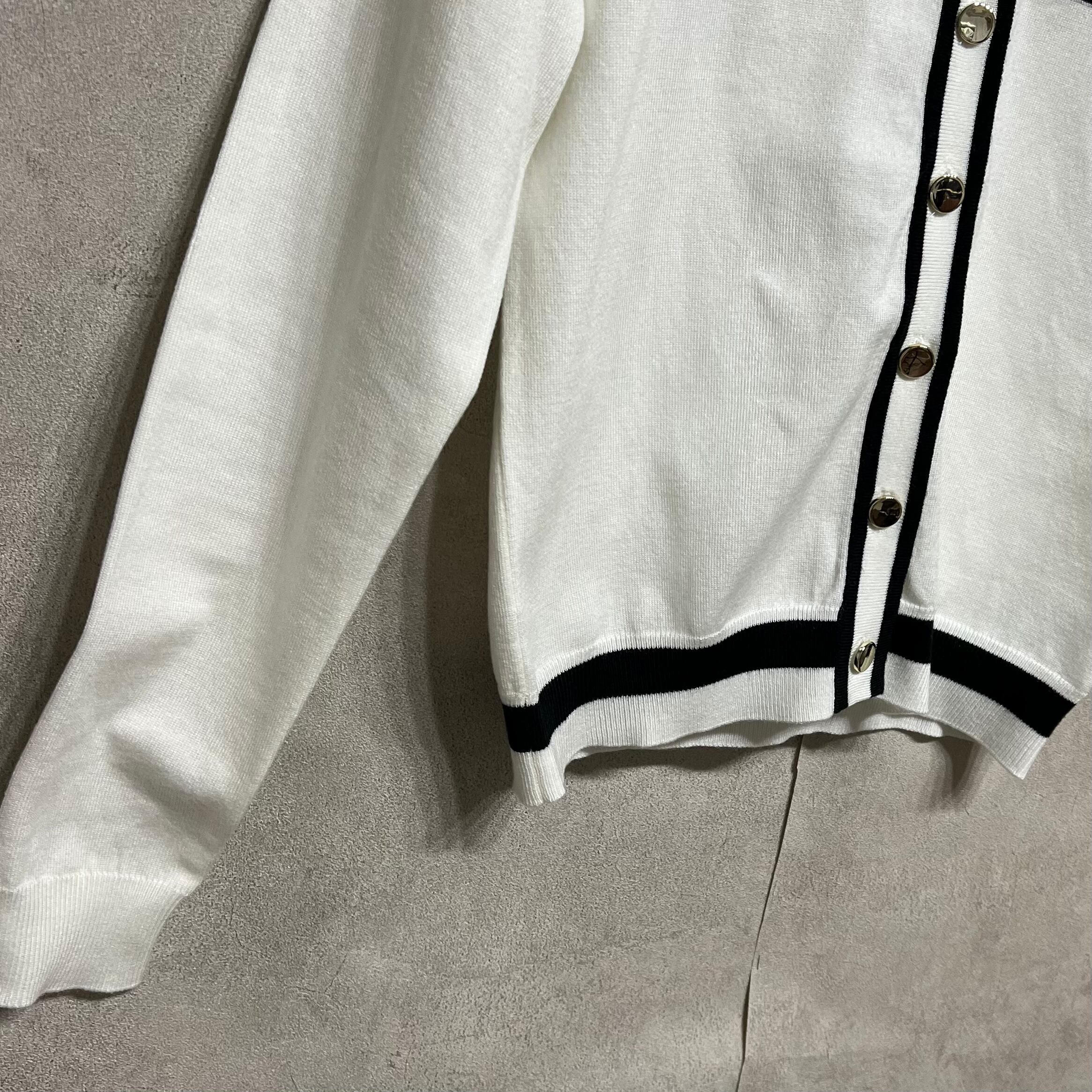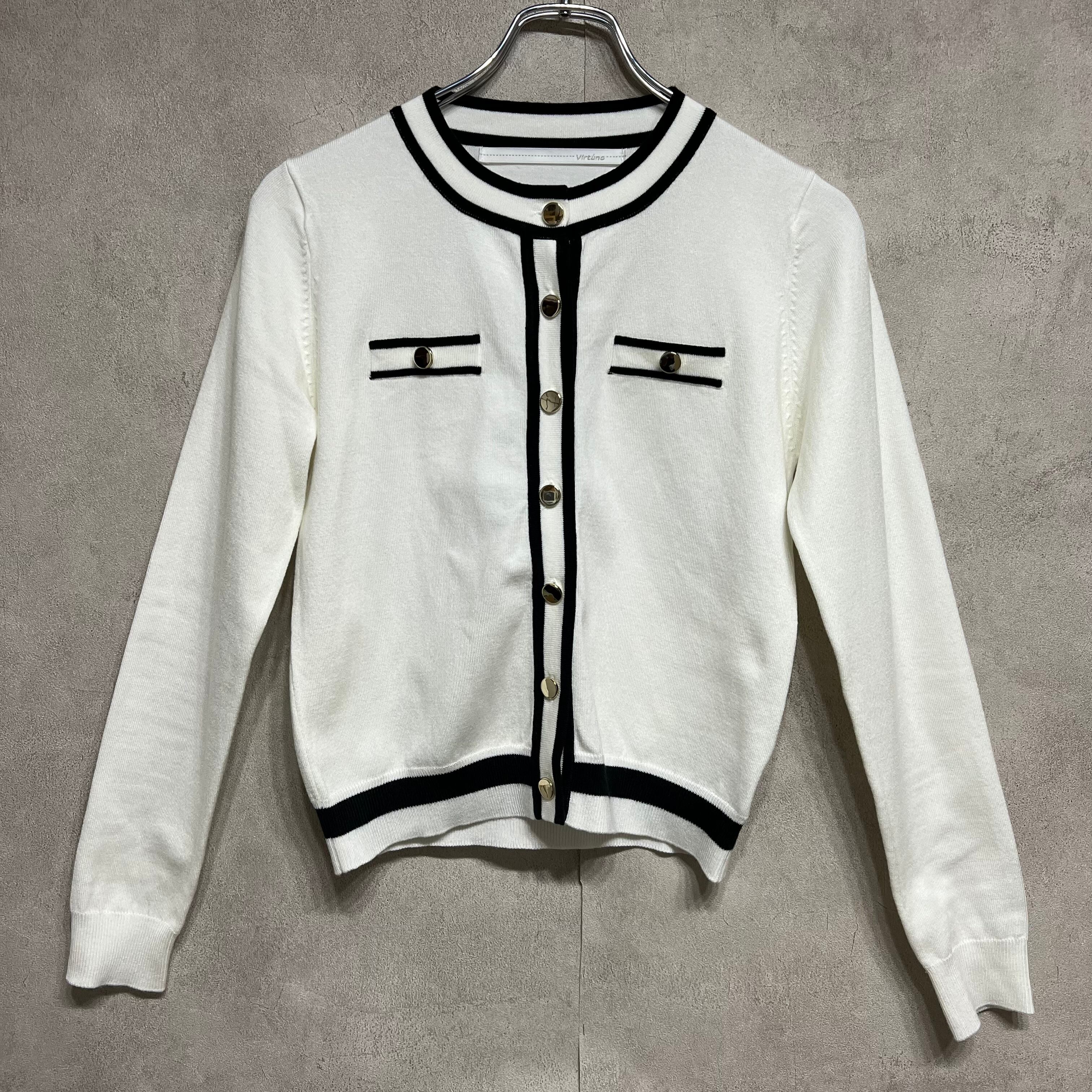 金ボタン ラウンドネックカーディガン virtuno ホワイト 白 古着 レディース