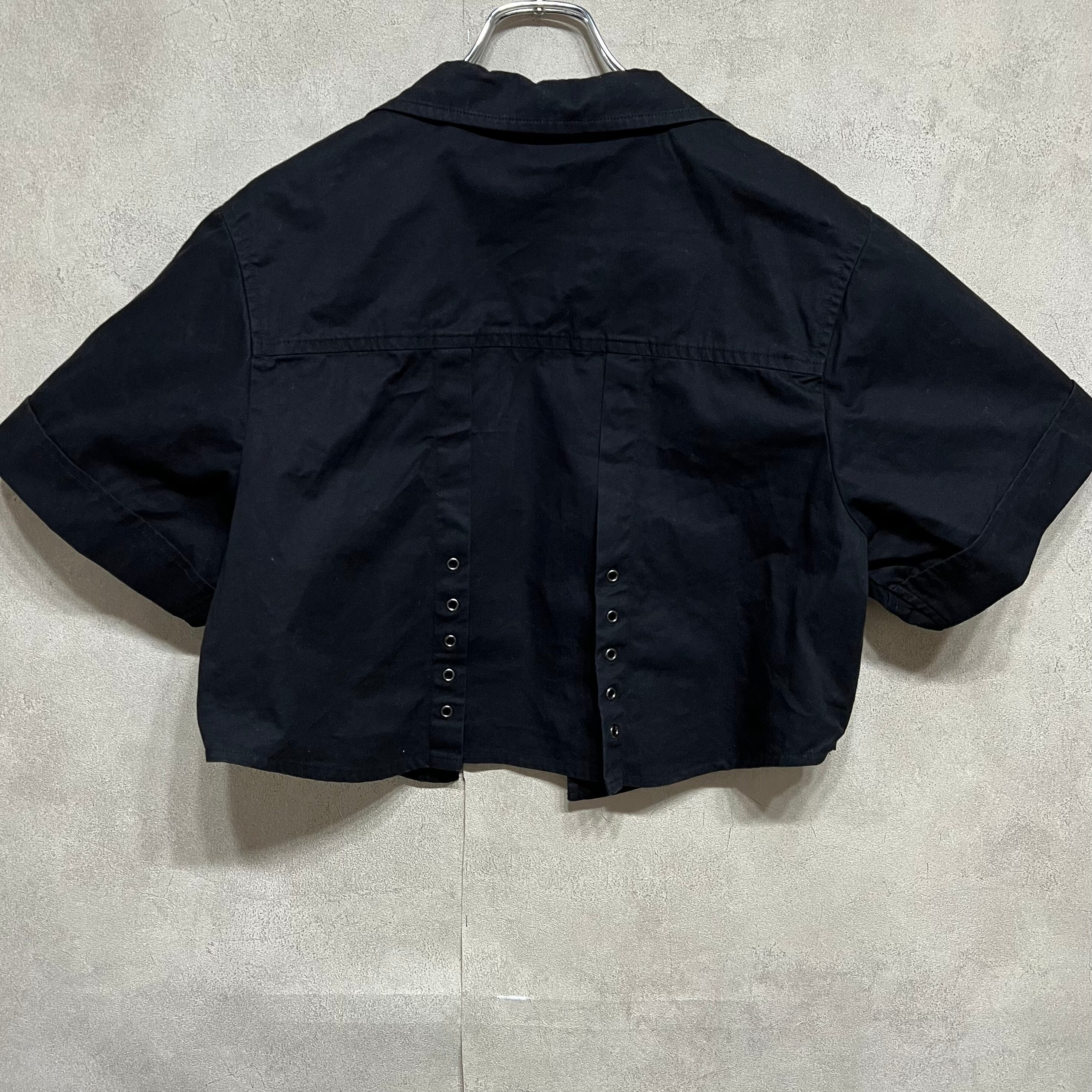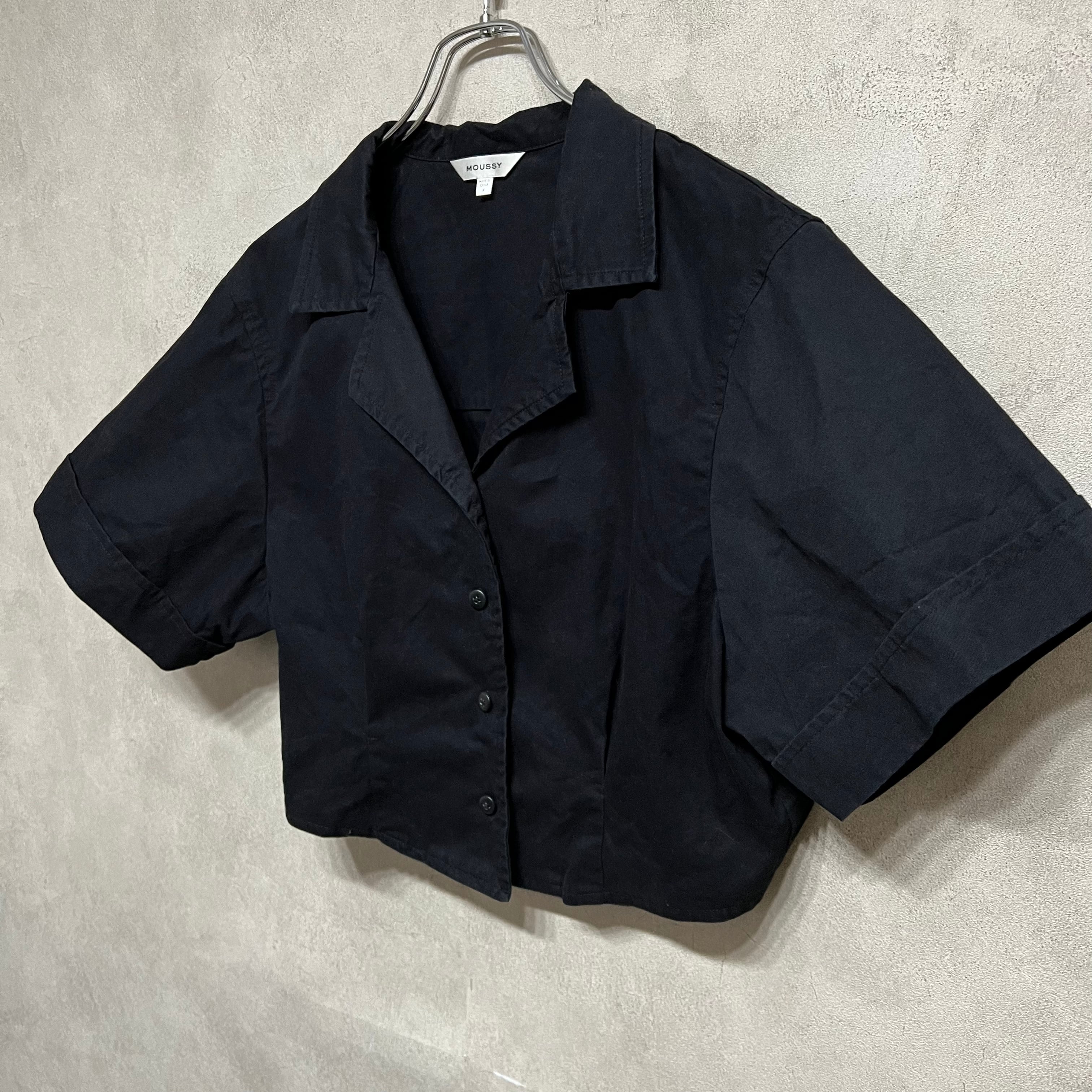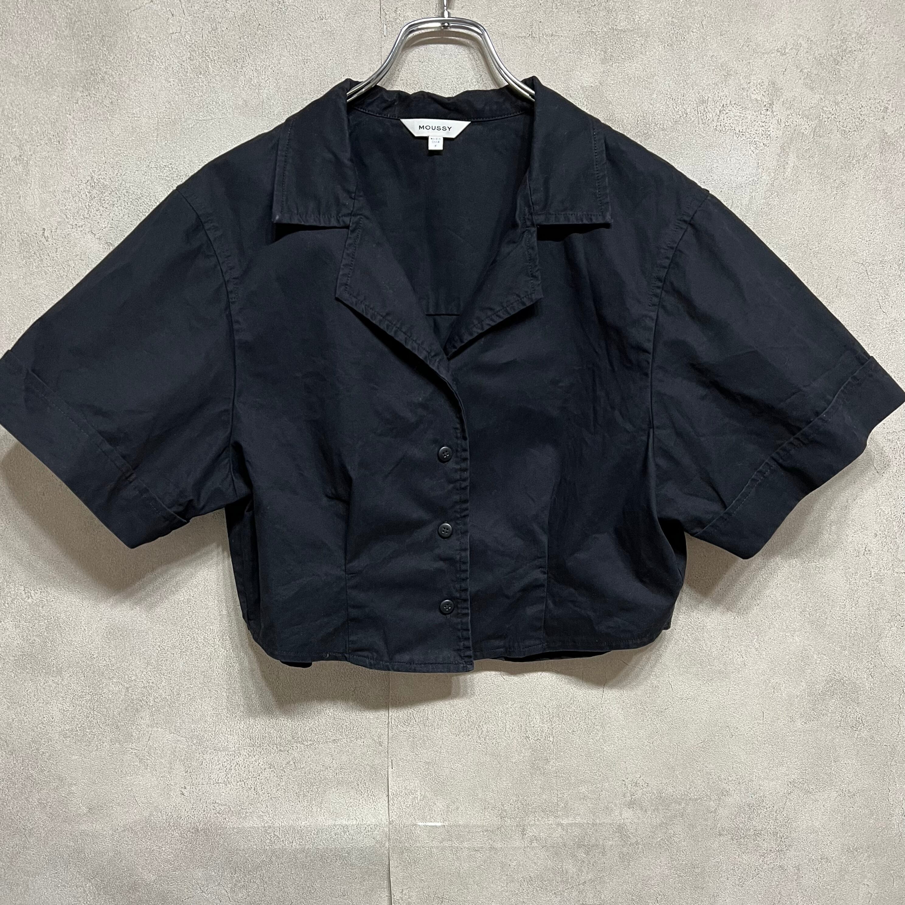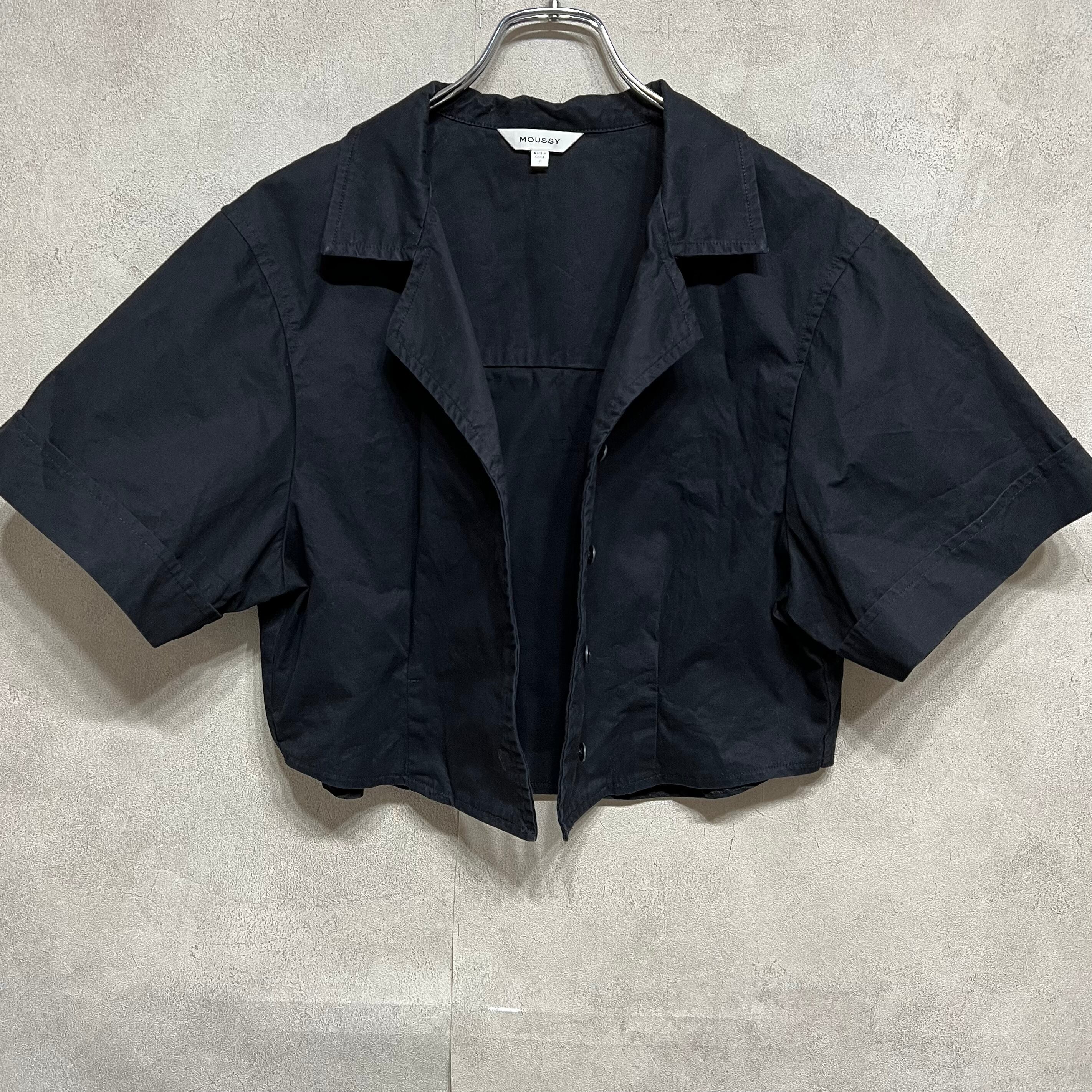 バックレースアップクロップドシャツ MOUSSY ショート丈 ブラック ビックサイズ コットン 古着 レディース vintage
