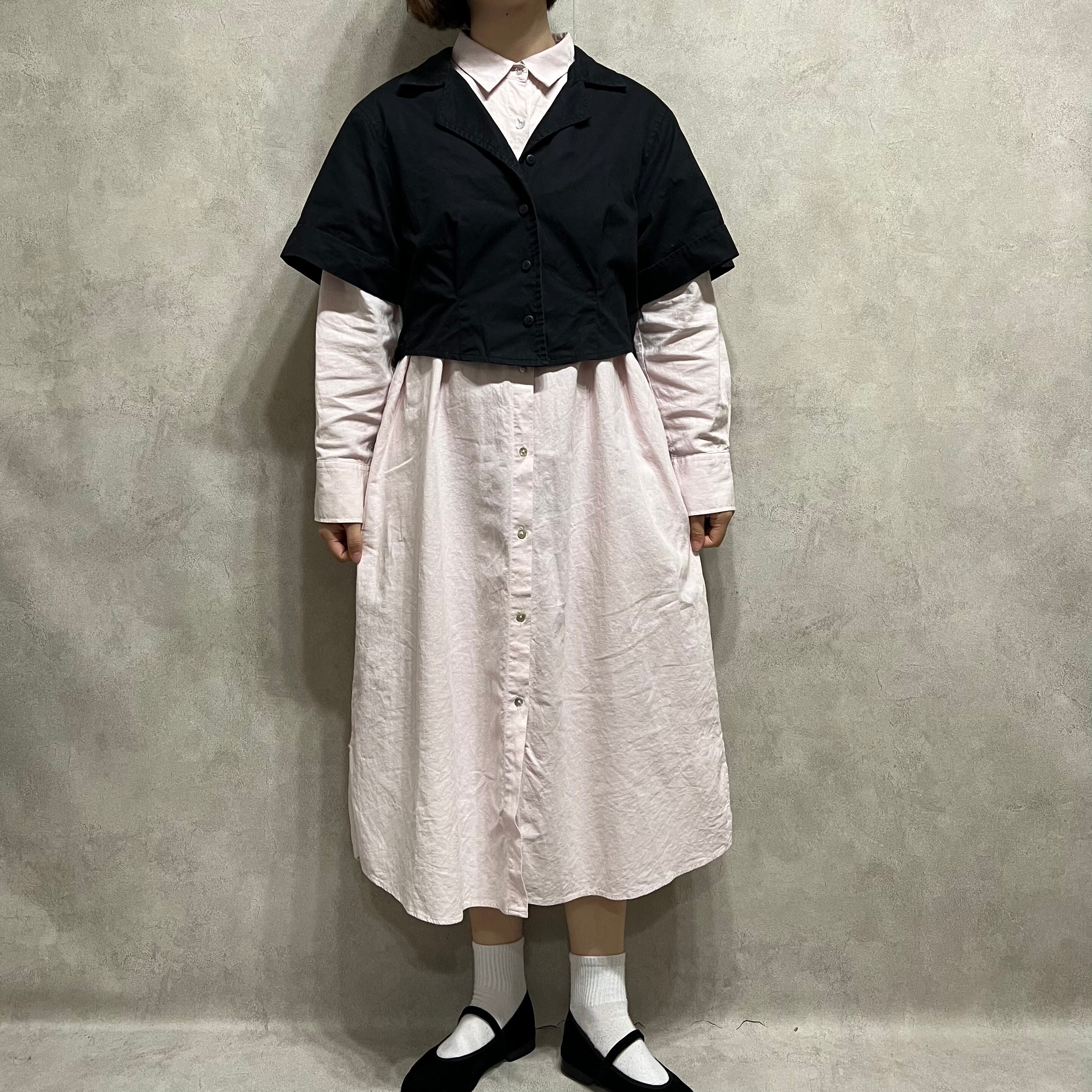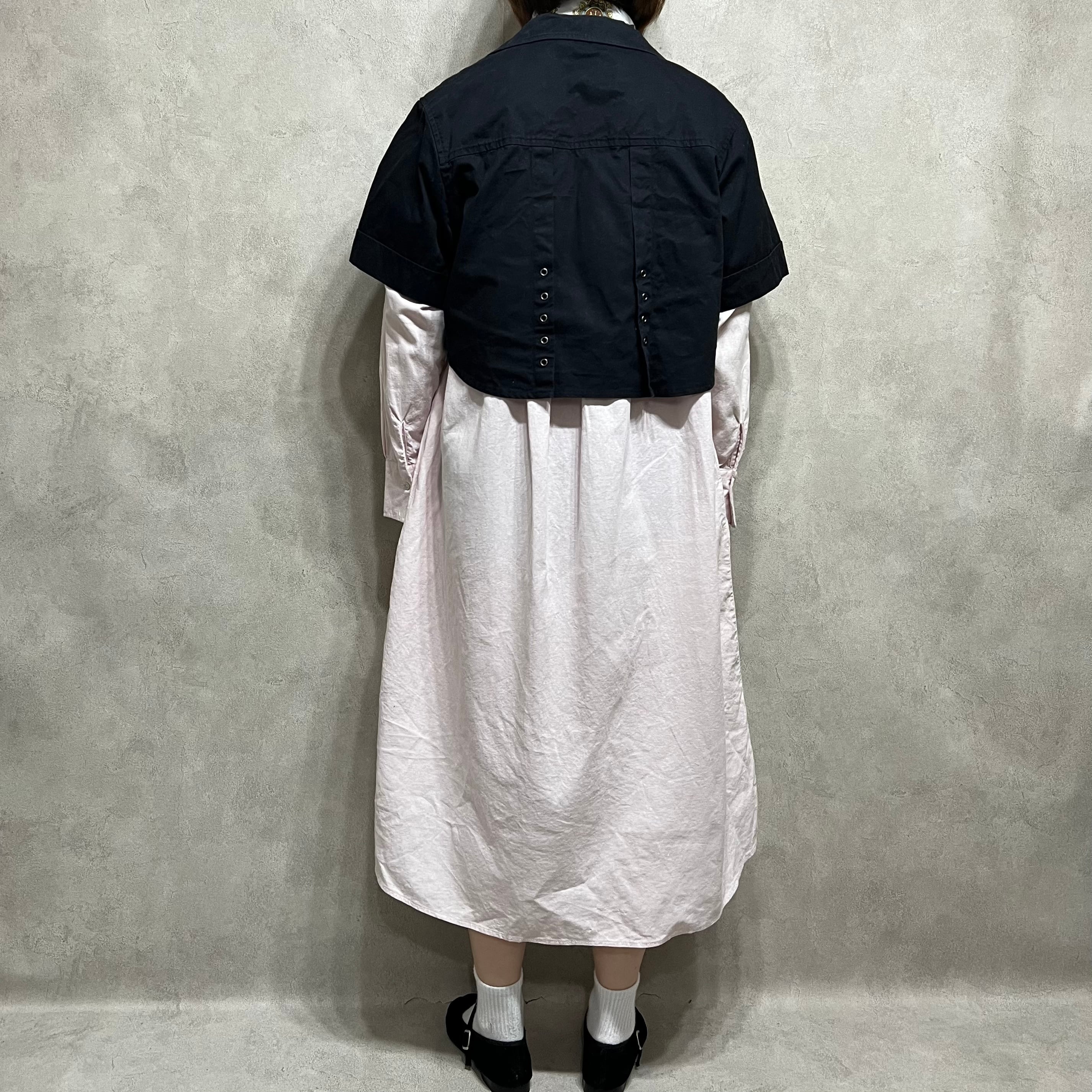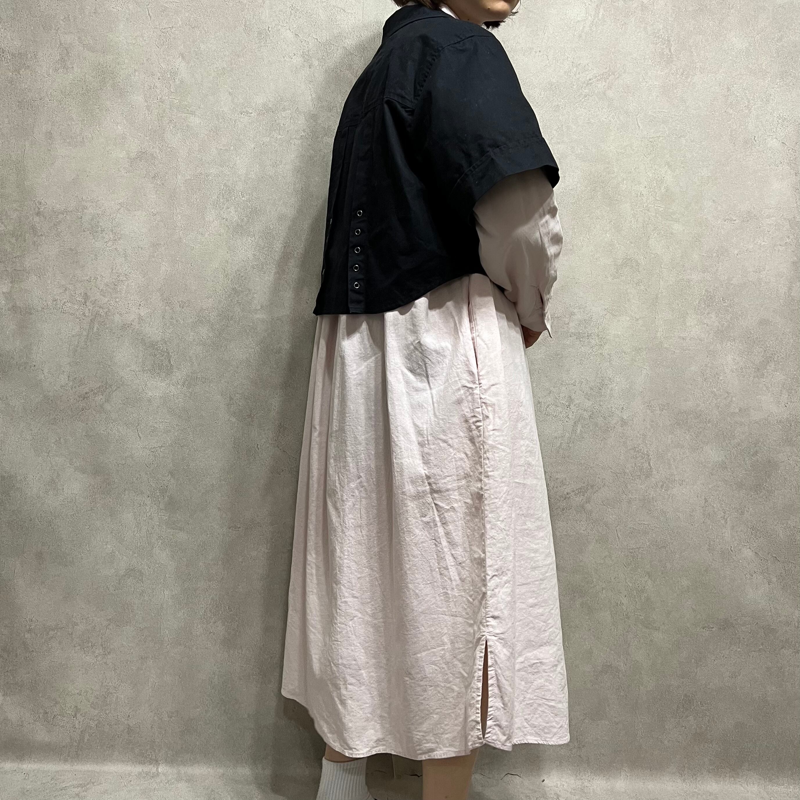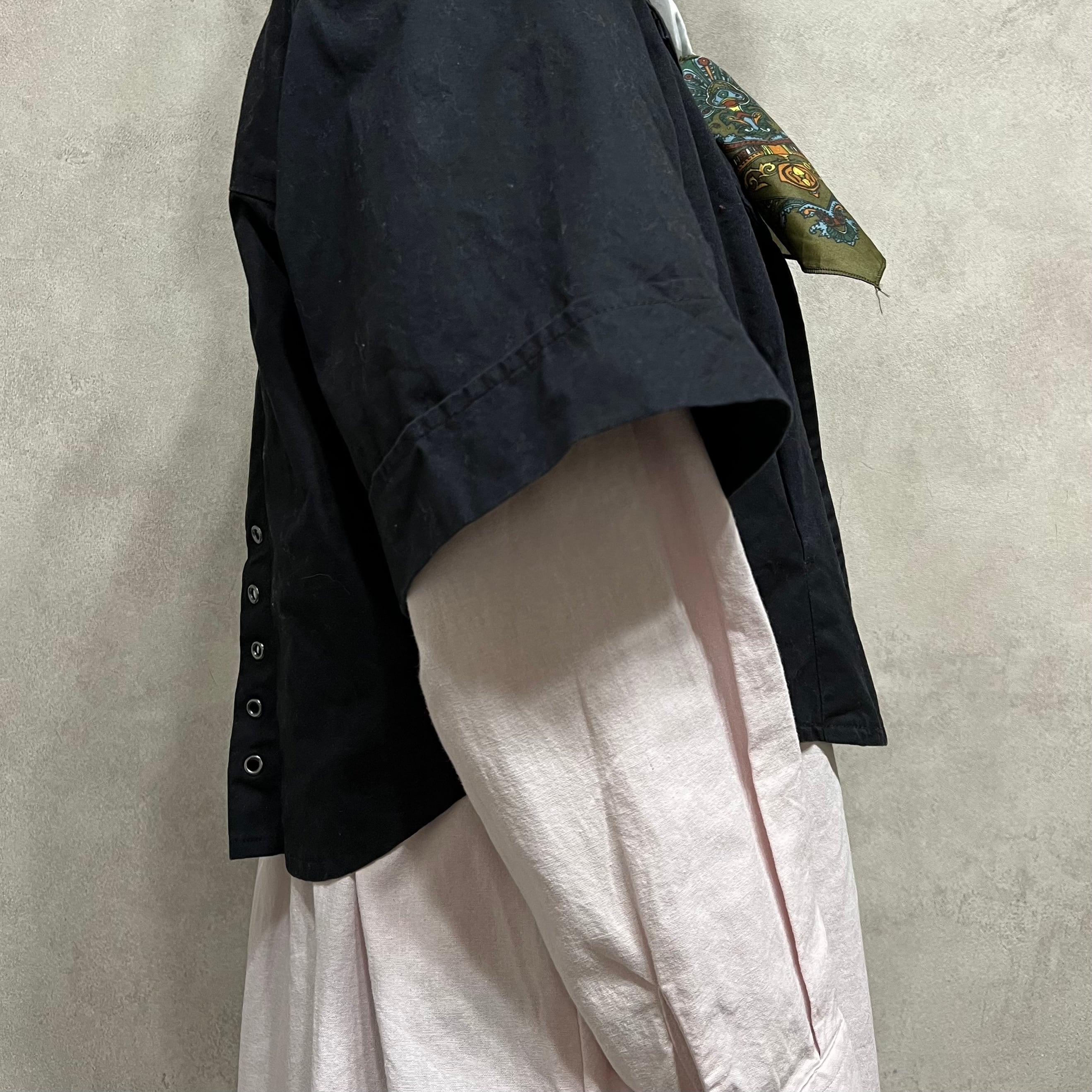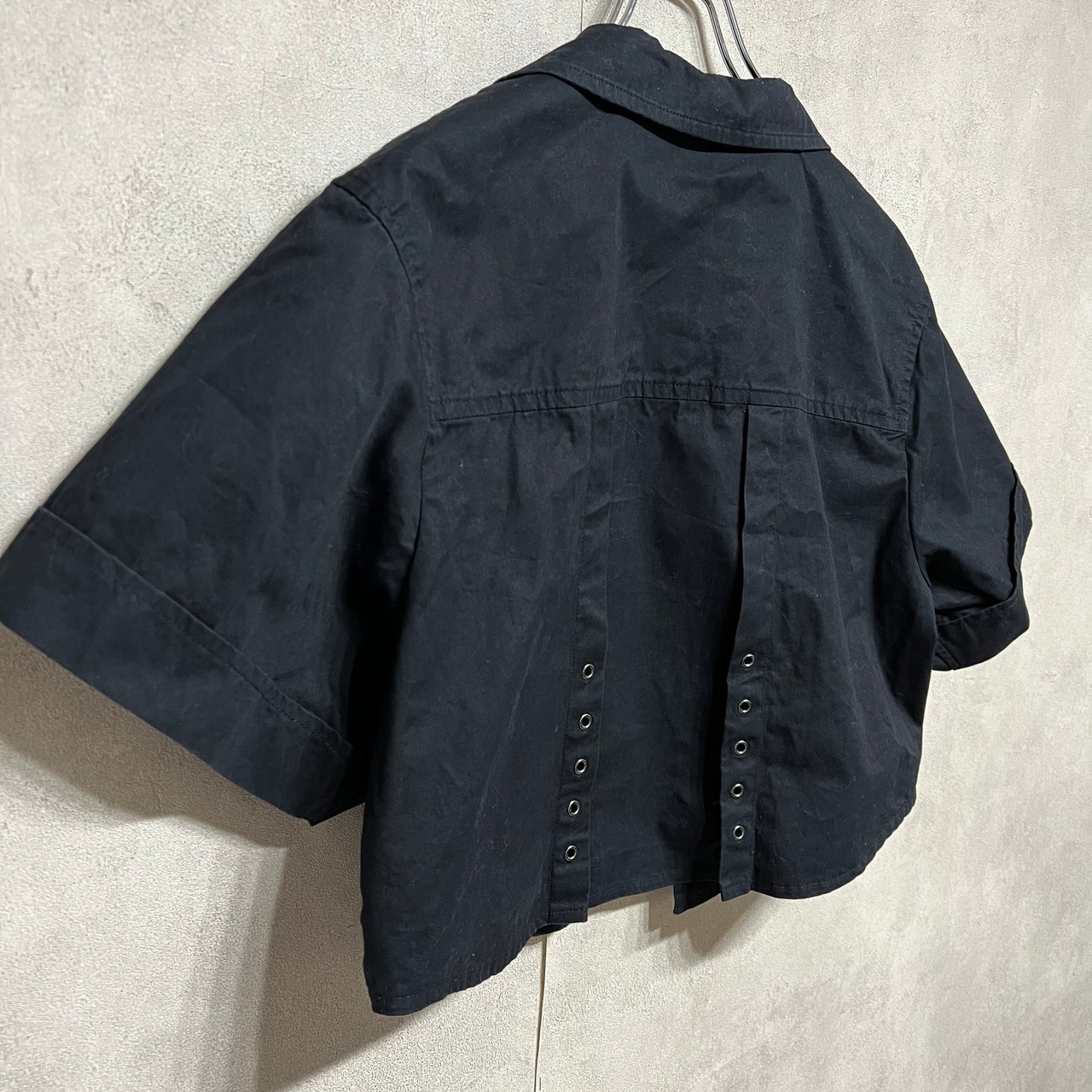 バックレースアップクロップドシャツ MOUSSY ショート丈 ブラック ビックサイズ コットン 古着 レディース vintage