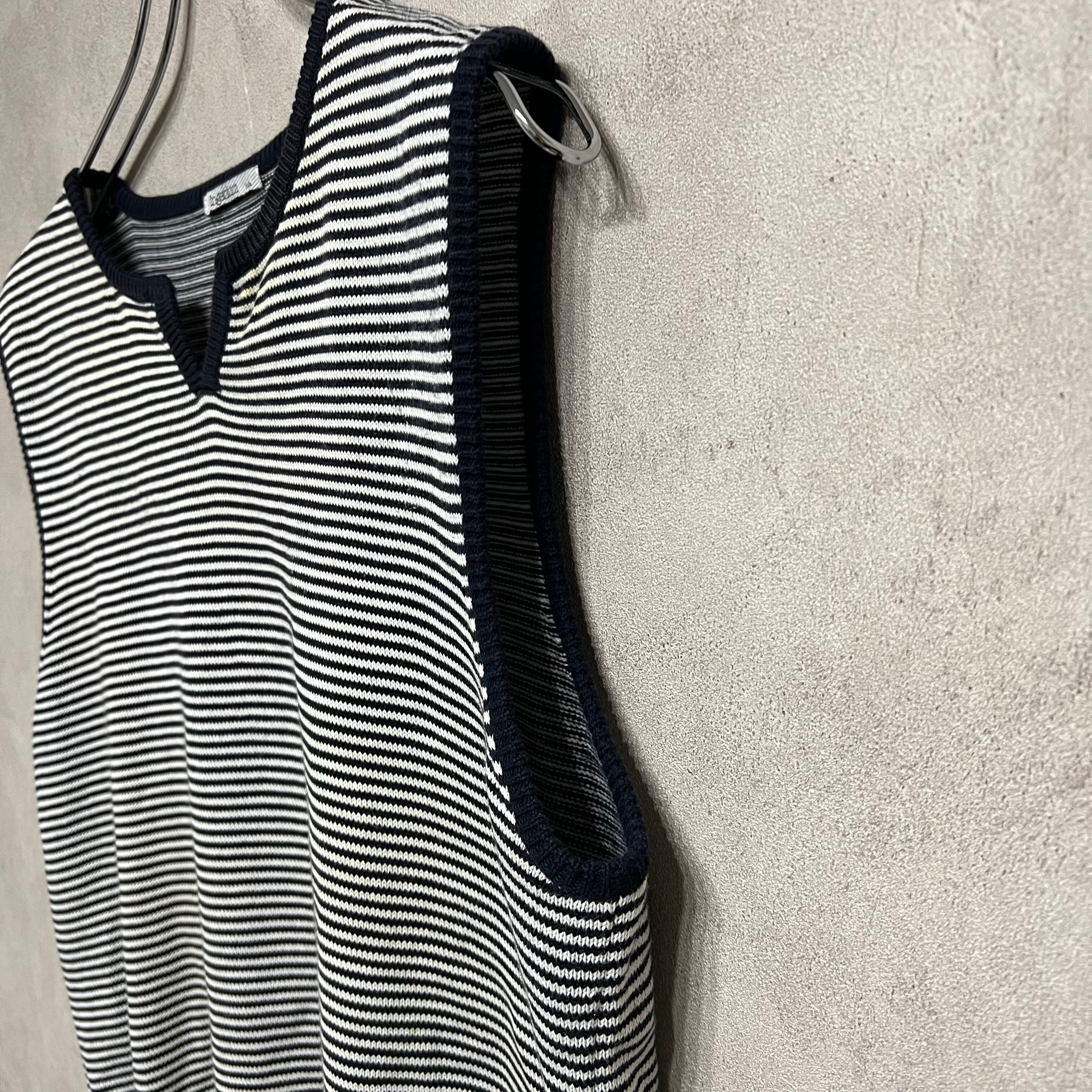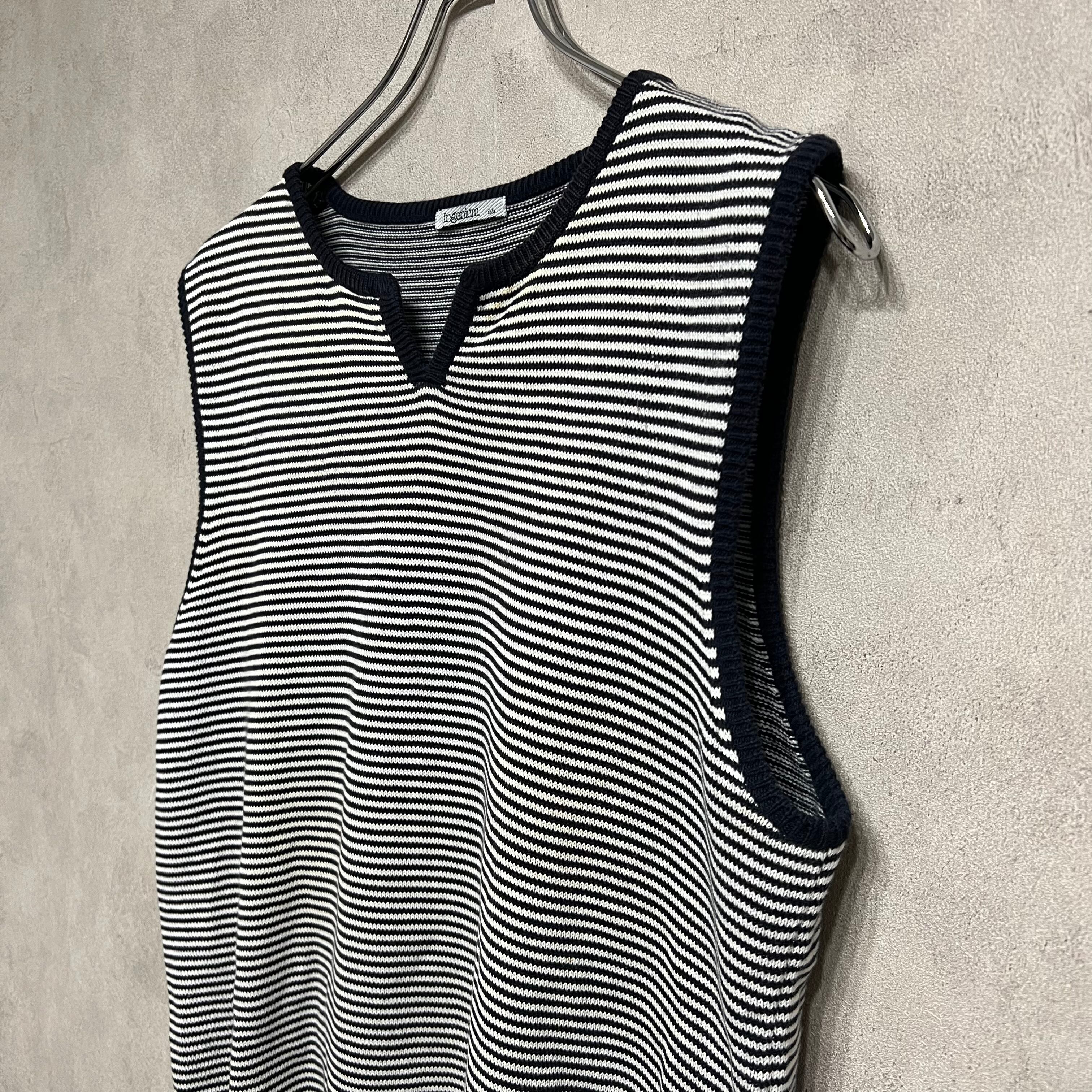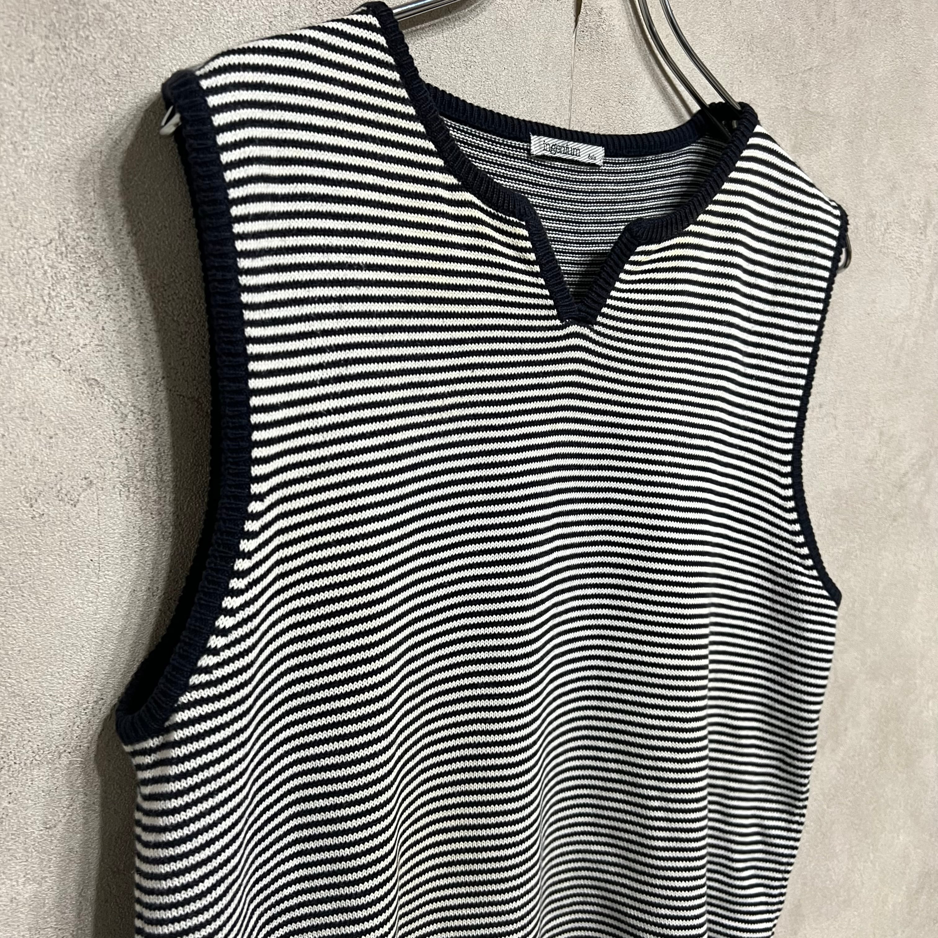 スリットネック コットンベスト Ingenium ネイビー ボーダー レディース 古着 vintage
