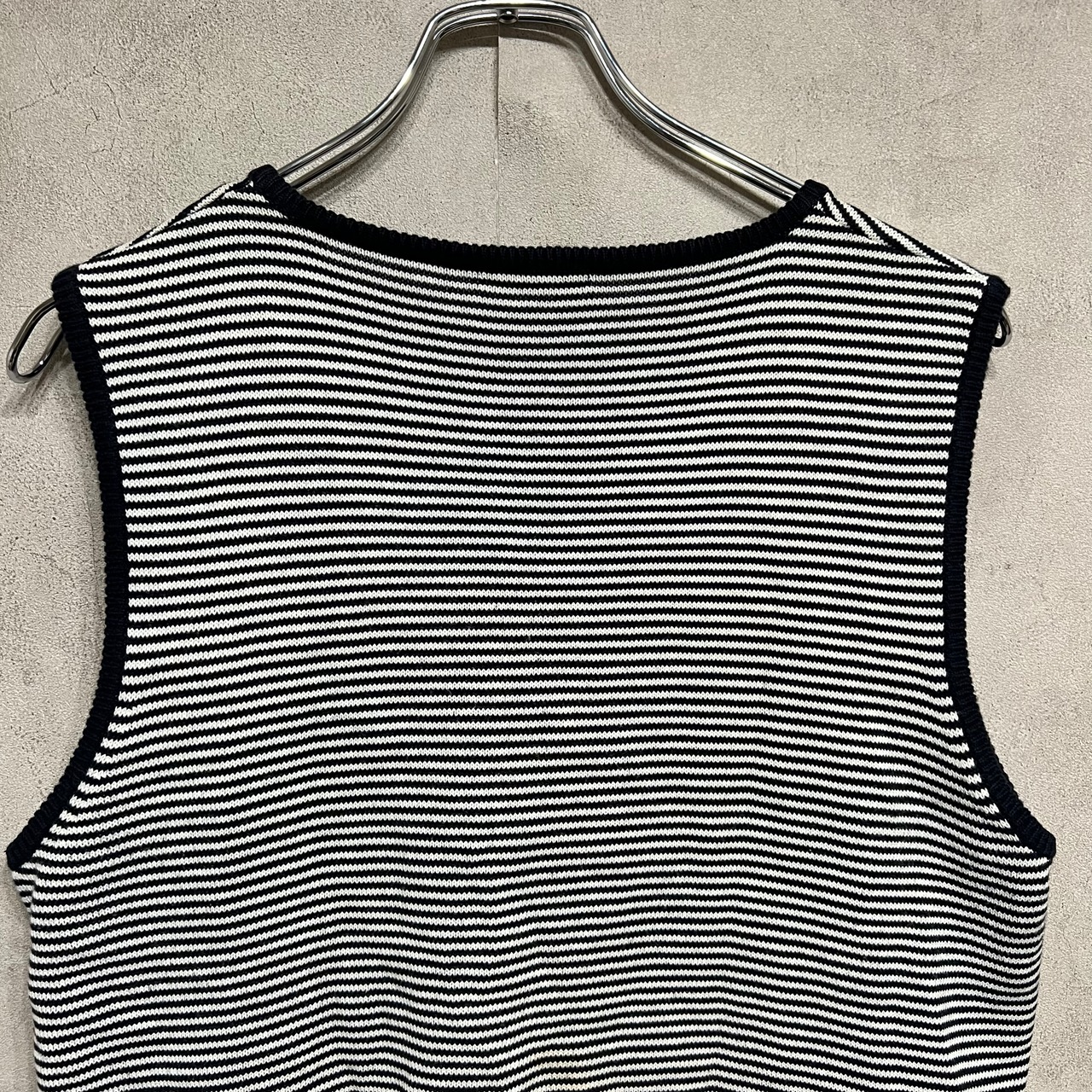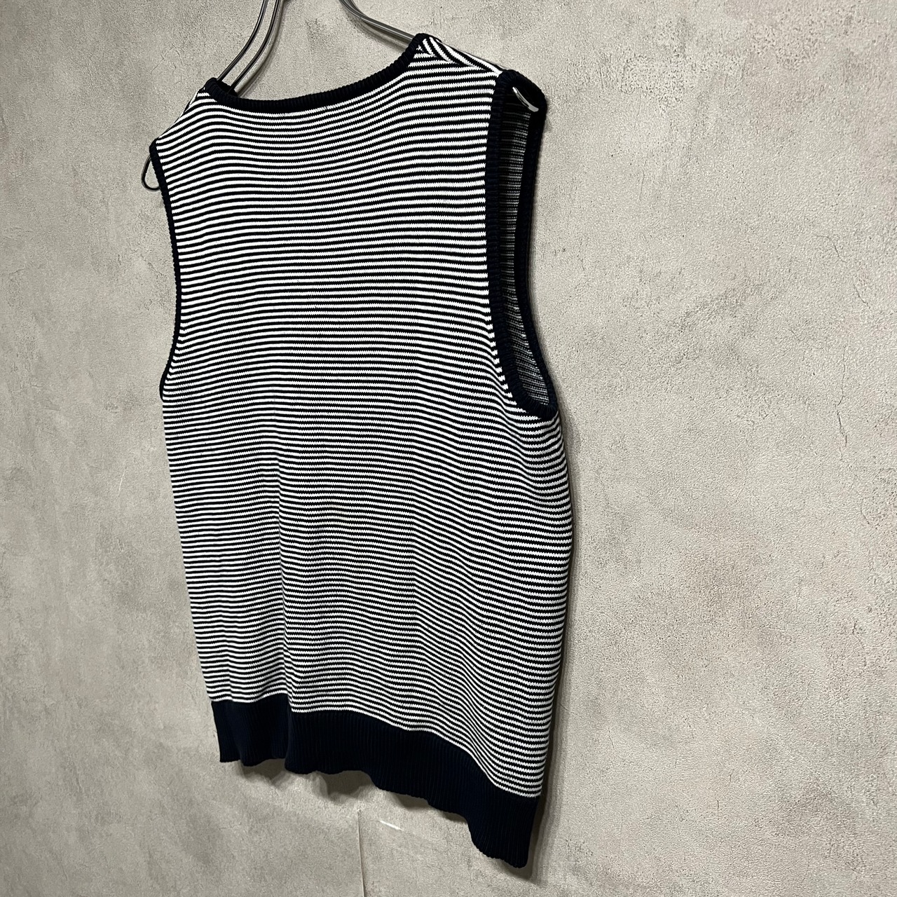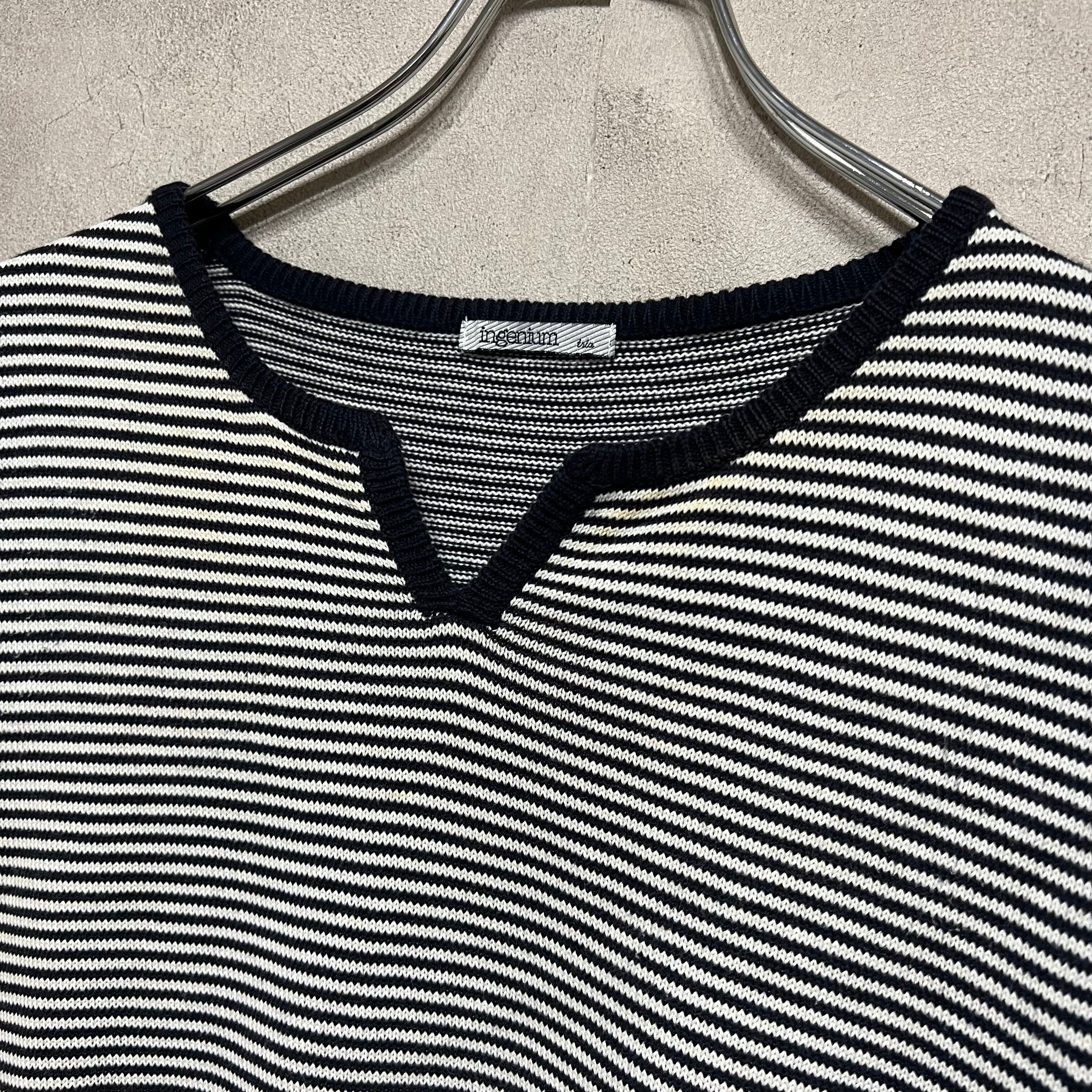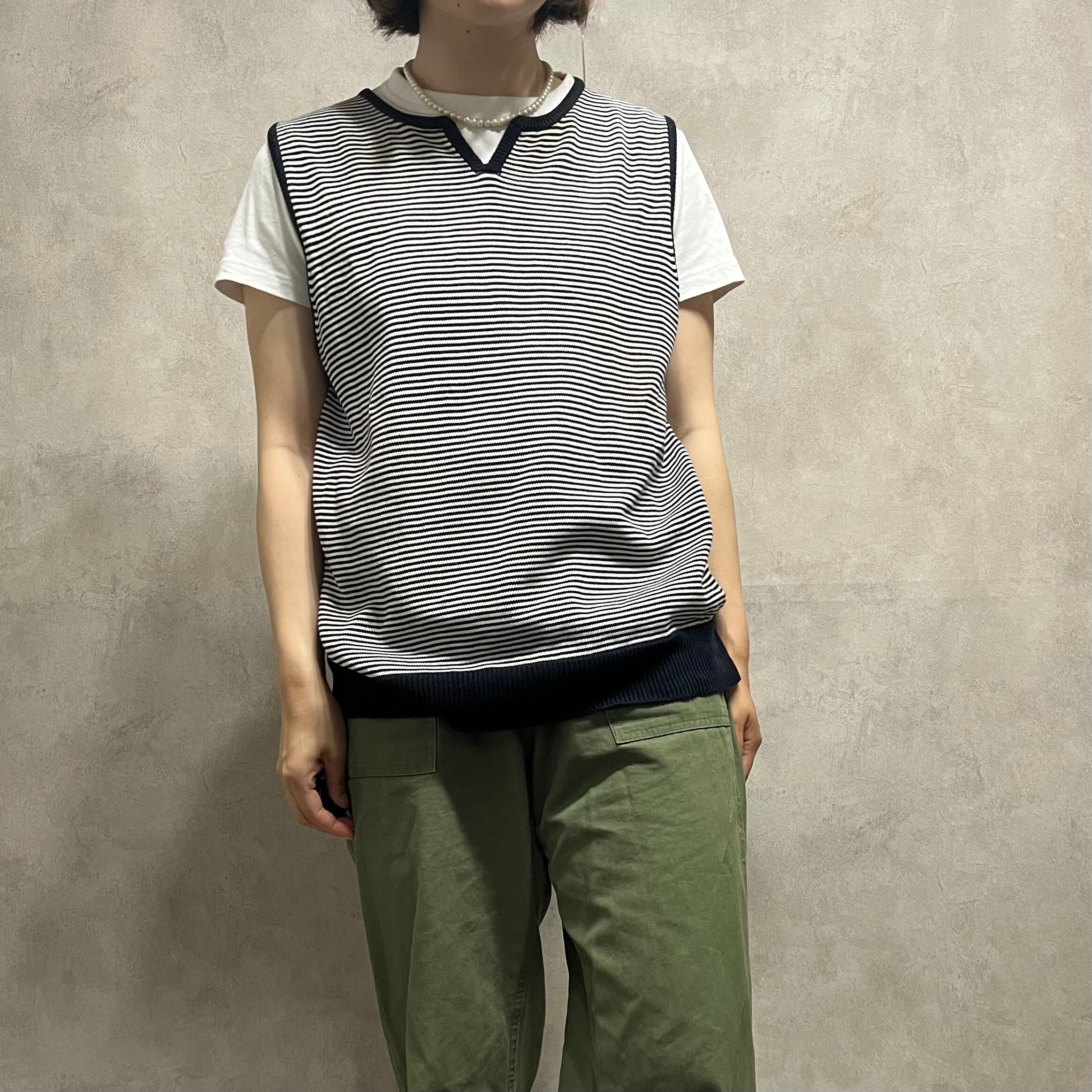 スリットネック コットンベスト Ingenium ネイビー ボーダー レディース 古着 vintage