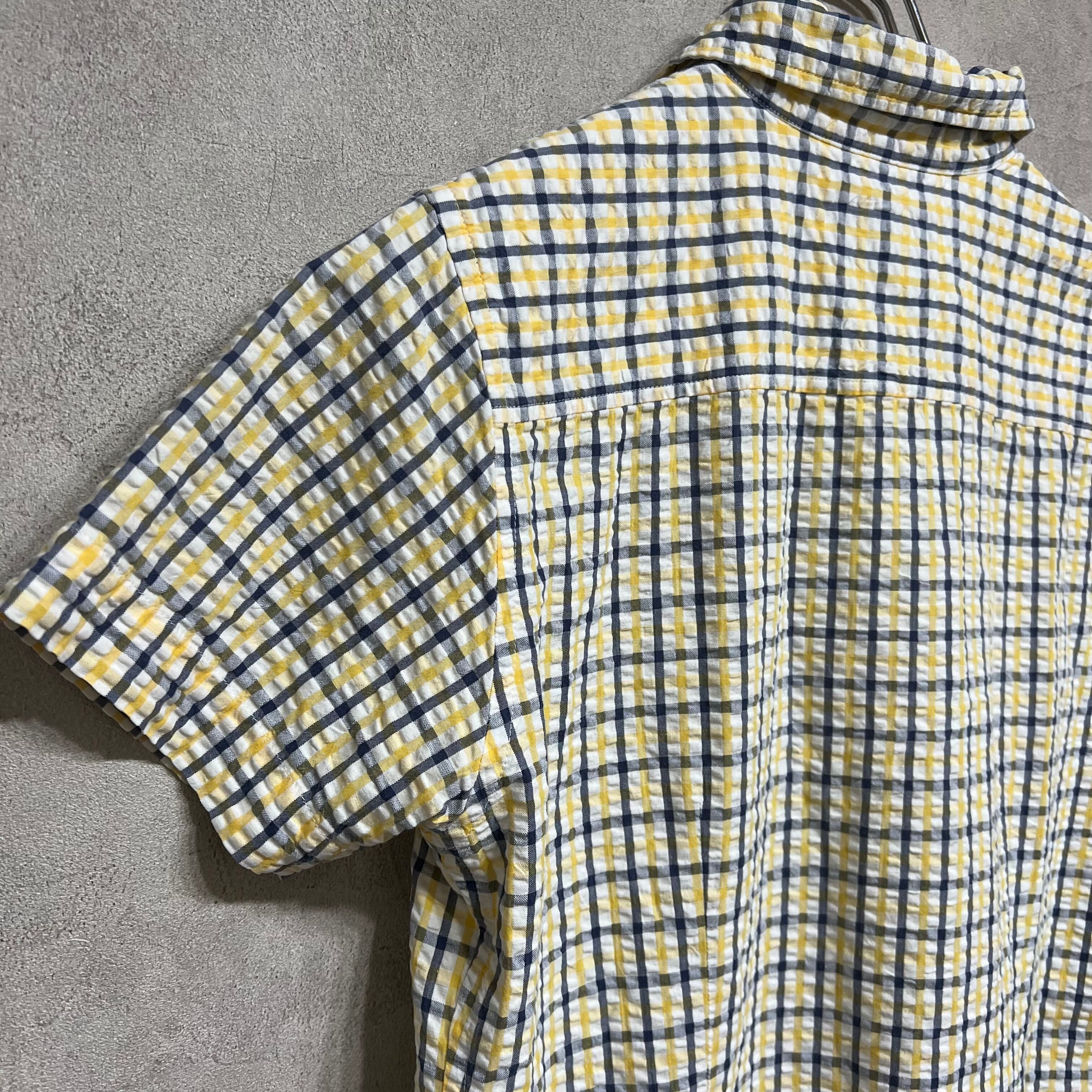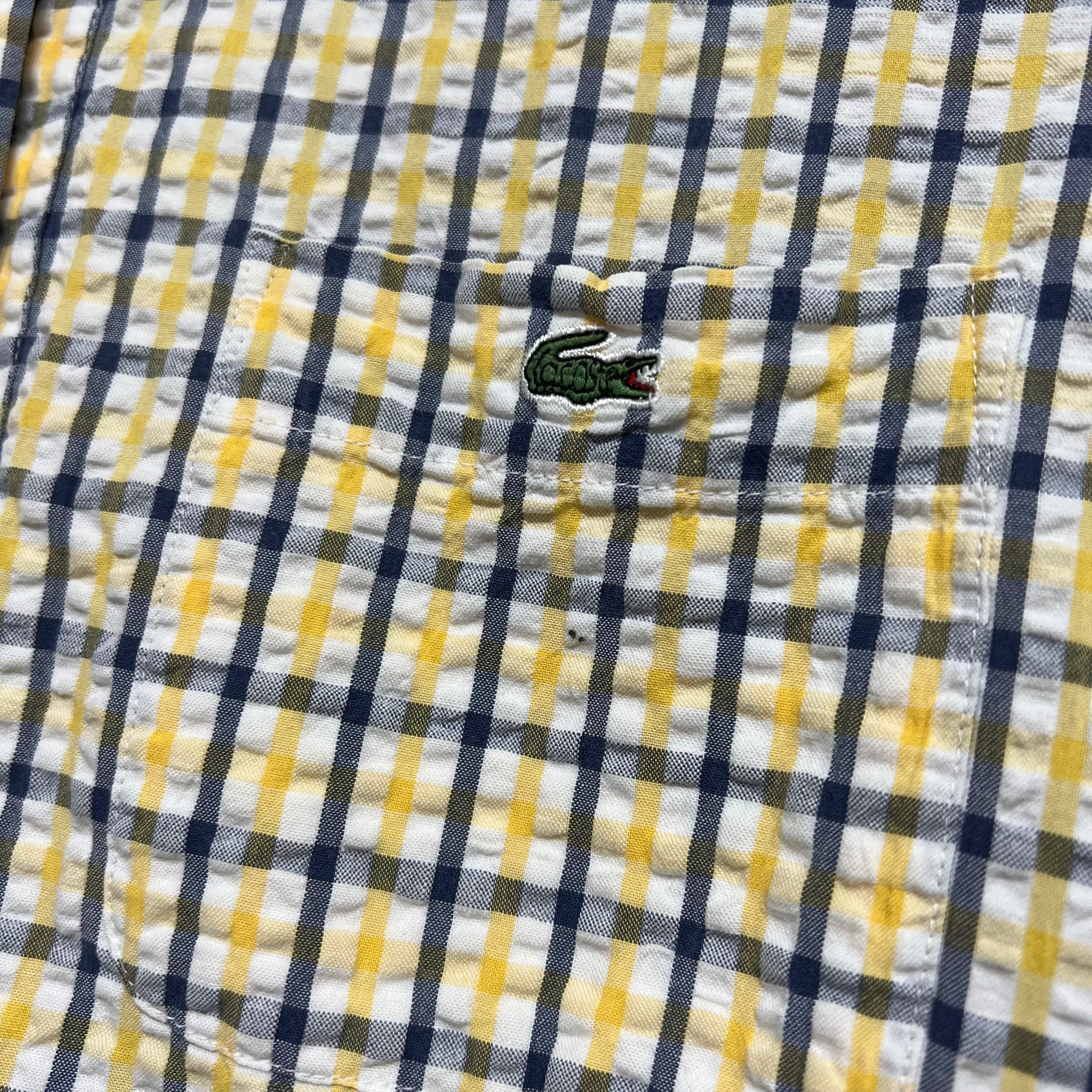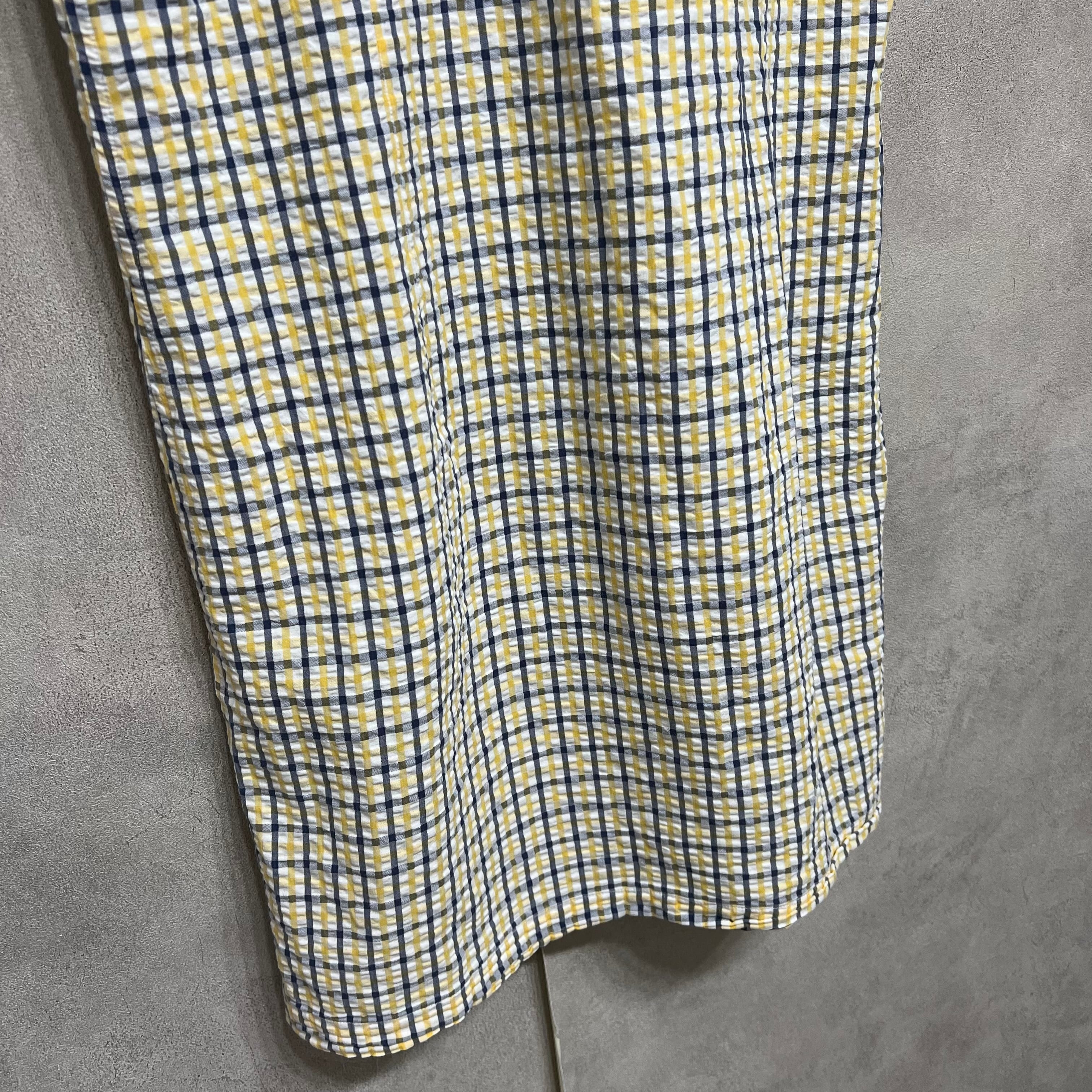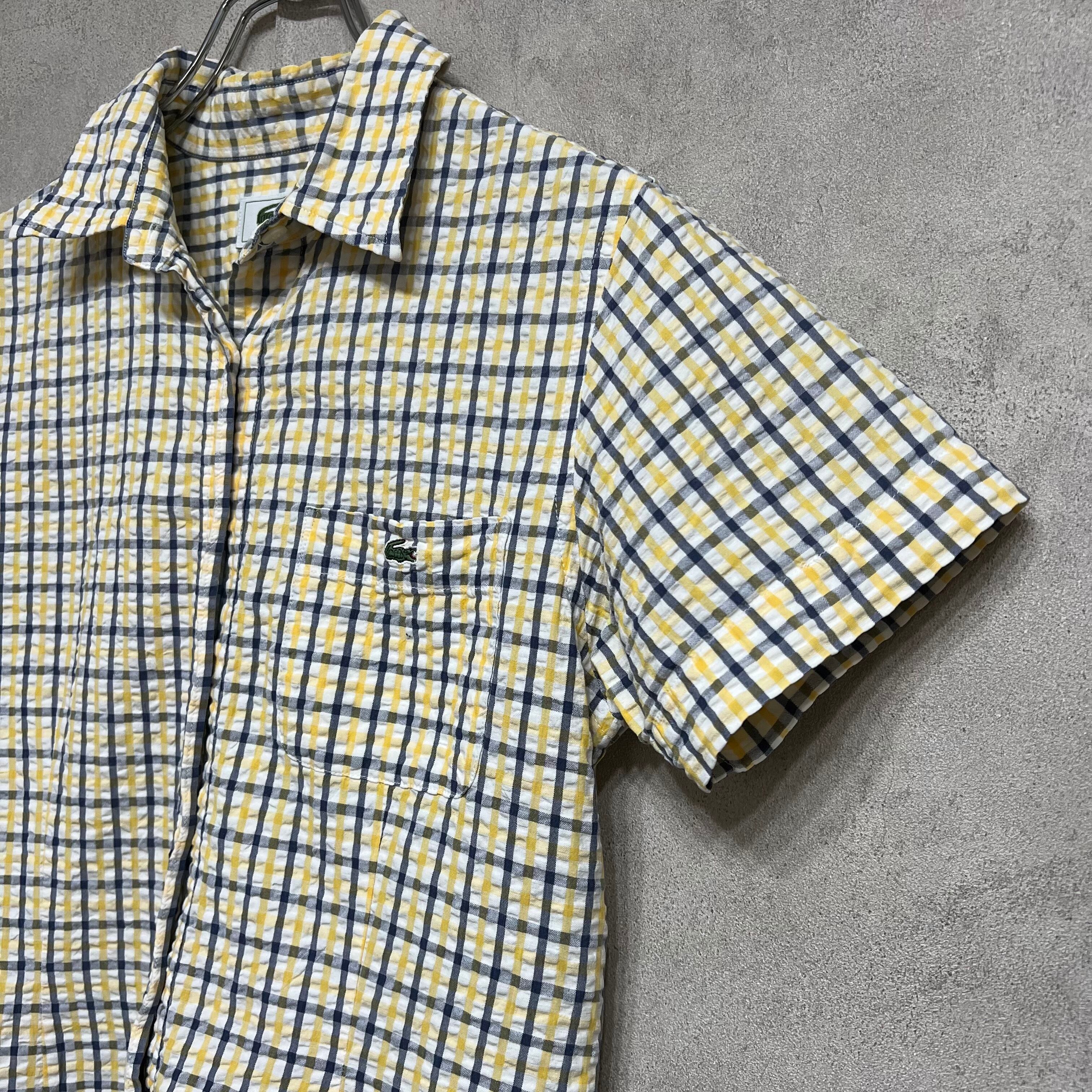 日本製 LACOSTE シアサッカーチェック柄ワンピース イエロー 半袖 ラコステ 90s 80s vintage 古着 レディース