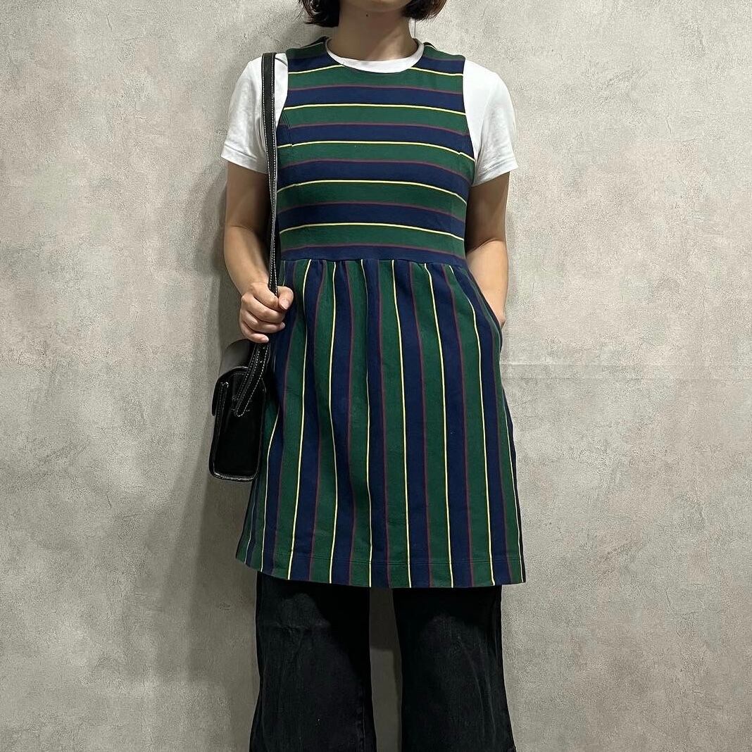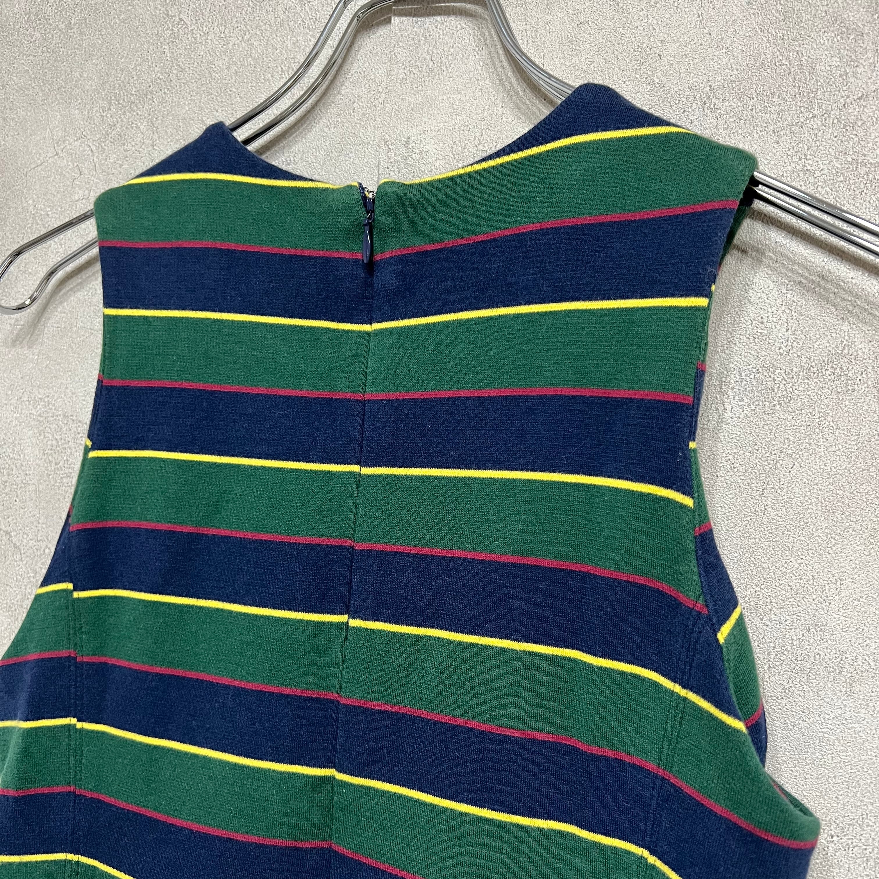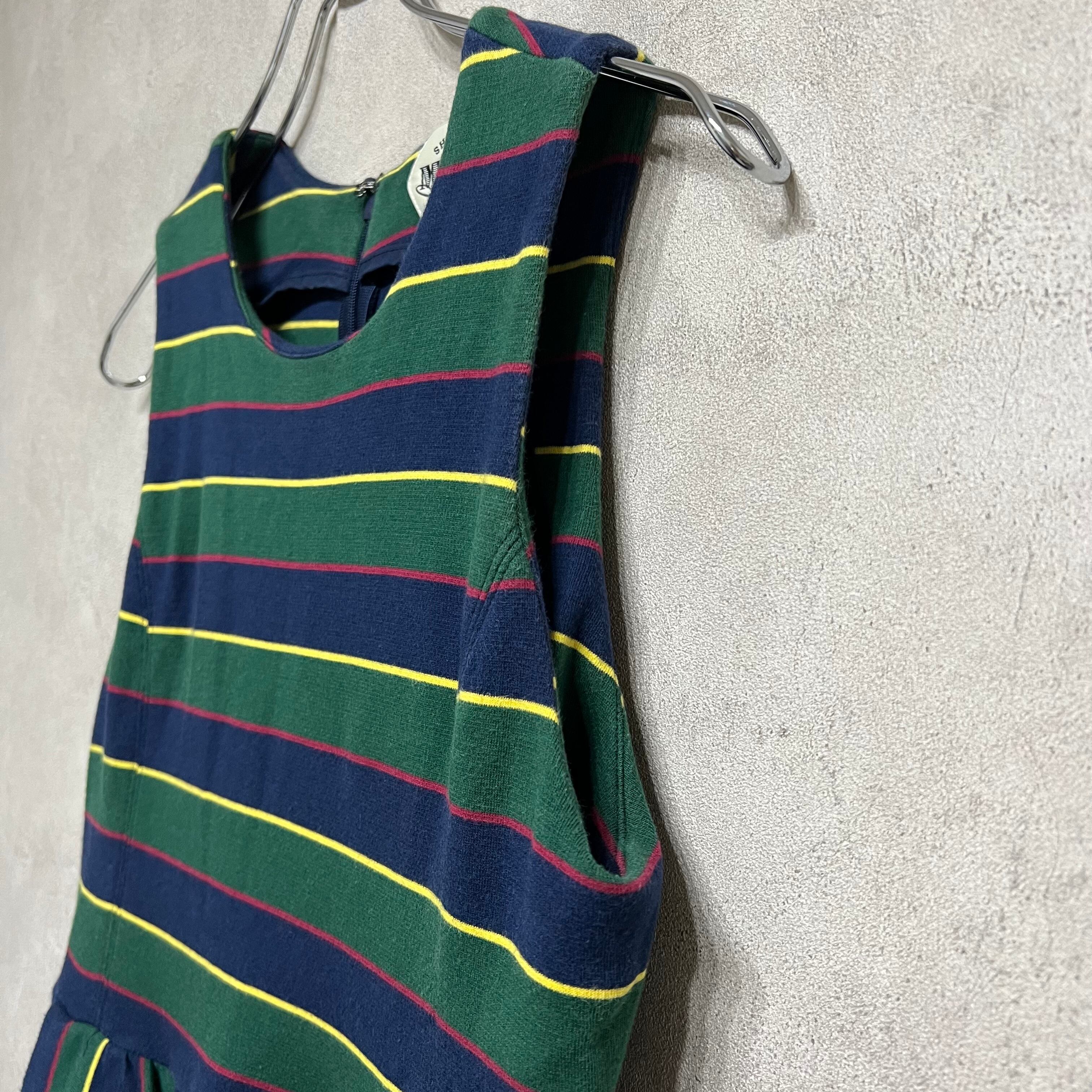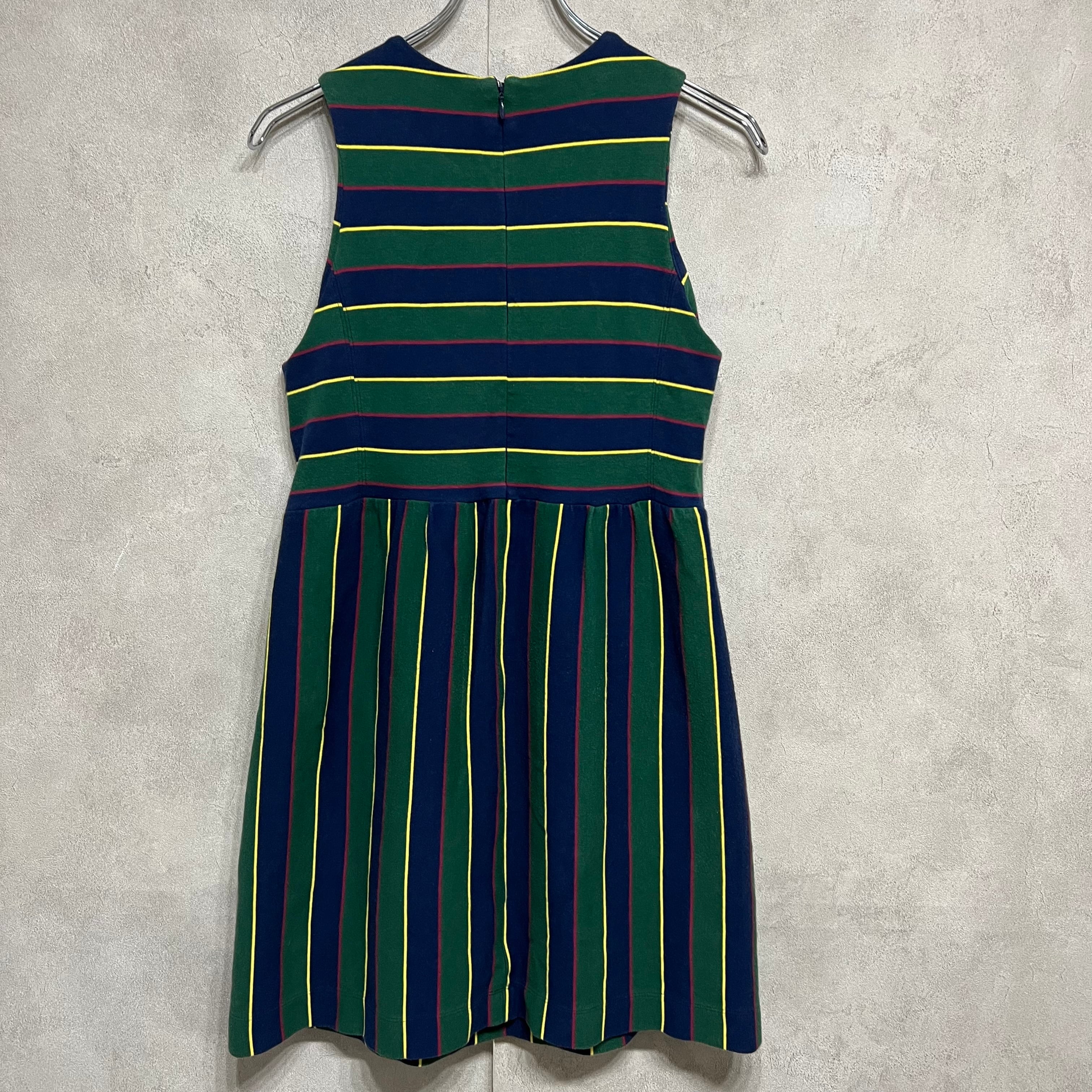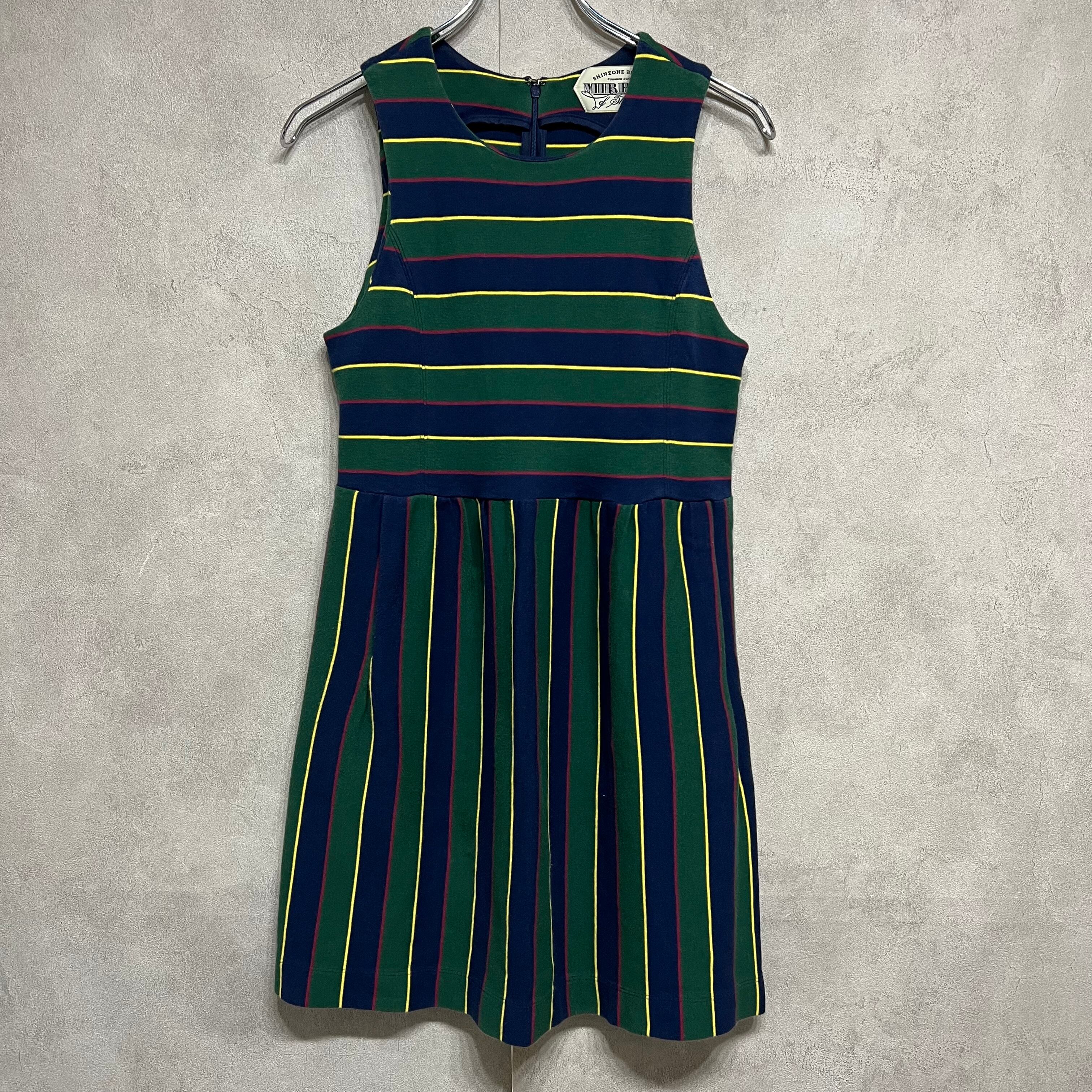 MIRROR OF Shinzone ラウンドネックボーダーワンピース グリーン 切り替え シンゾーン ミニ丈 古着 レディース vintage