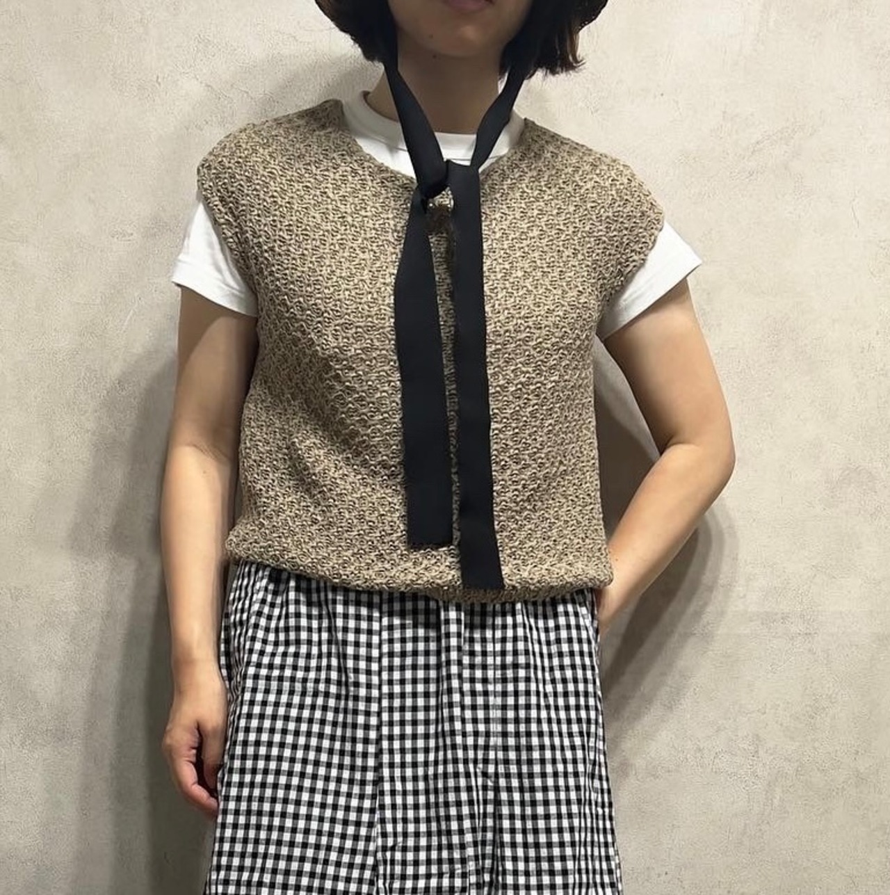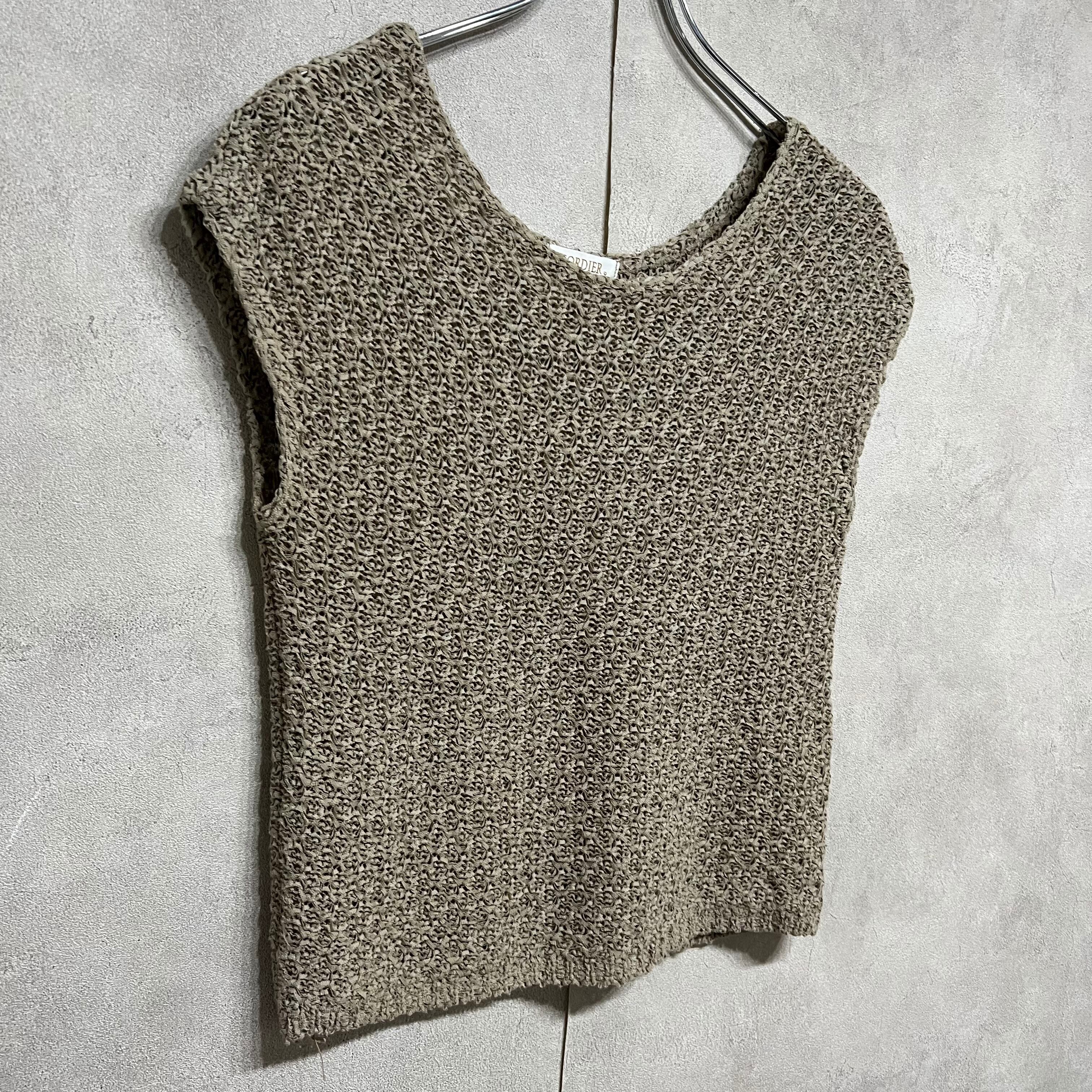 CORDIER クロシェ編みベスト ベージュ かぎ編み コットン 淡色 古着 vintage レディース