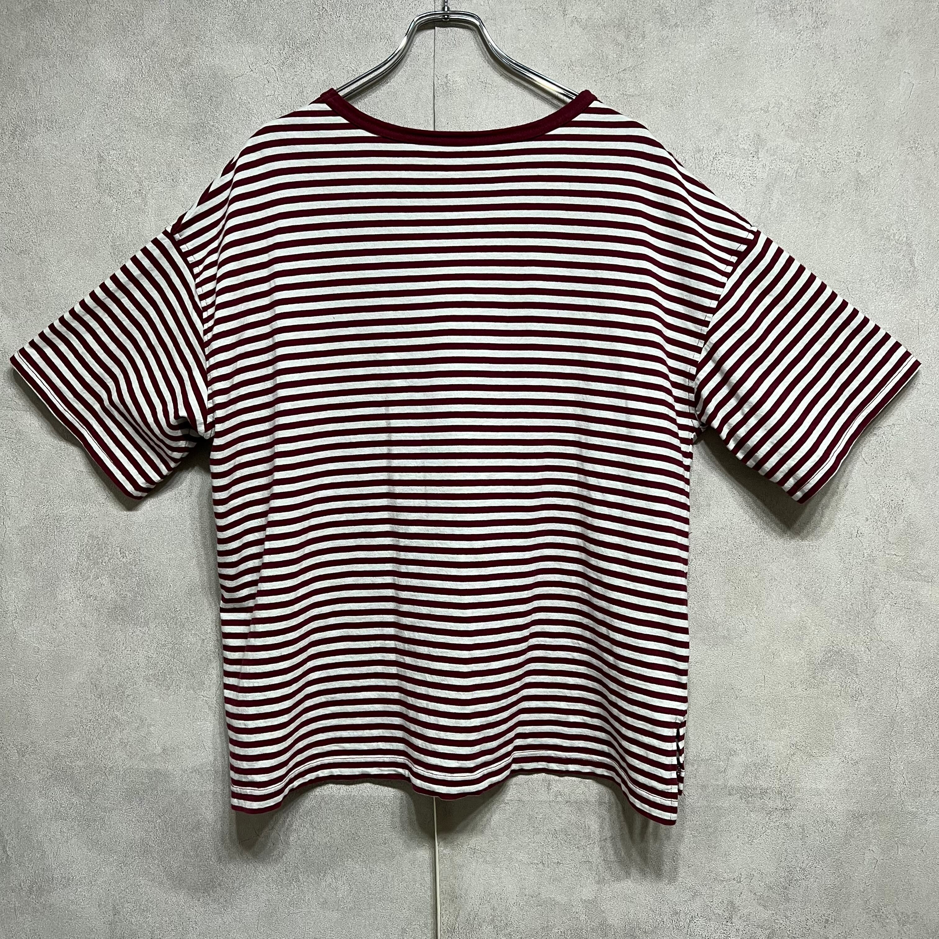 soulberry ラウンドネックボーダーTシャツ レッド 赤 ビッグT メンズライク ユニセックス オーバーサイズ プチプラ 古着 レディース vintage