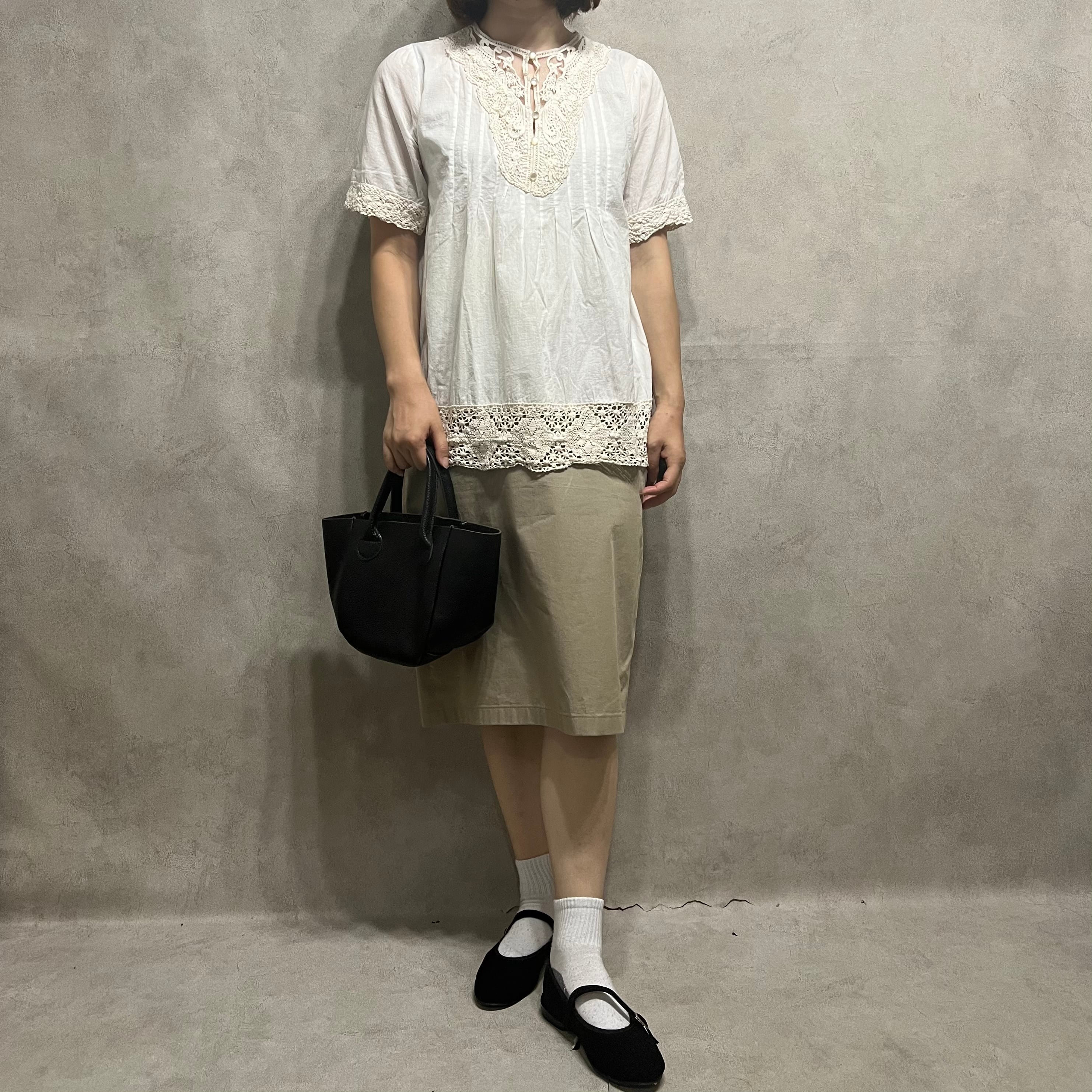 agnes b. ペンシルチノスカート アニエスベー ベージュ 膝下 膝丈 綿 レディース 古着 プチプラ vintage