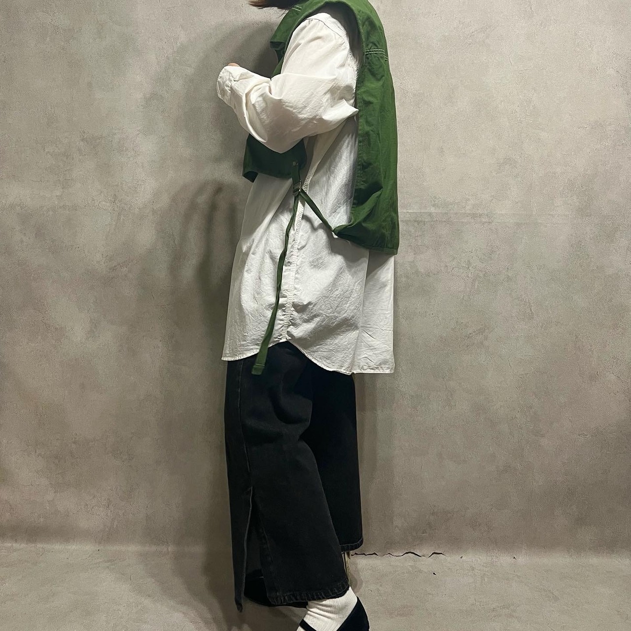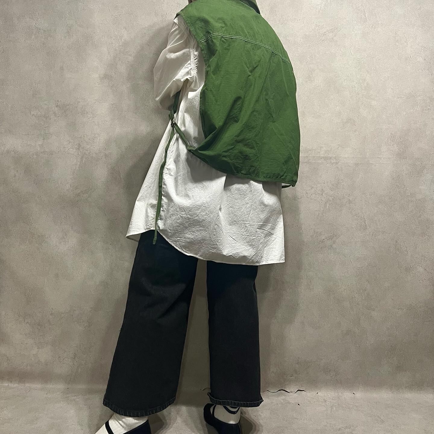 1枚上に着るだけで簡単にレイヤードコーデになるショートベスト。