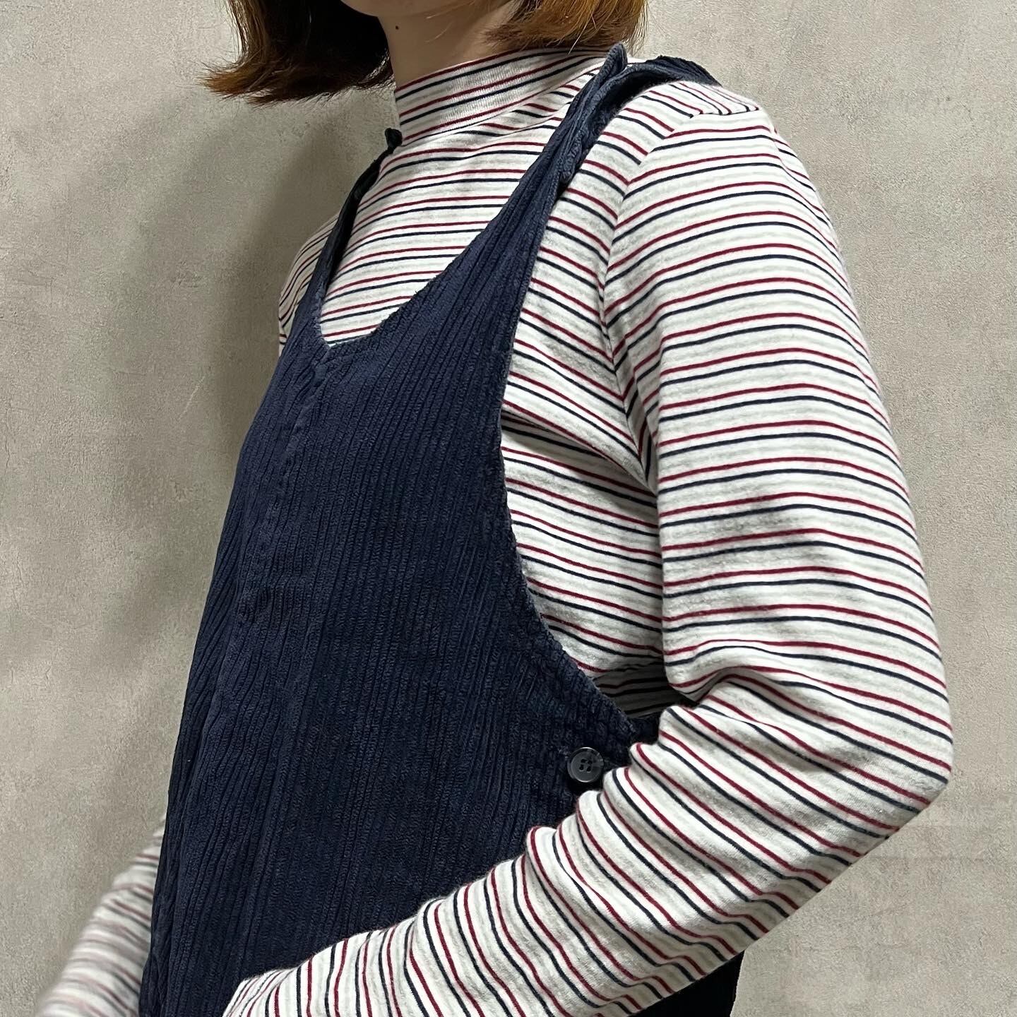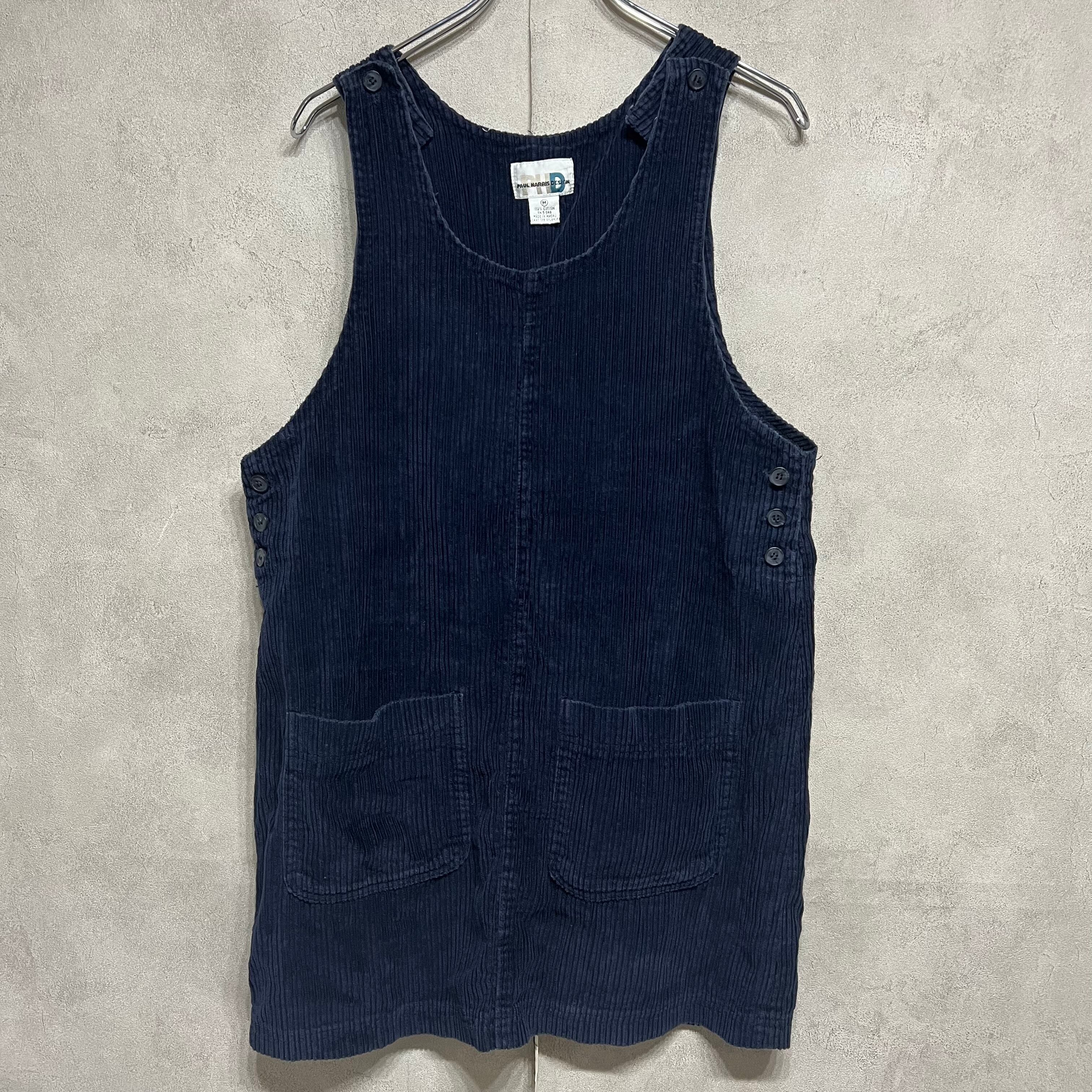vintage コーデュロイジャンパースカート ネイビー 秋冬 古着 ワンピース プチプラ レディース