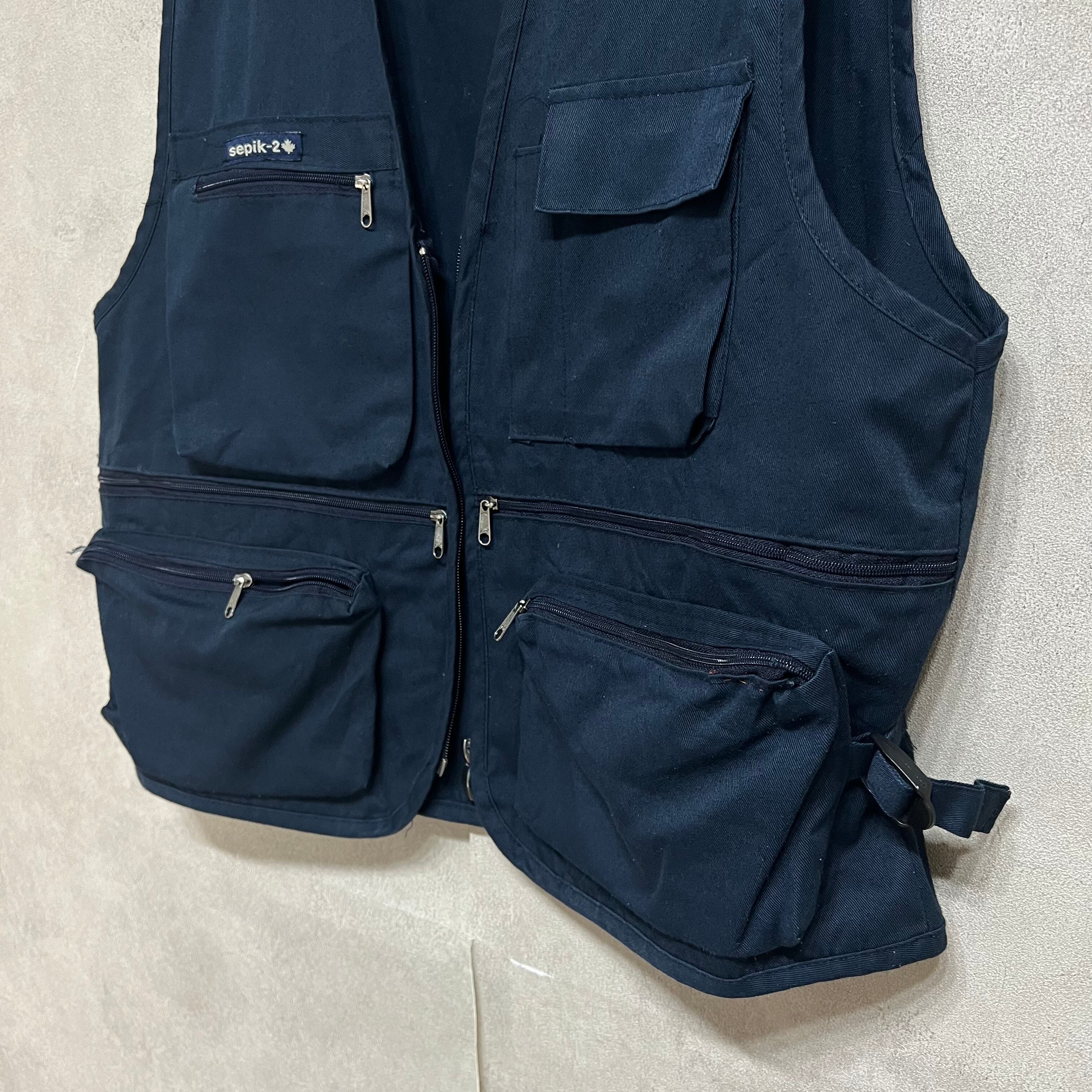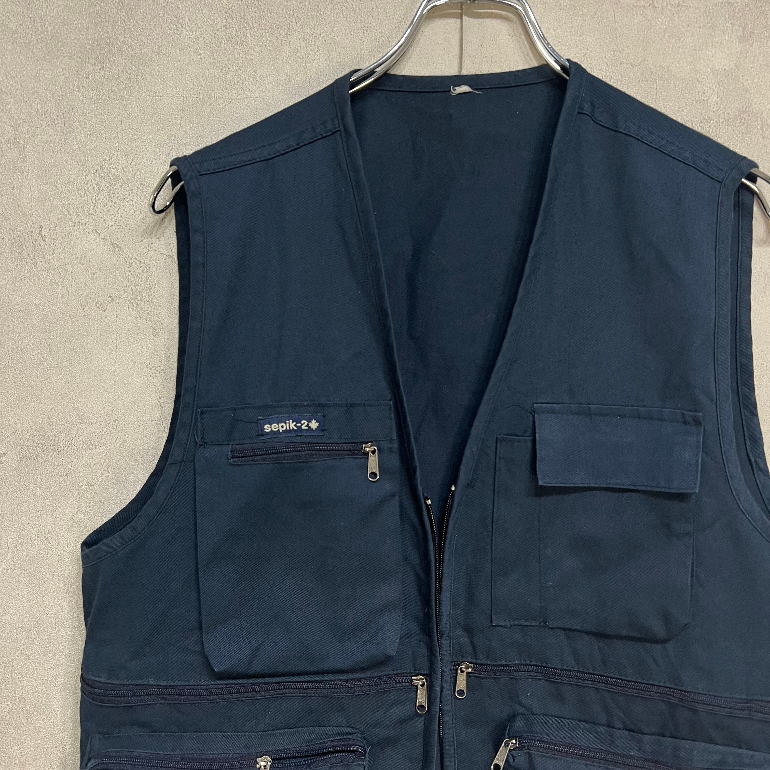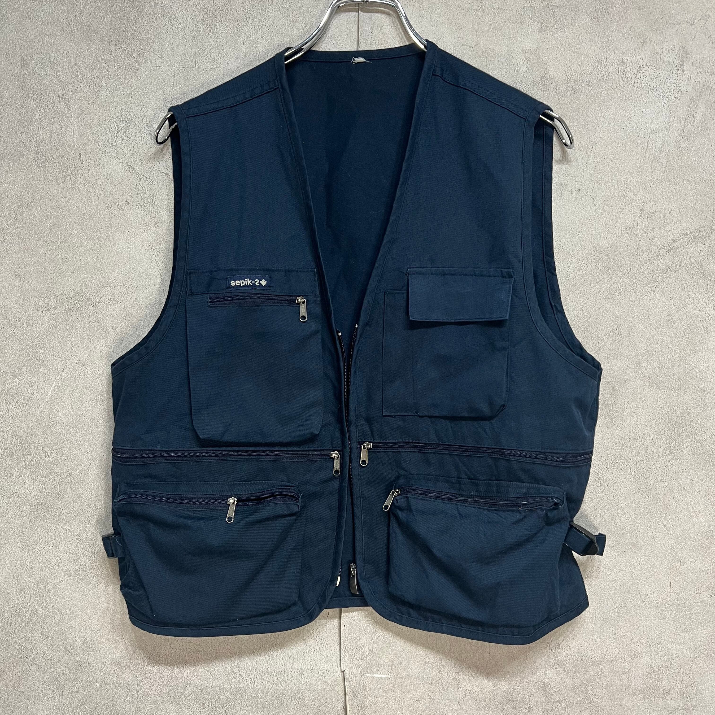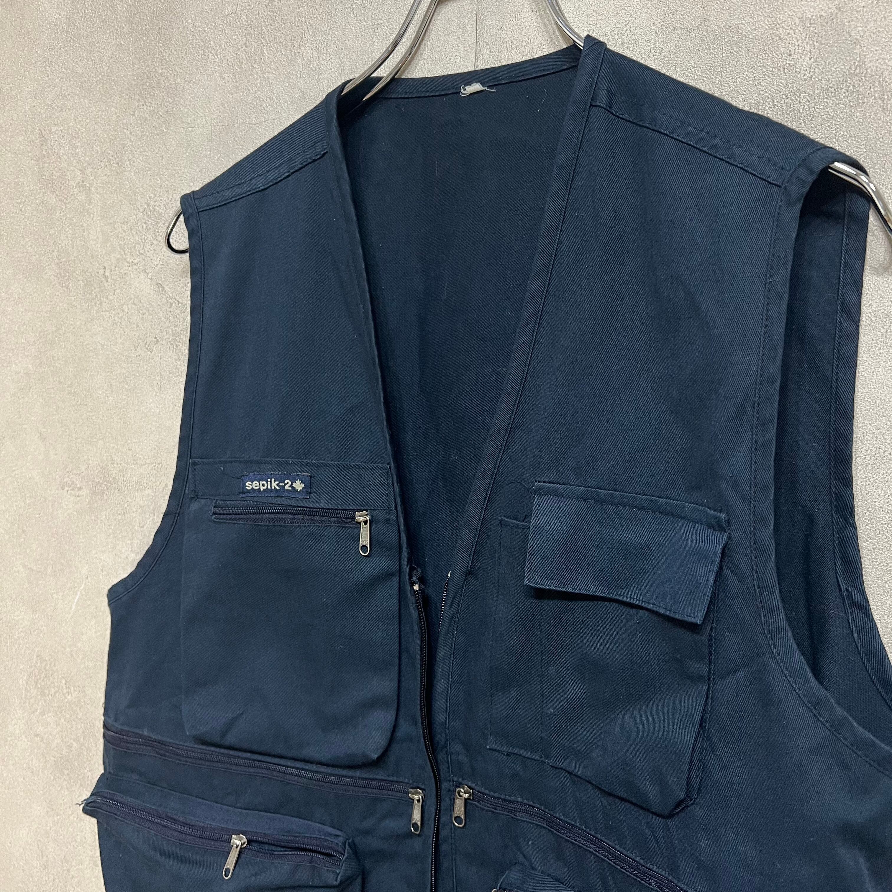 used ワークジップベスト ネイビー 古着 プチプラ vintage カジュアル レディース