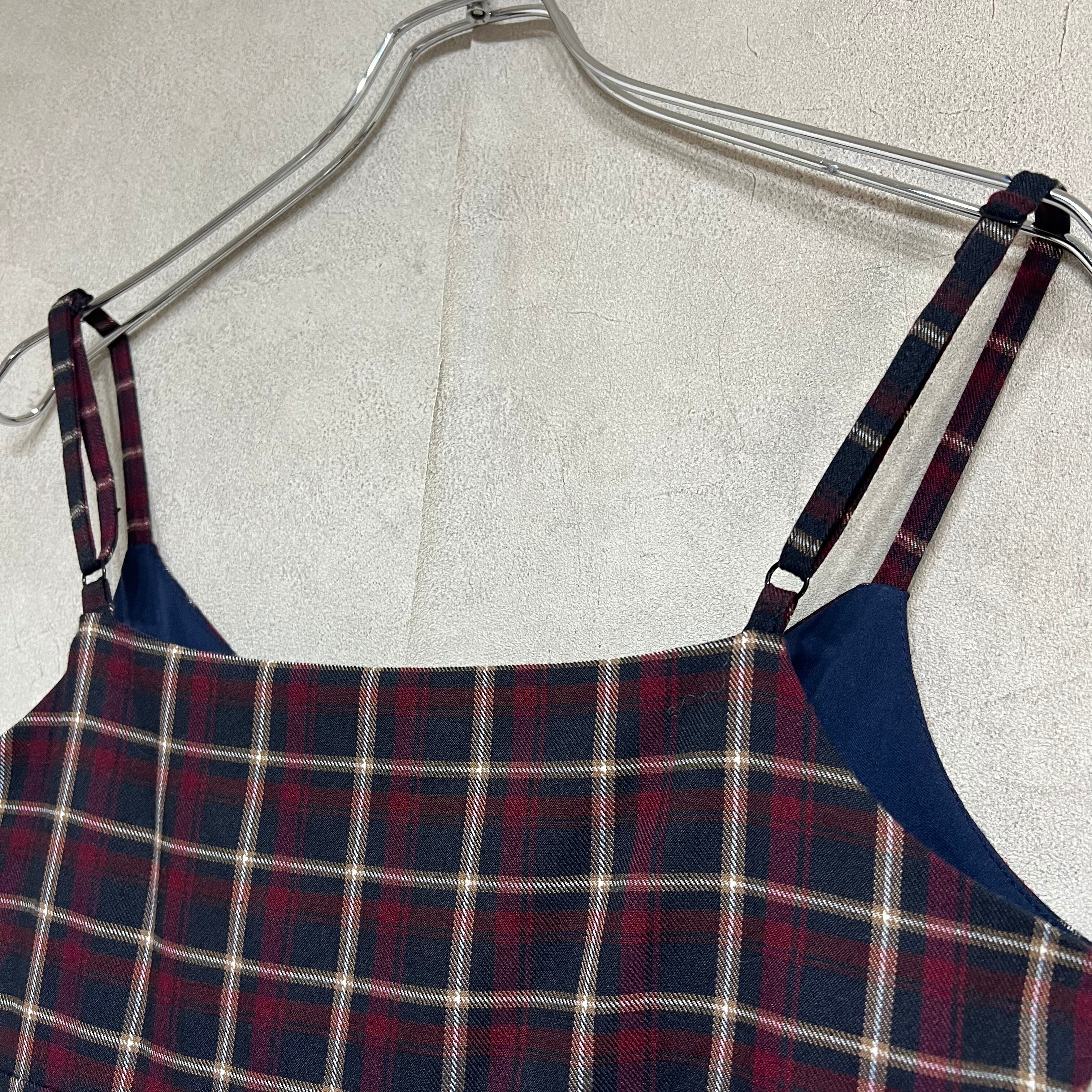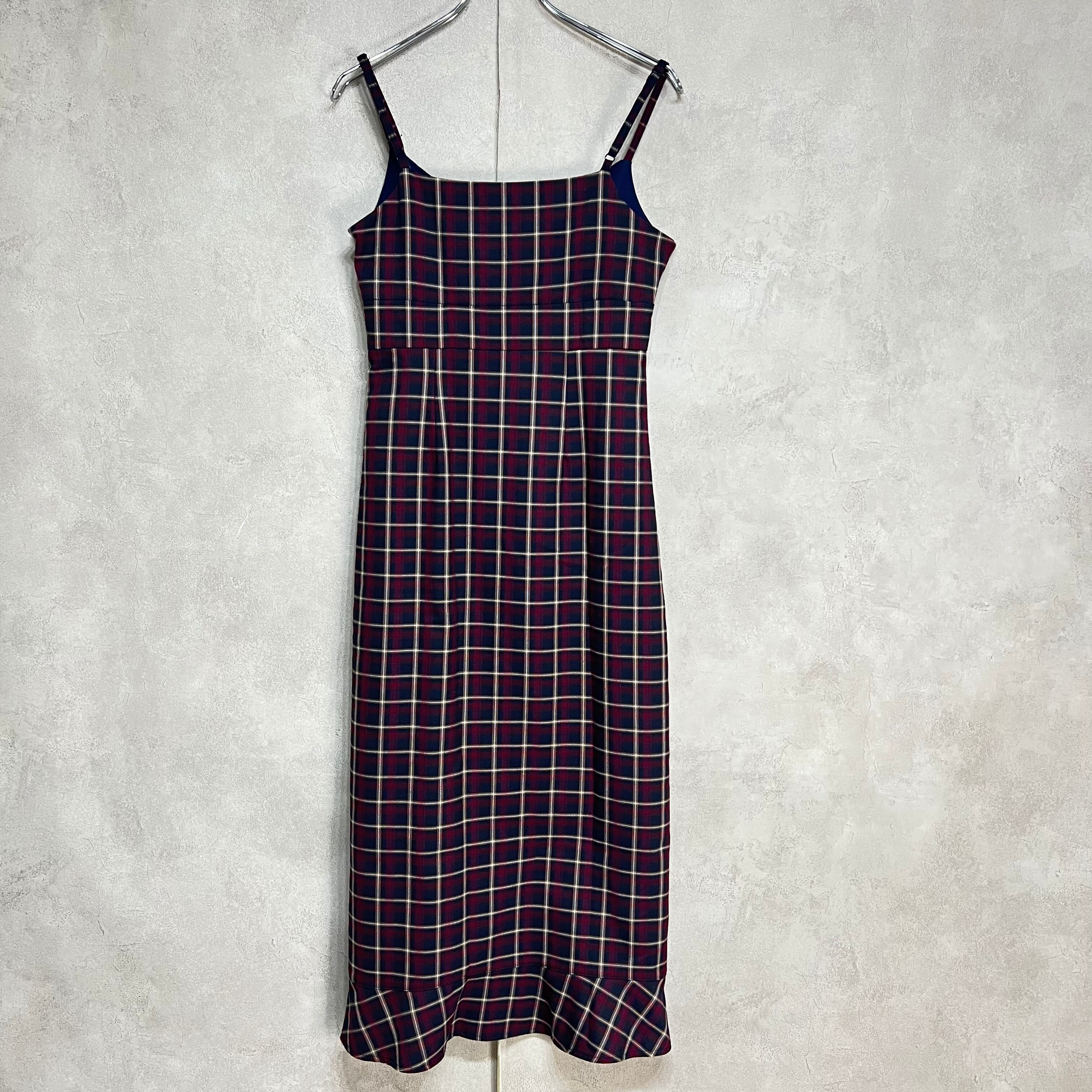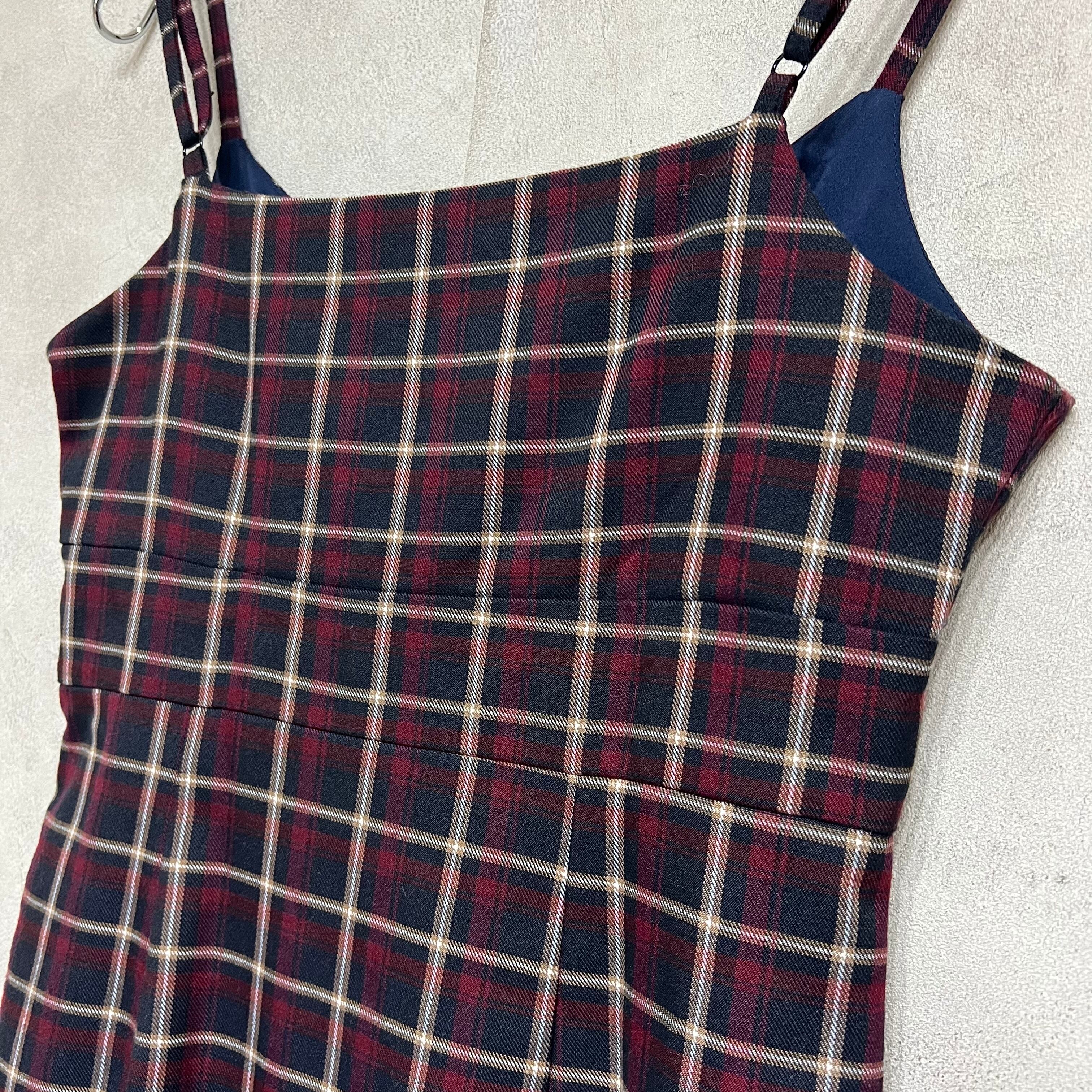 mangata チェック柄マーメイドキャミソールワンピース モンガータ 秋冬 ボルドー 古着 レディース プチプラ