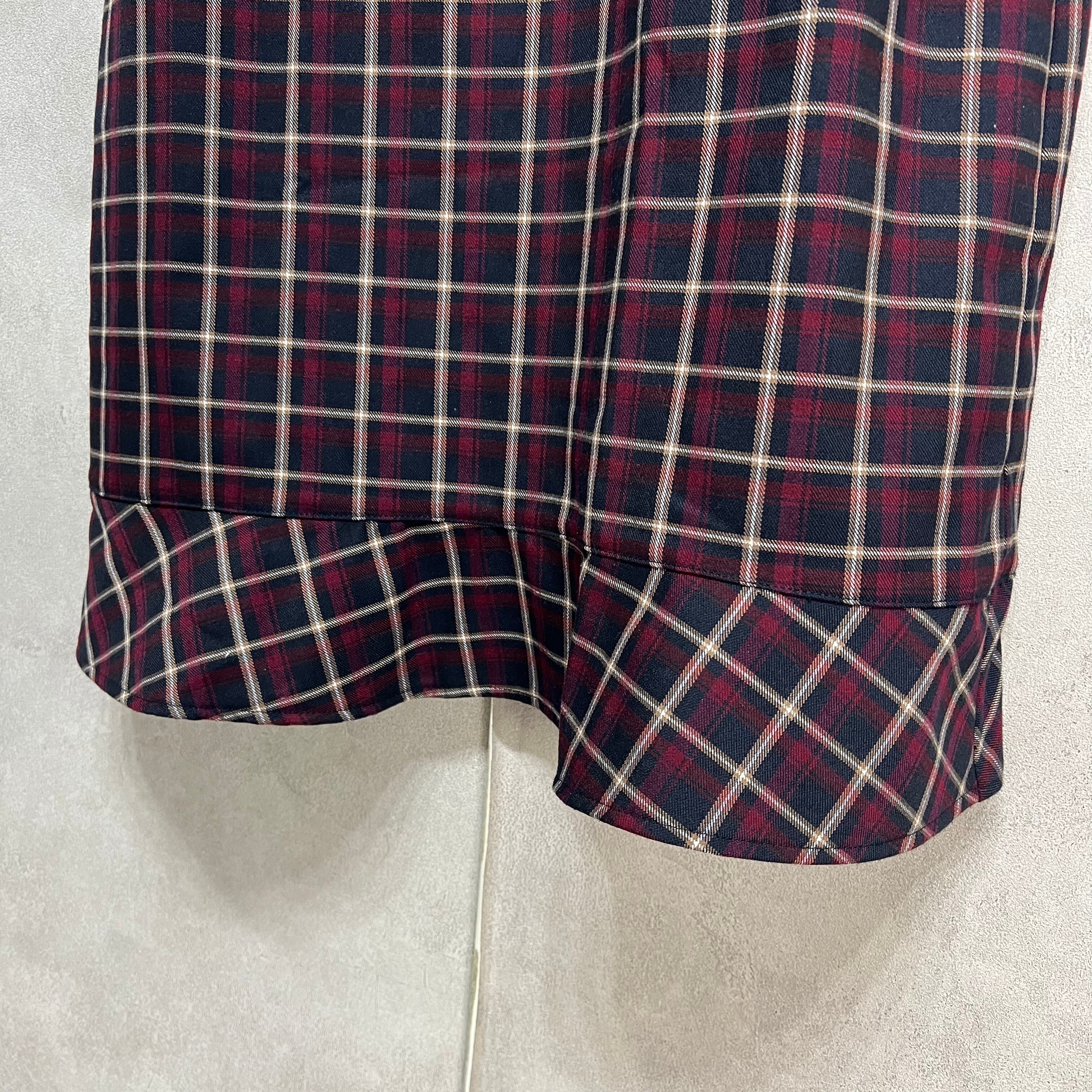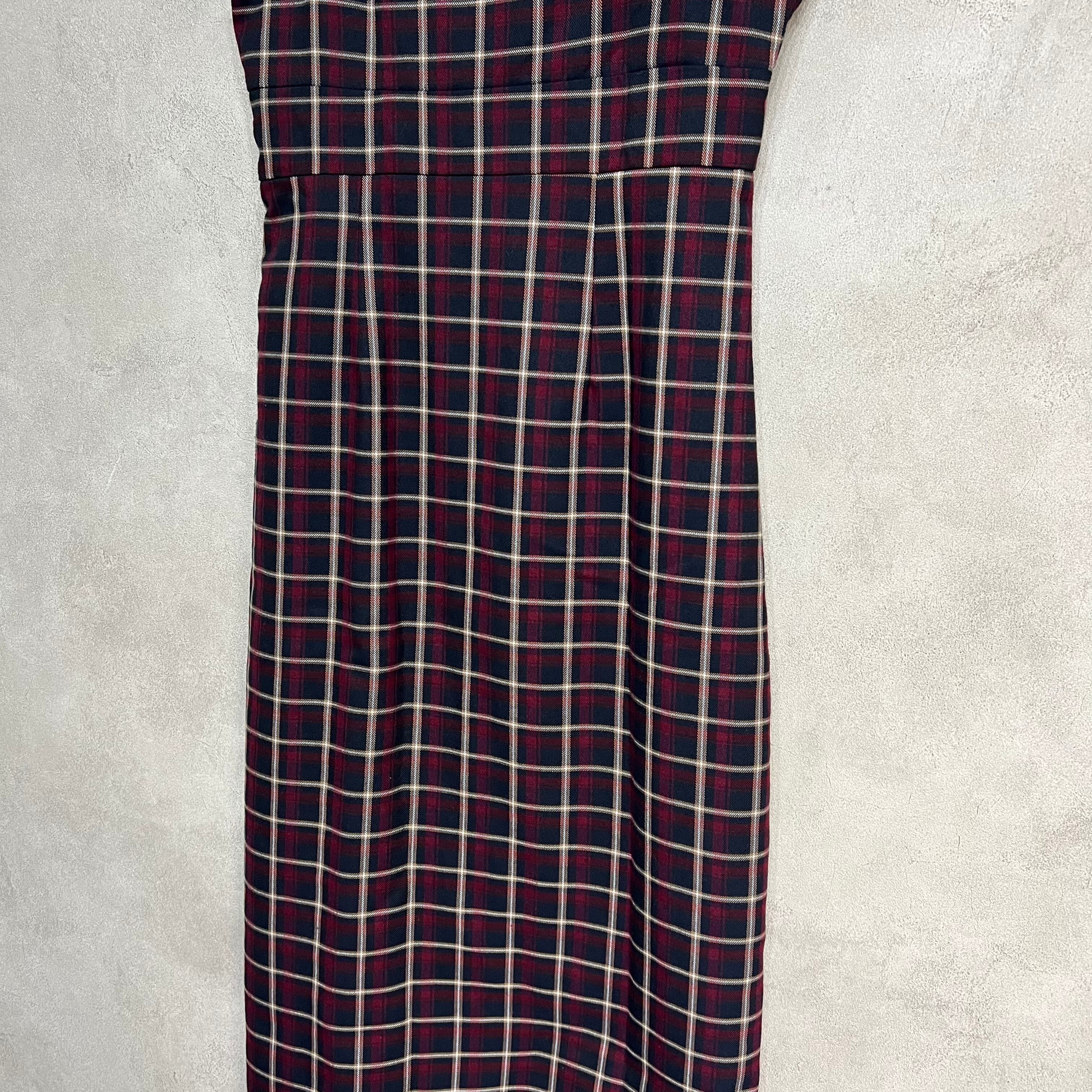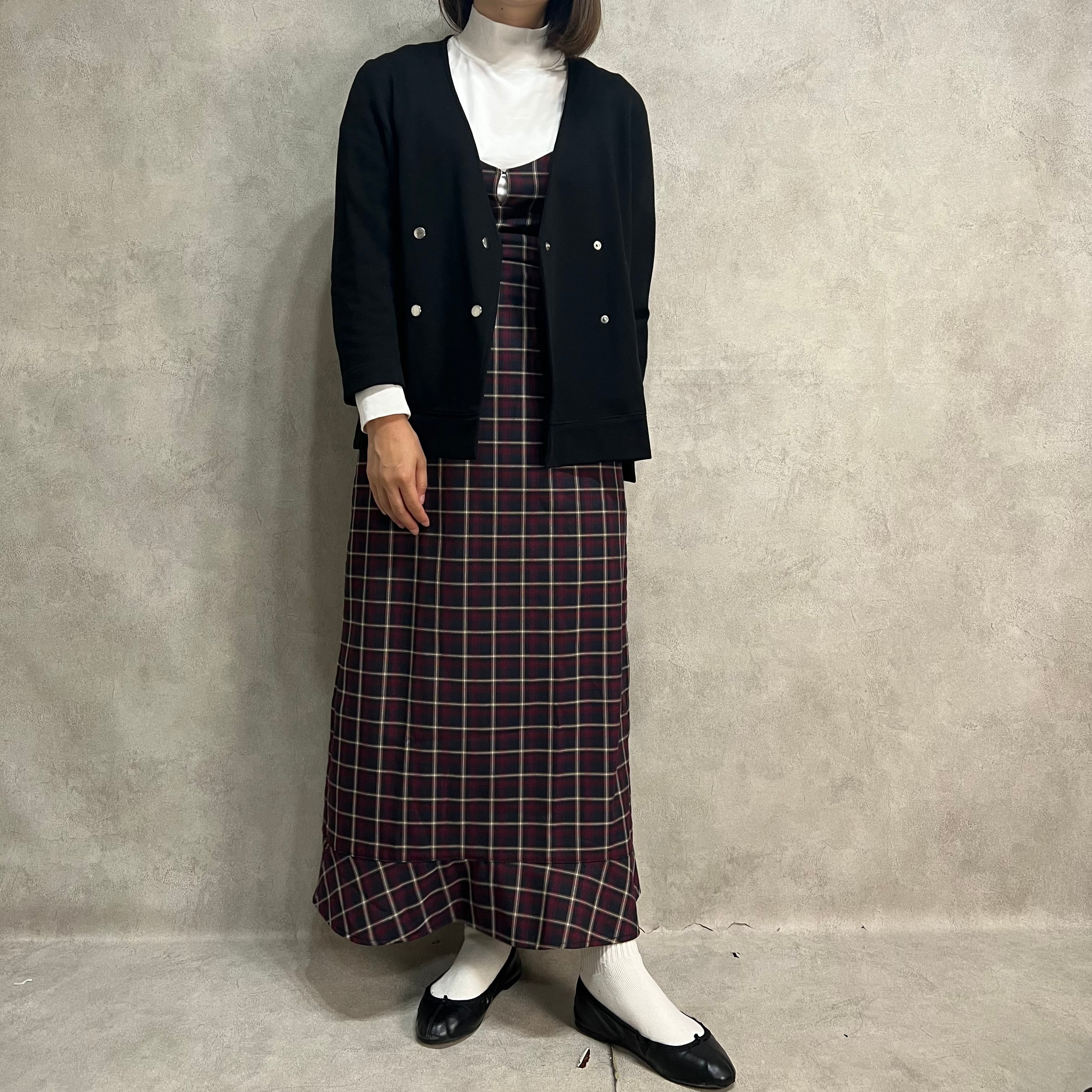 mangata チェック柄マーメイドキャミソールワンピース モンガータ 秋冬 ボルドー 古着 レディース プチプラ