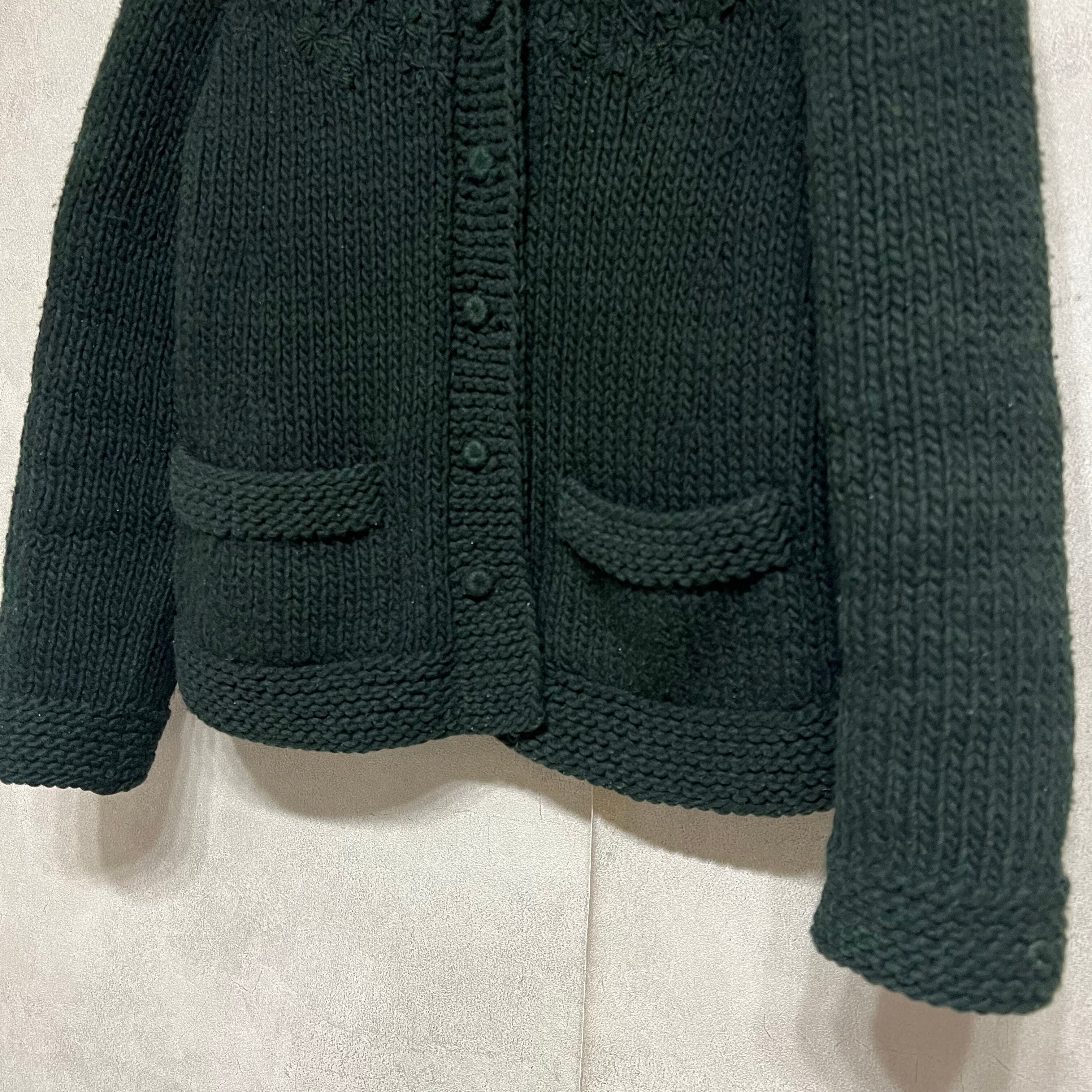 NIMES ペルーニット刺繍カーディガン ニーム グリーン 秋冬 古着 レディース vintage