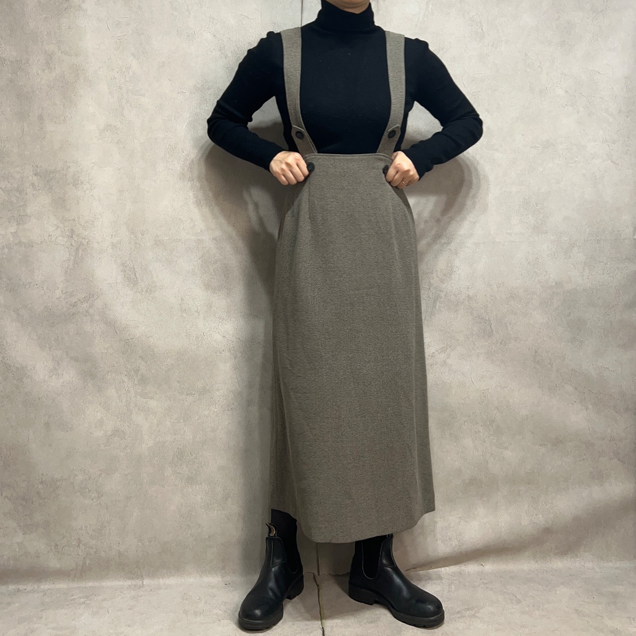 vintage ショルダーストラップ付きハイウエストスカート 古着 レディース