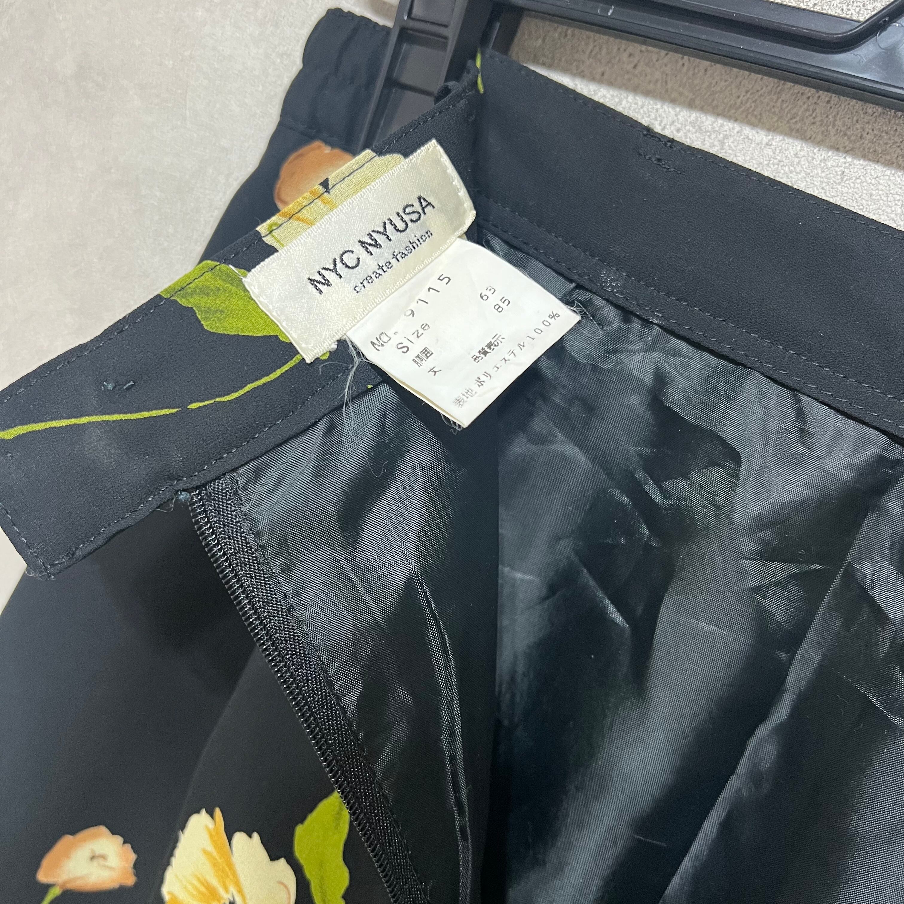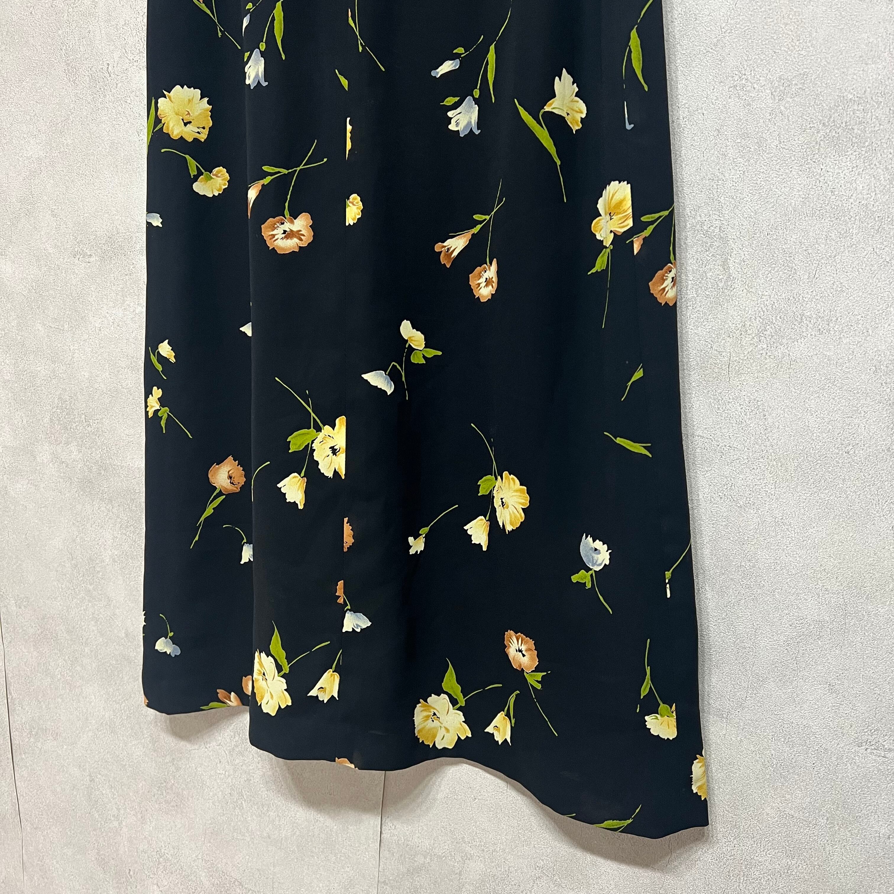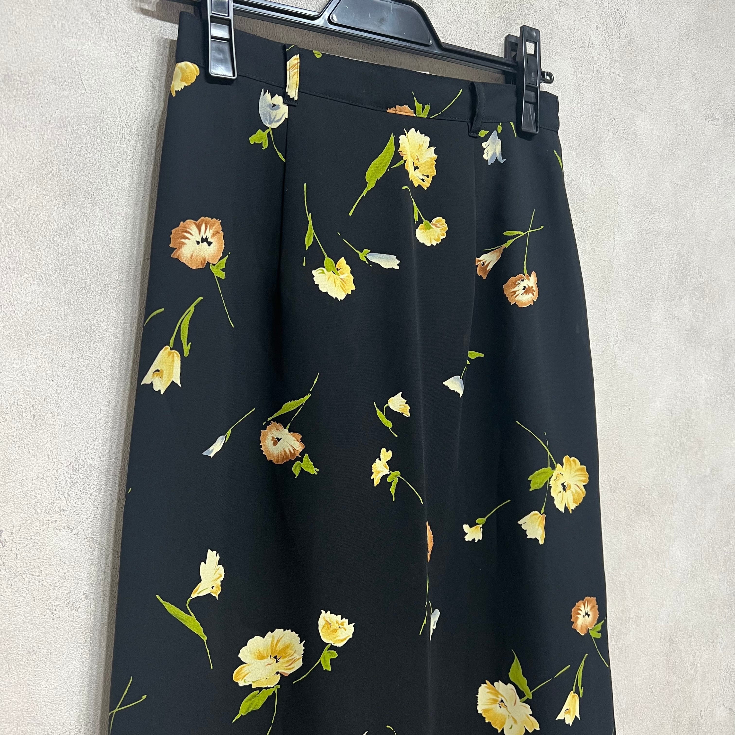 vintage 花柄モチーフスカート 日本製 ブラック ロングスカート 古着 レディース