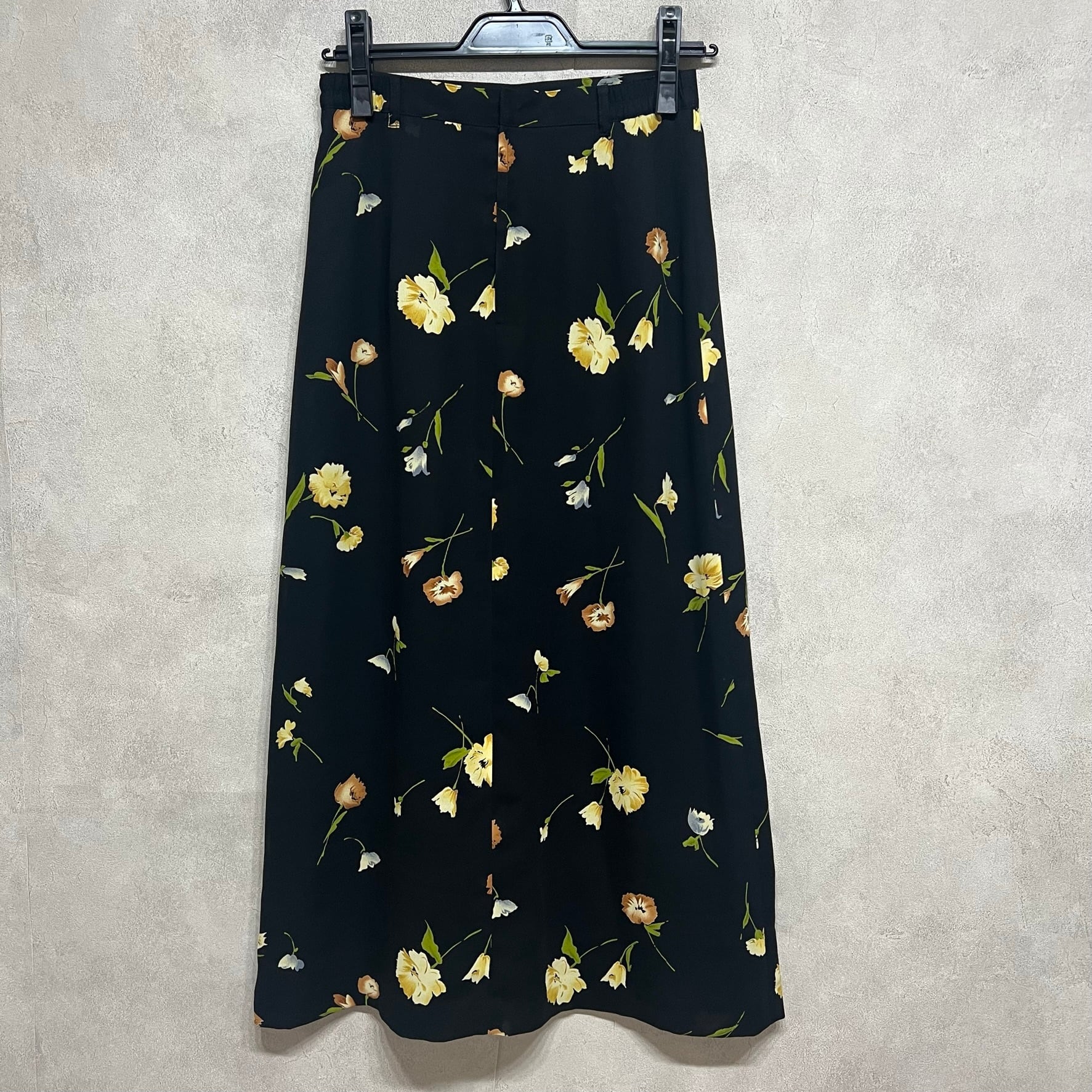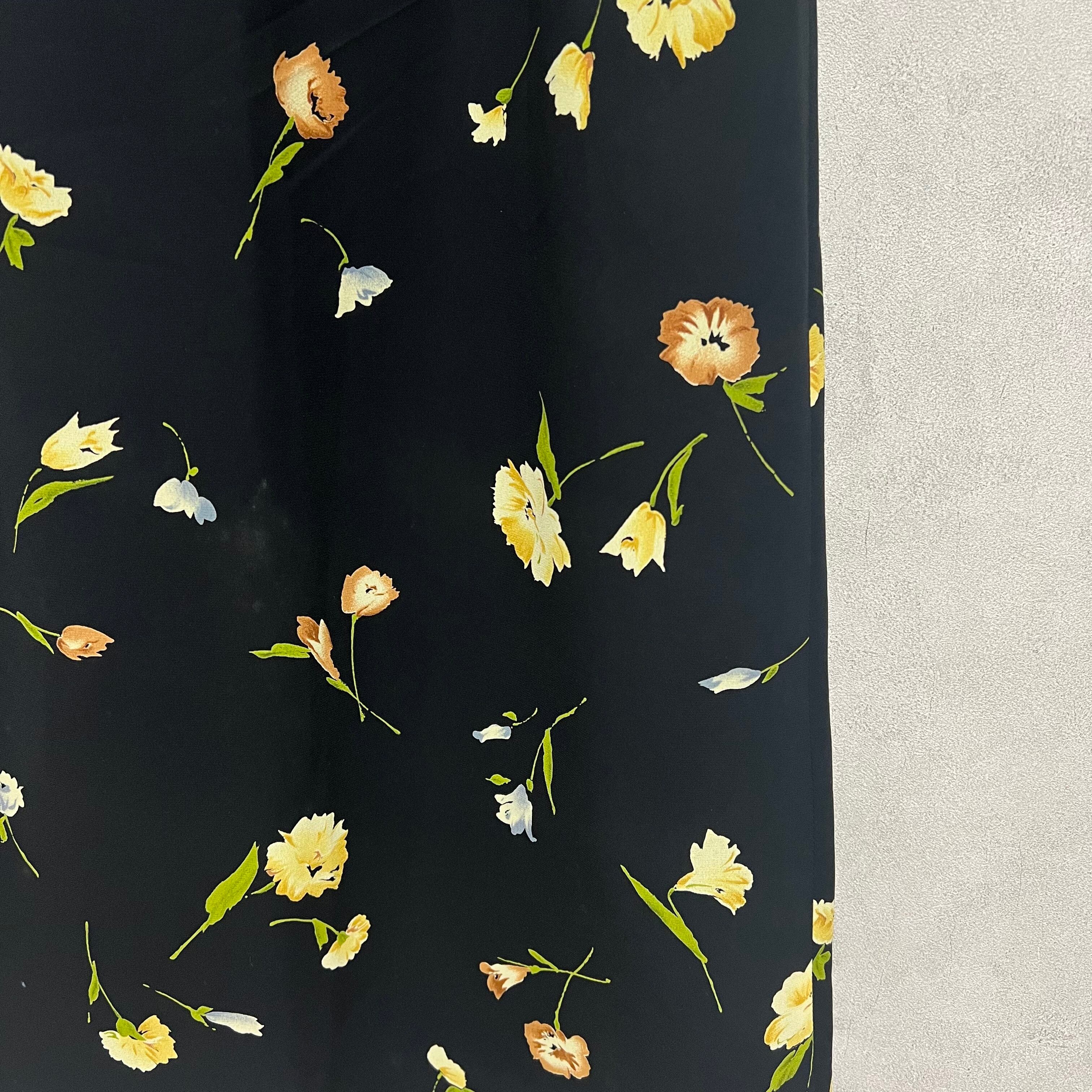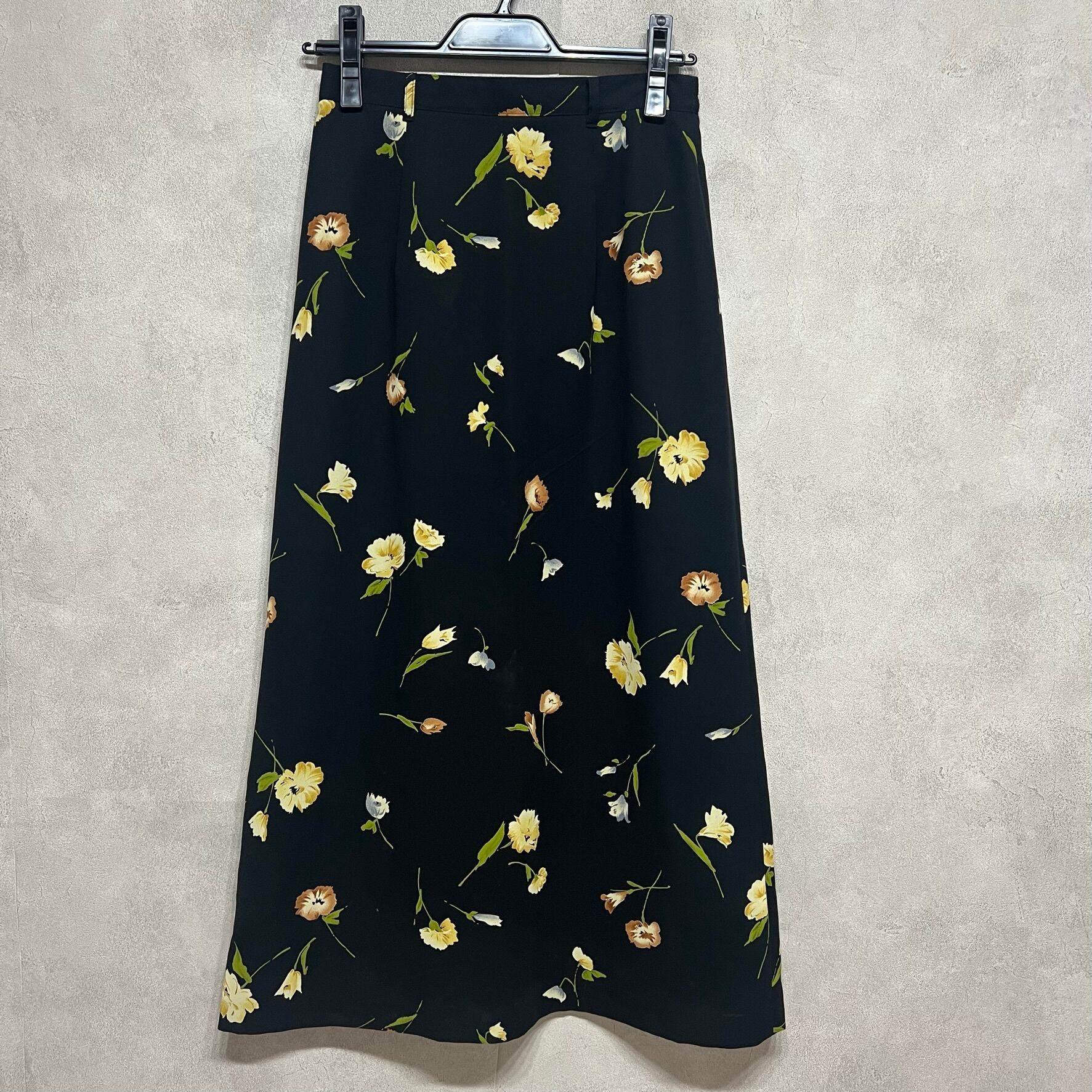 vintage 花柄モチーフスカート 日本製 ブラック ロングスカート 古着 レディース