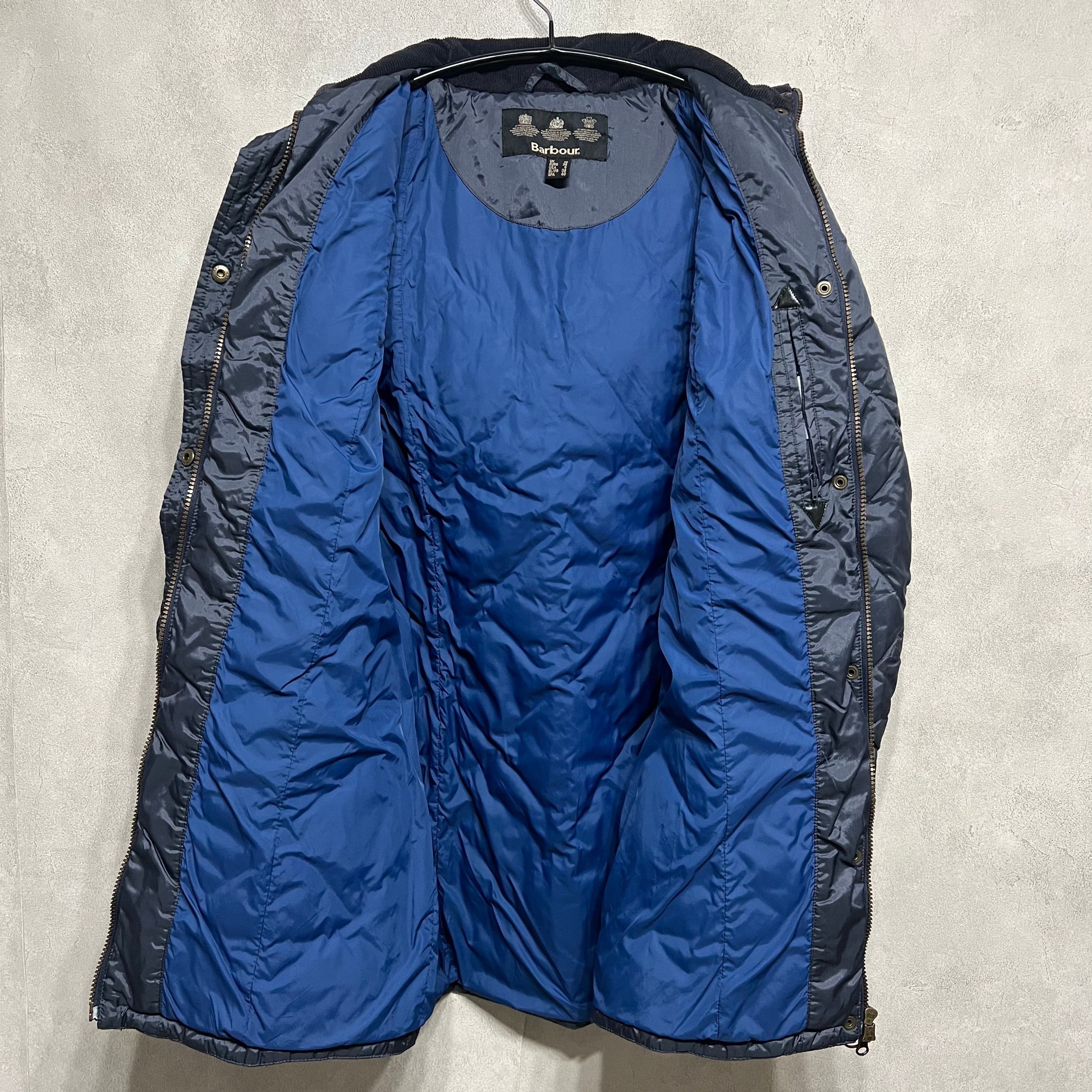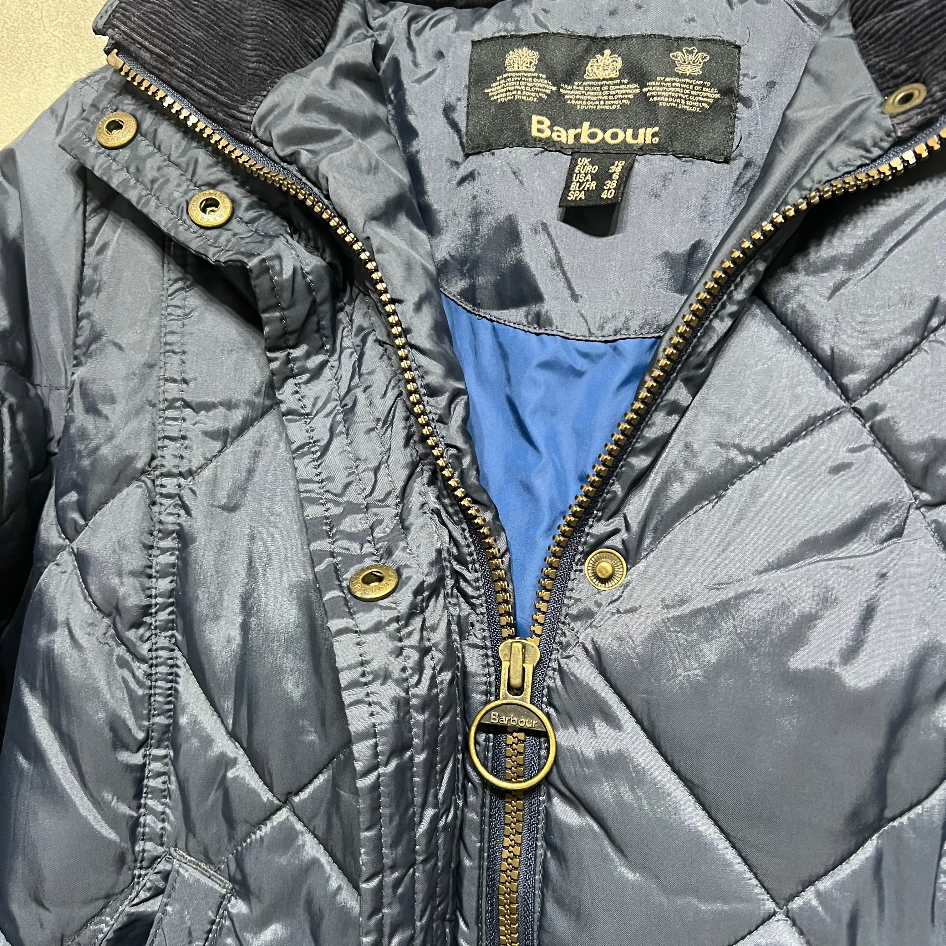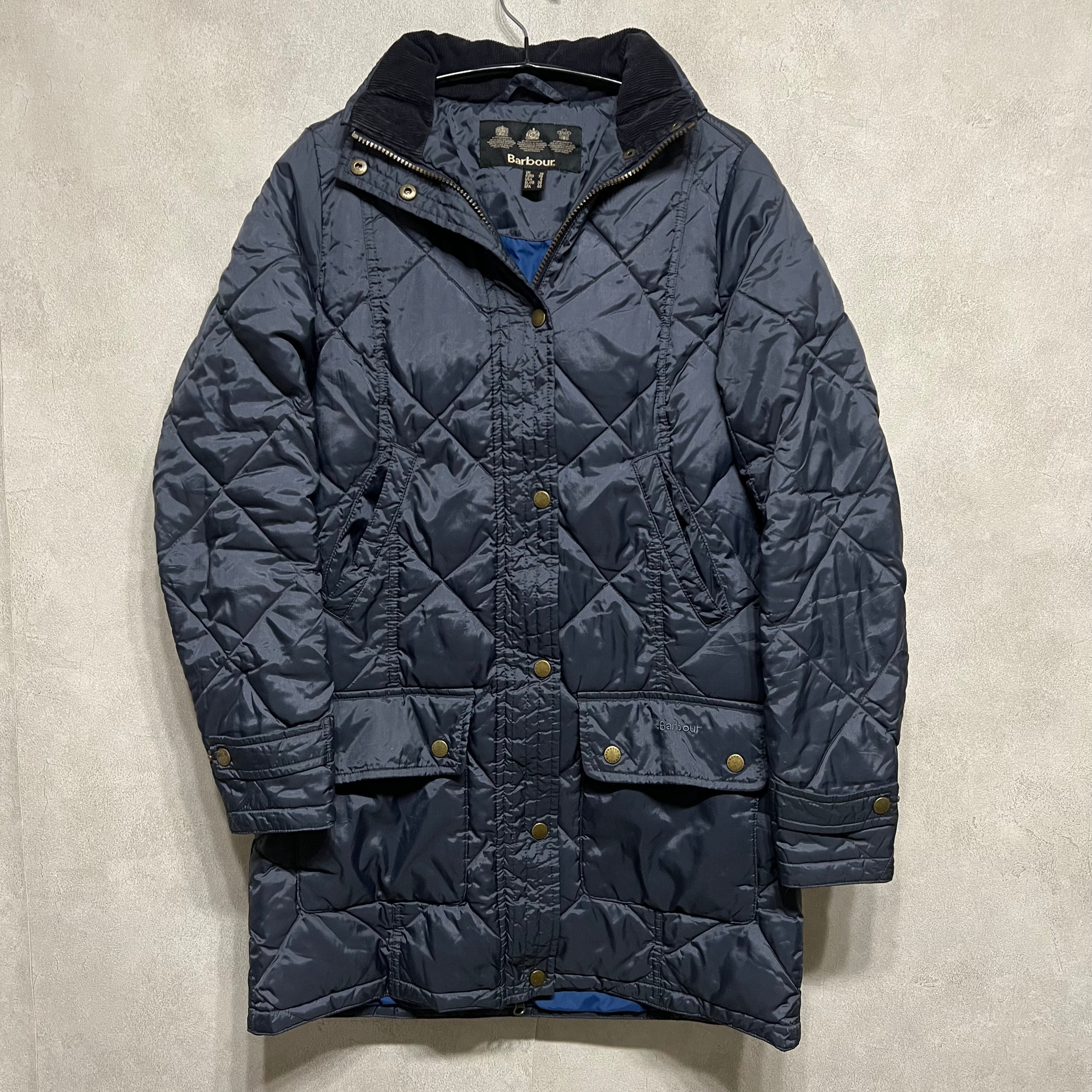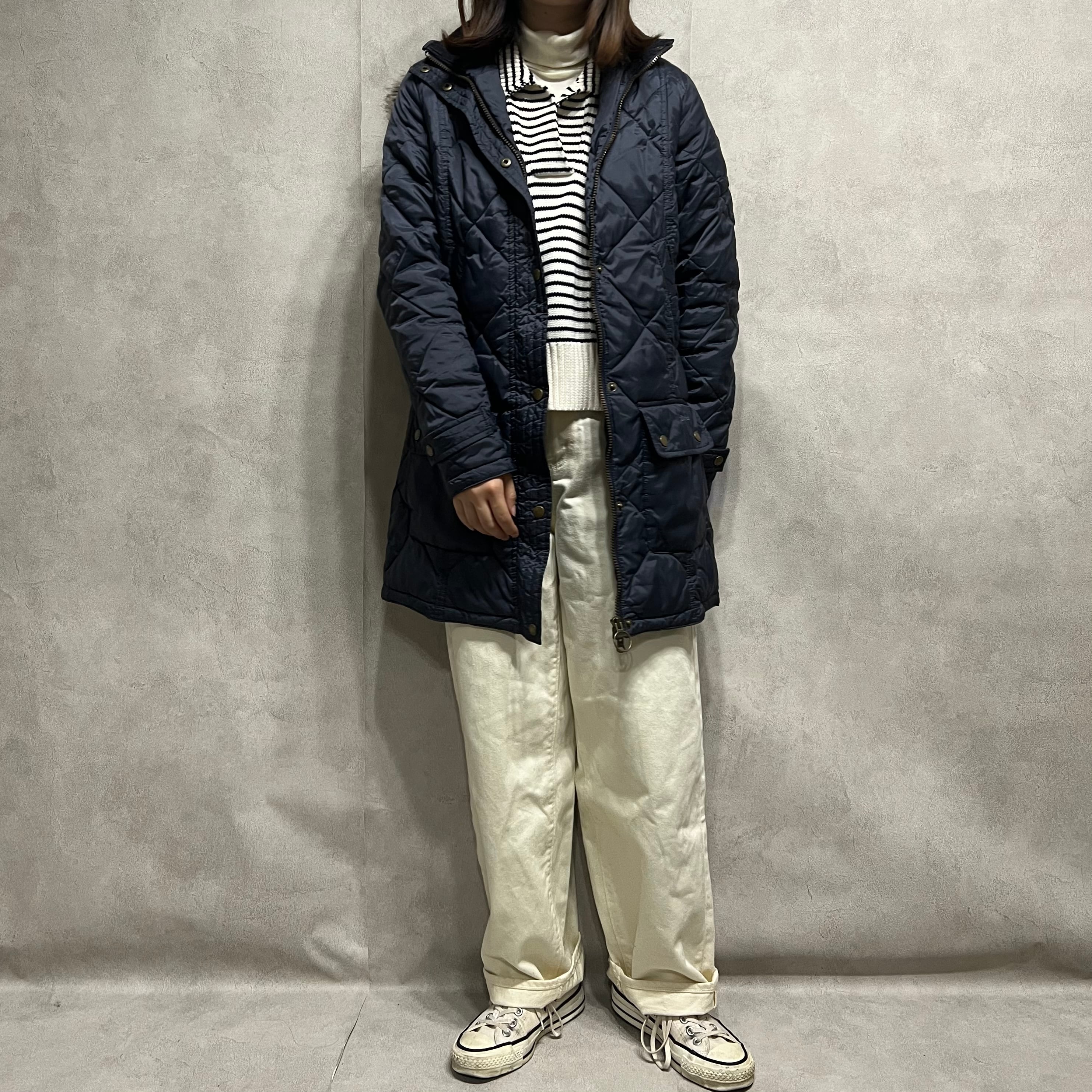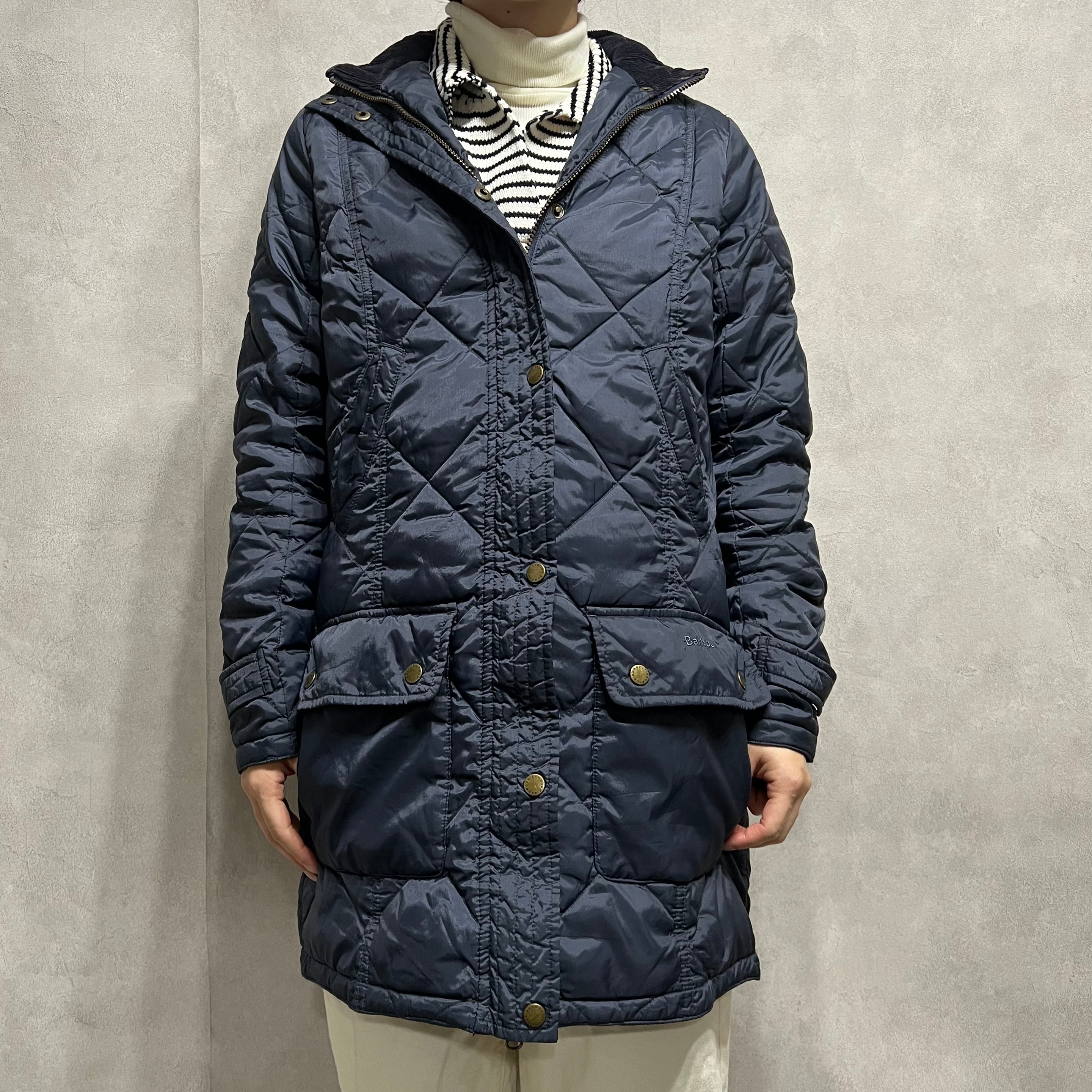 Barbour ファー付きキルティングダウンコート ネイビー アウター バブアー 古着 レディース メンズライク