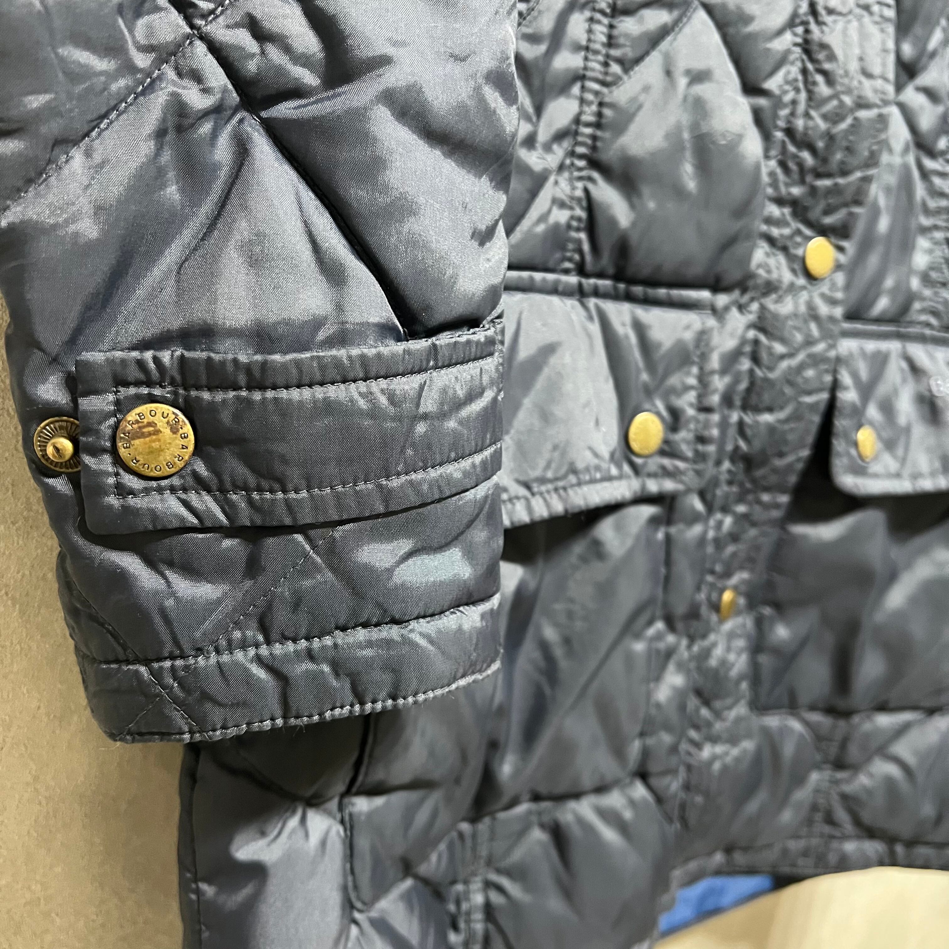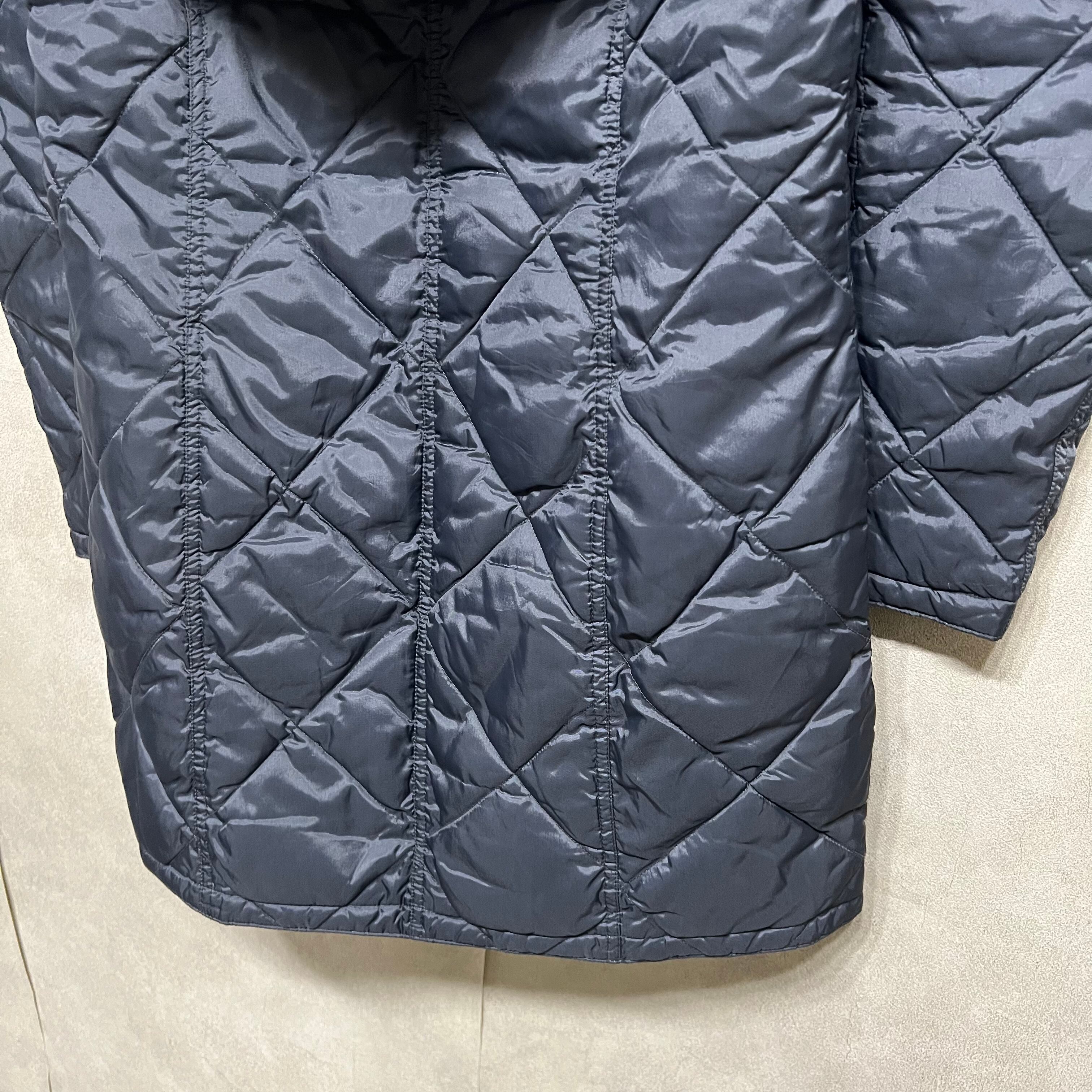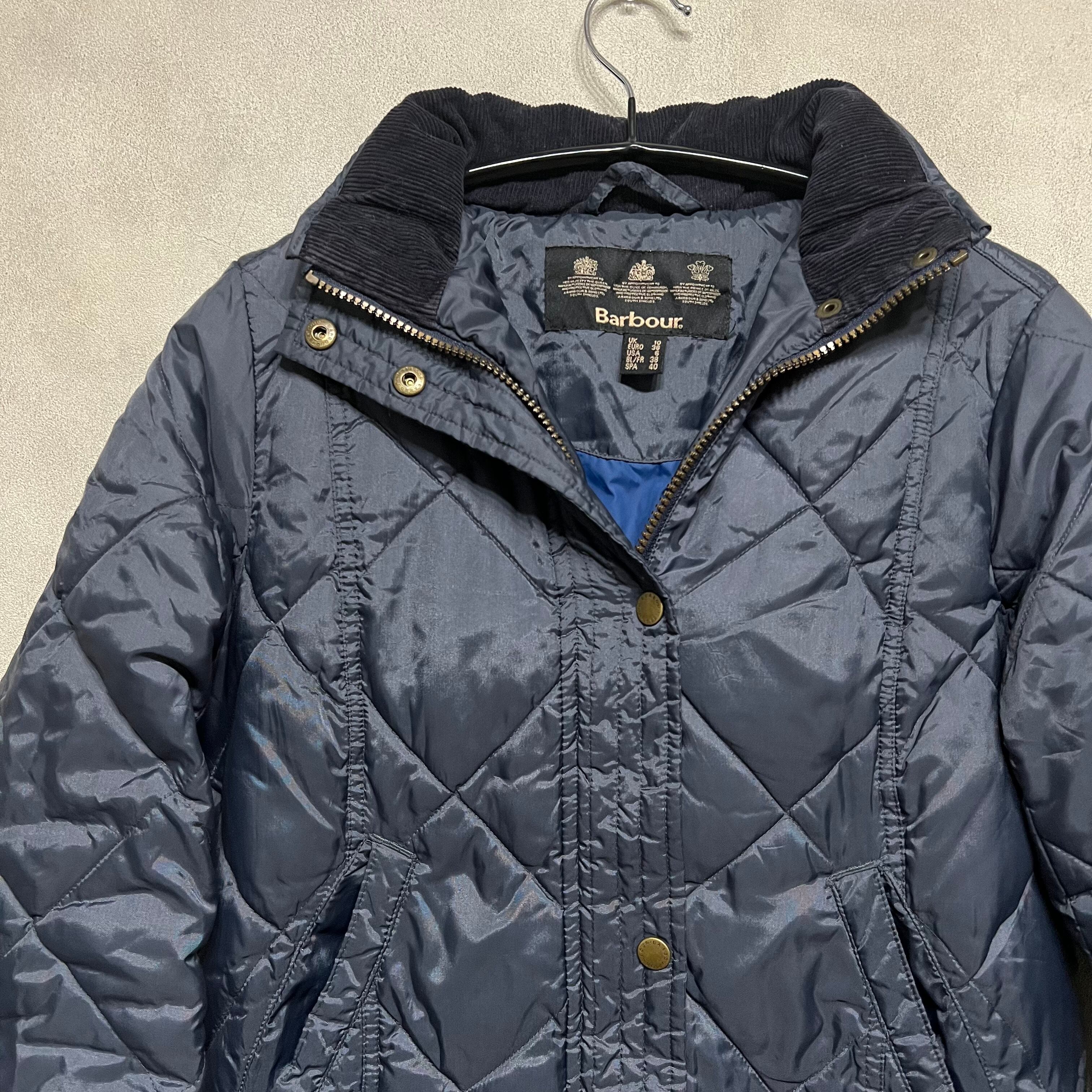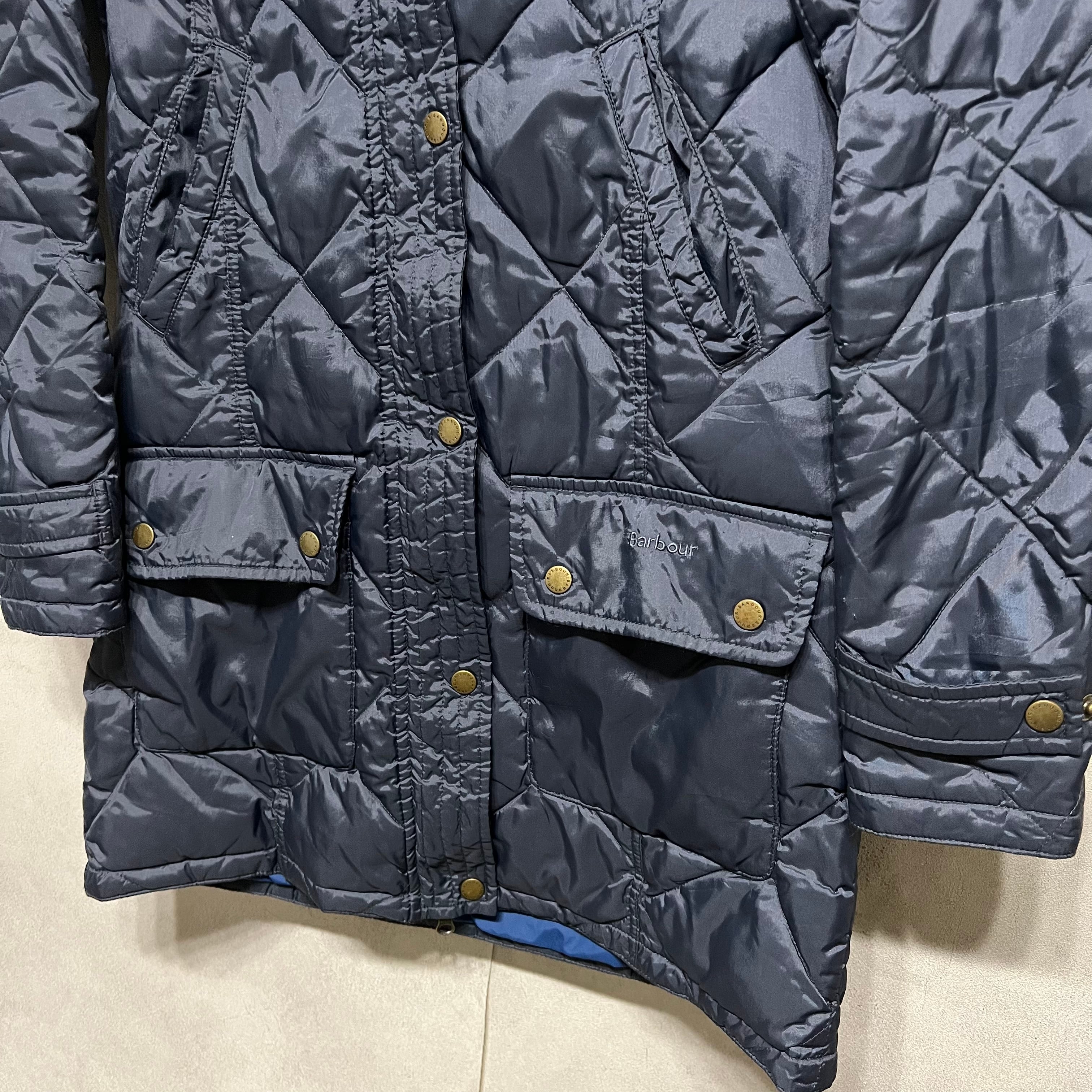 Barbour ファー付きキルティングダウンコート ネイビー アウター バブアー 古着 レディース メンズライク