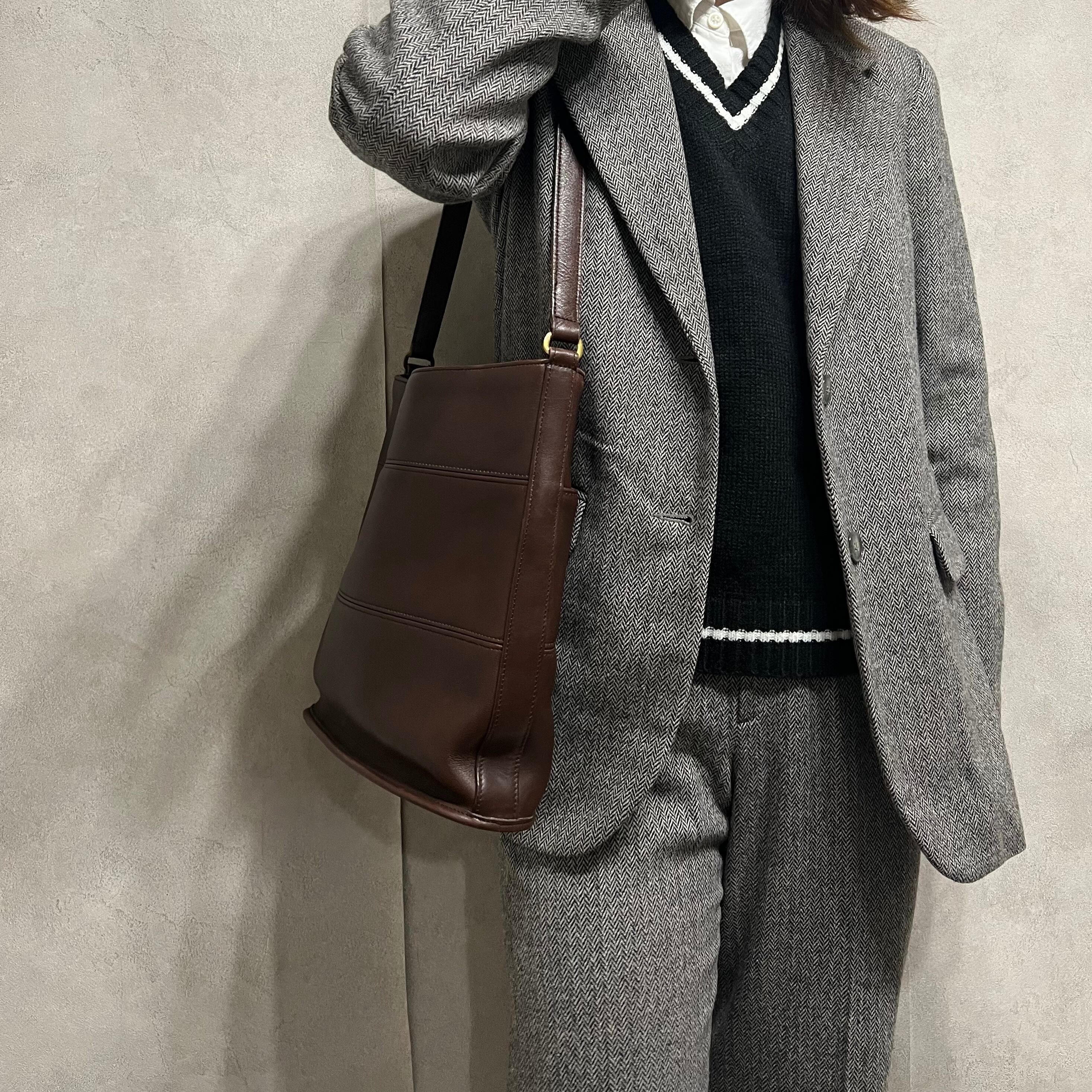 アメリカ製のオールドコーチで上質なグラブタンレザーを贅沢に使い、底はバケツ型の丸みのある形が特徴的です。