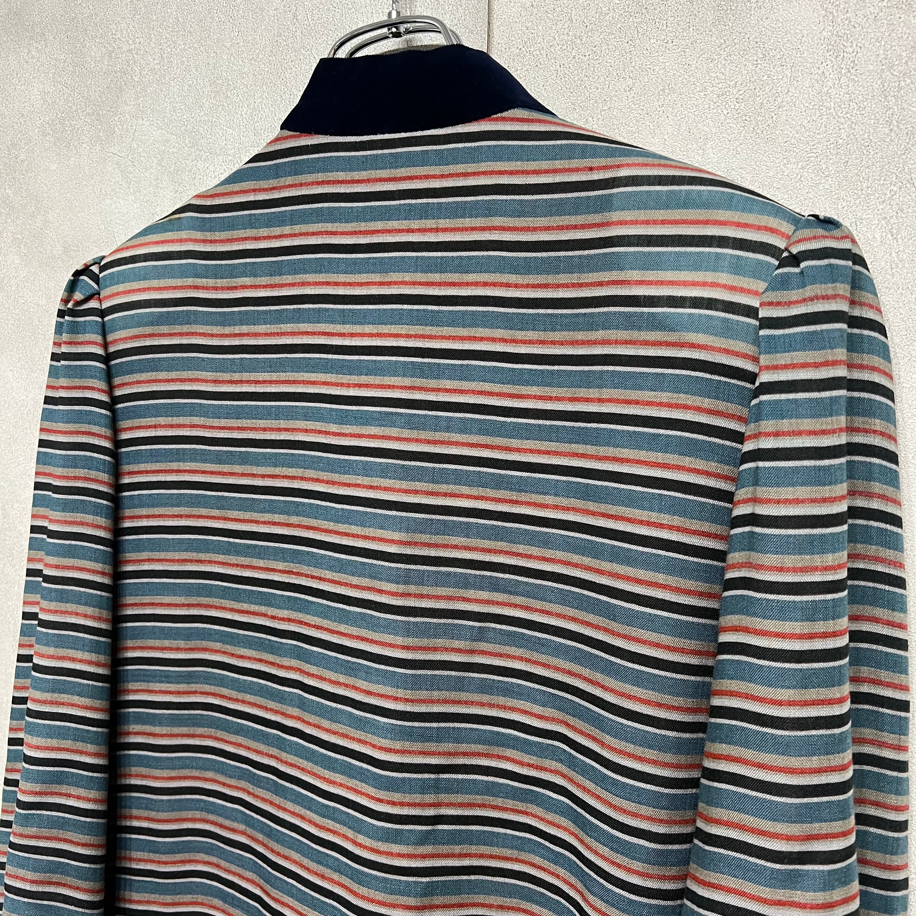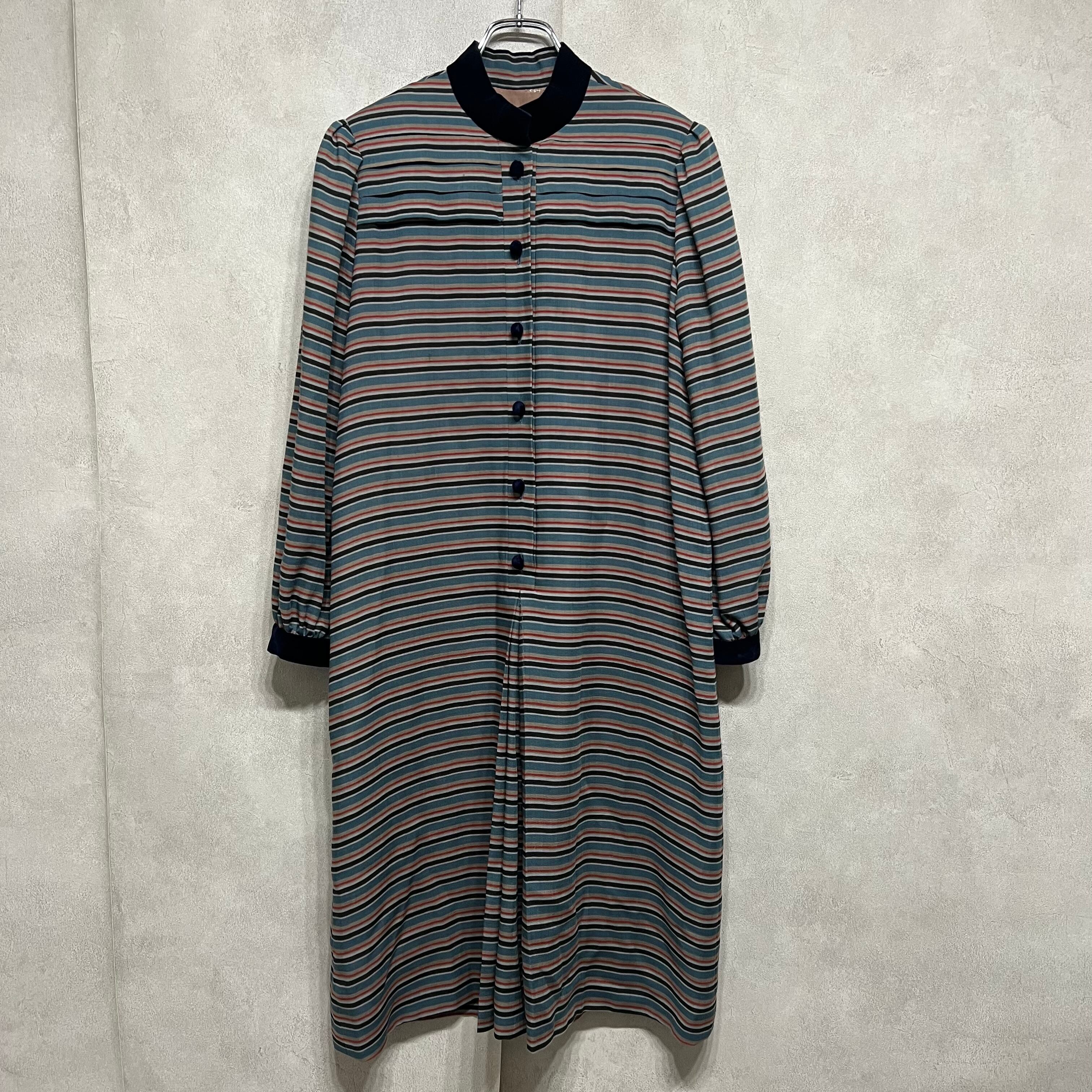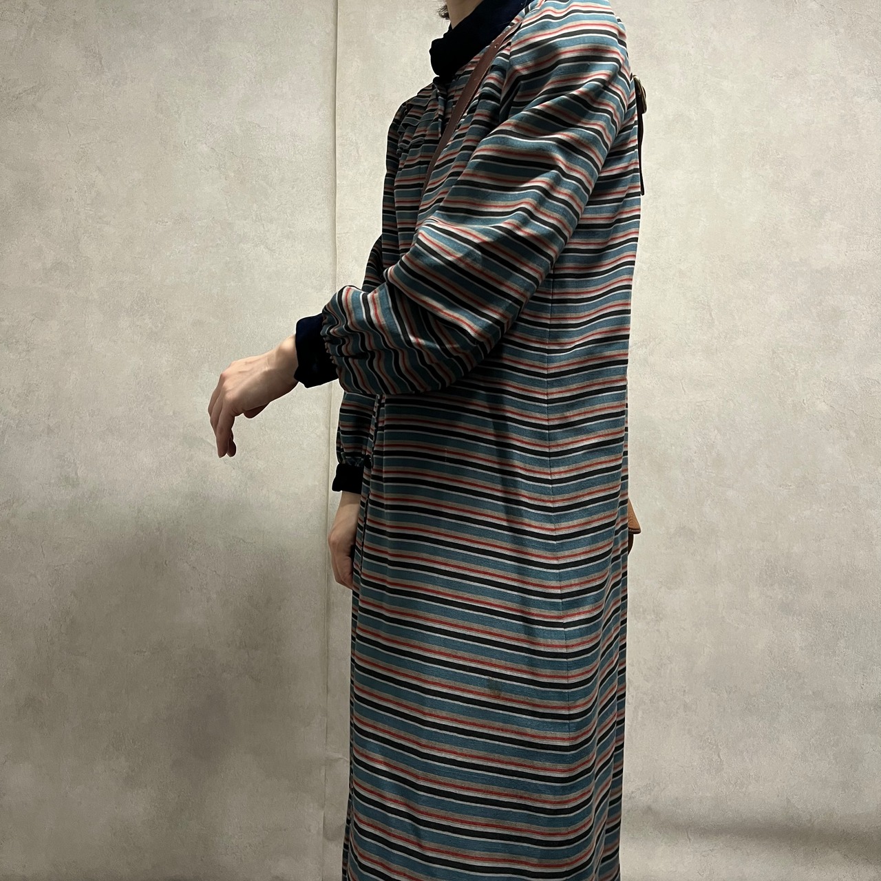 vintage ビッグボタンロングワンピース ストライプ 綿 ストライプ ベロア 古着 カジュアル レディース