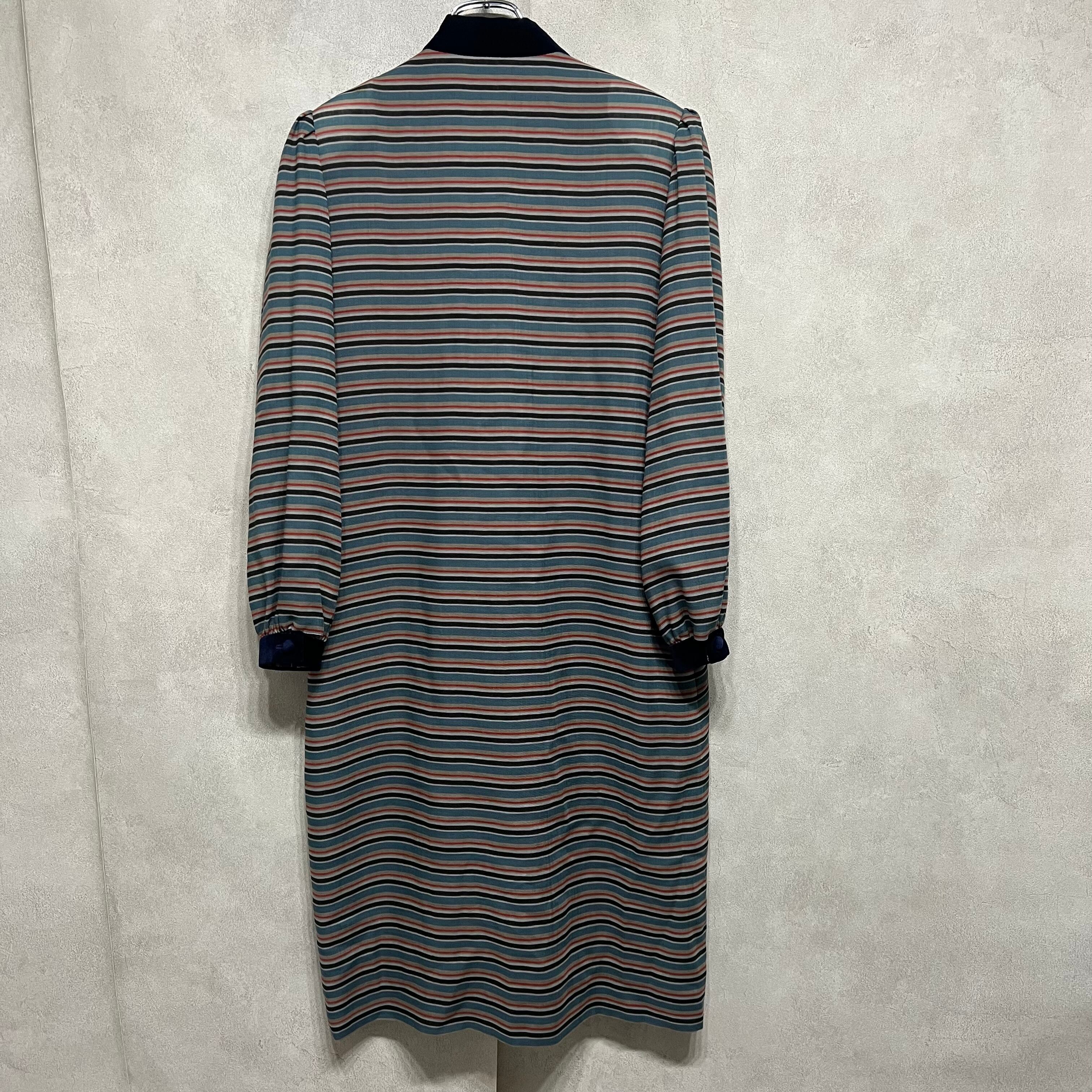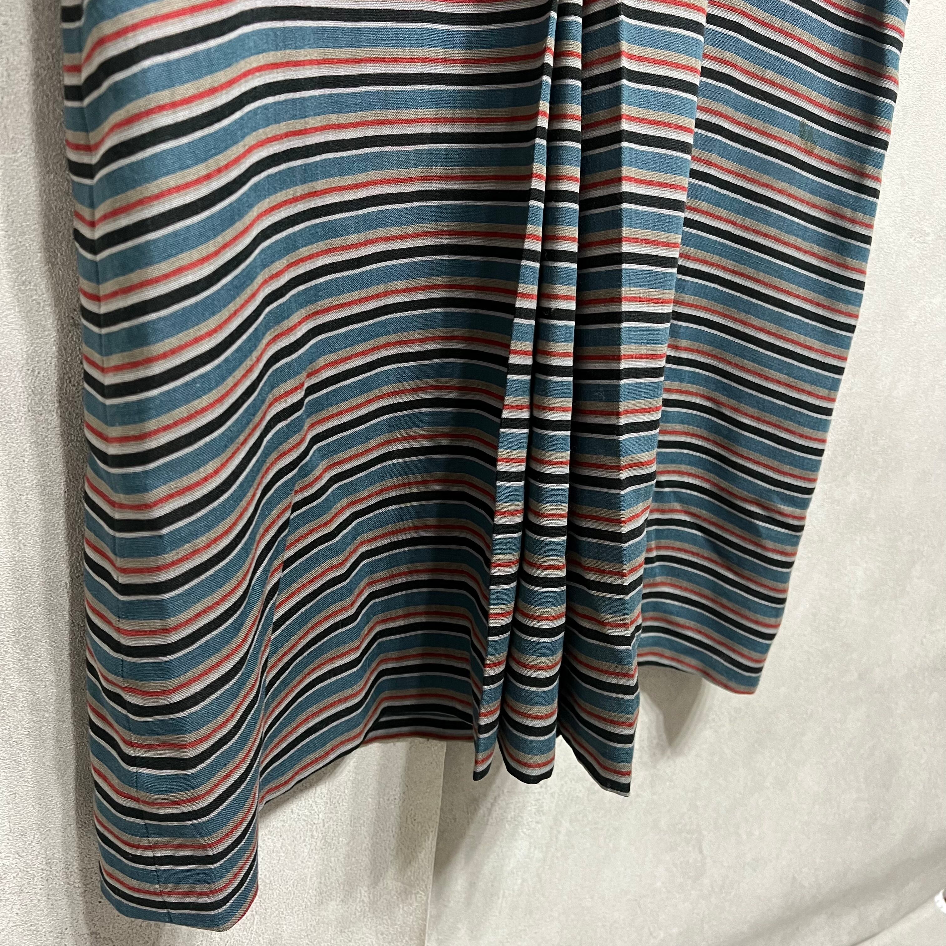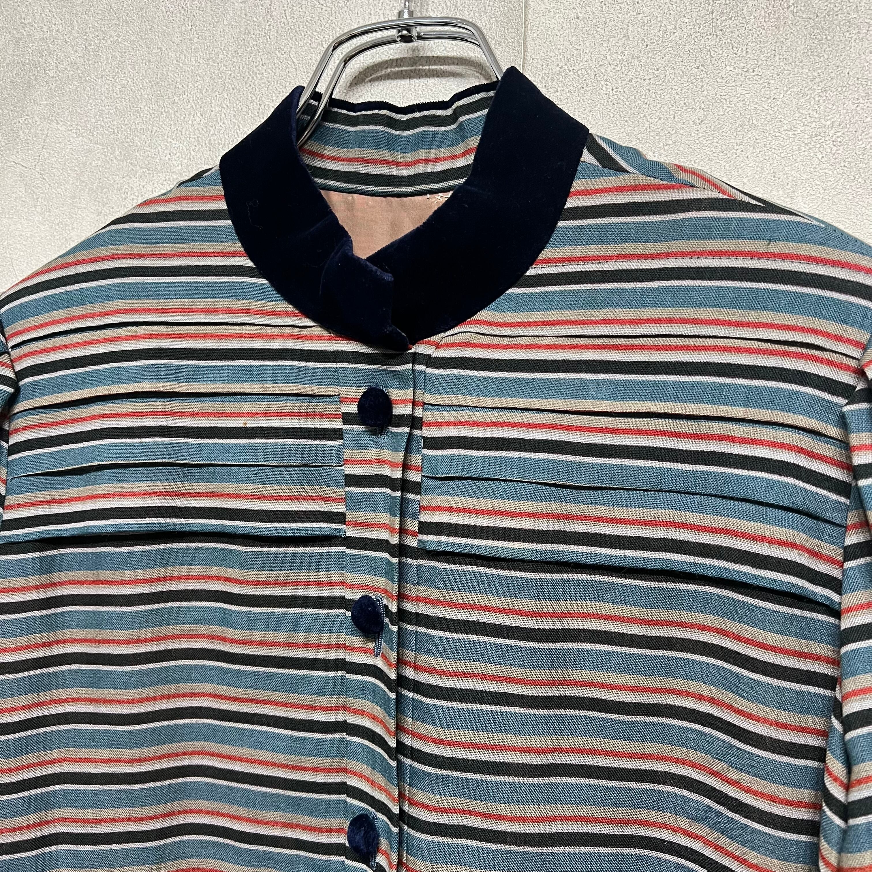 vintage ビッグボタンロングワンピース ストライプ 綿 ストライプ ベロア 古着 カジュアル レディース