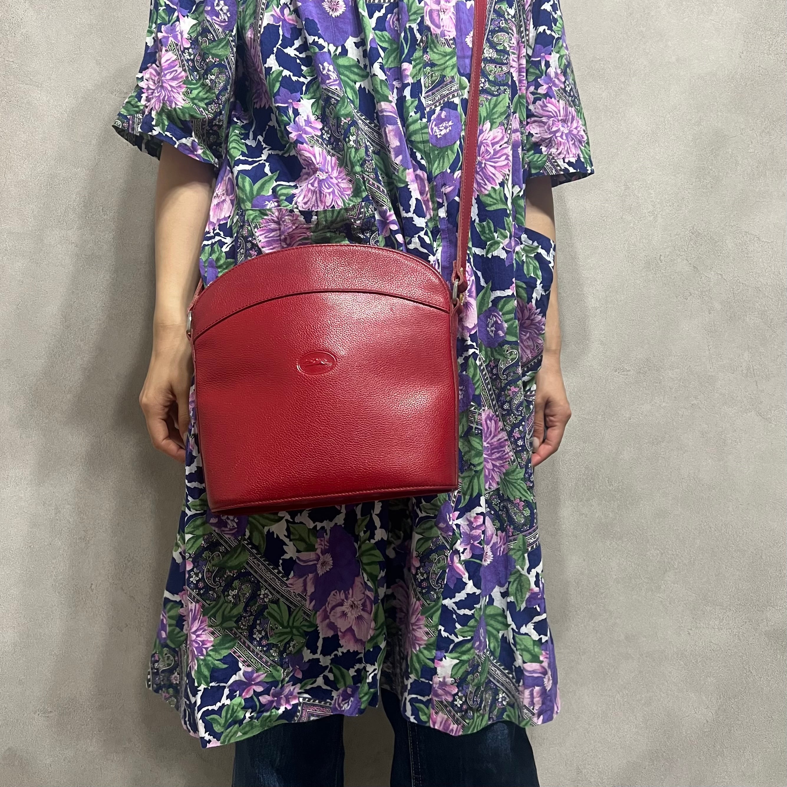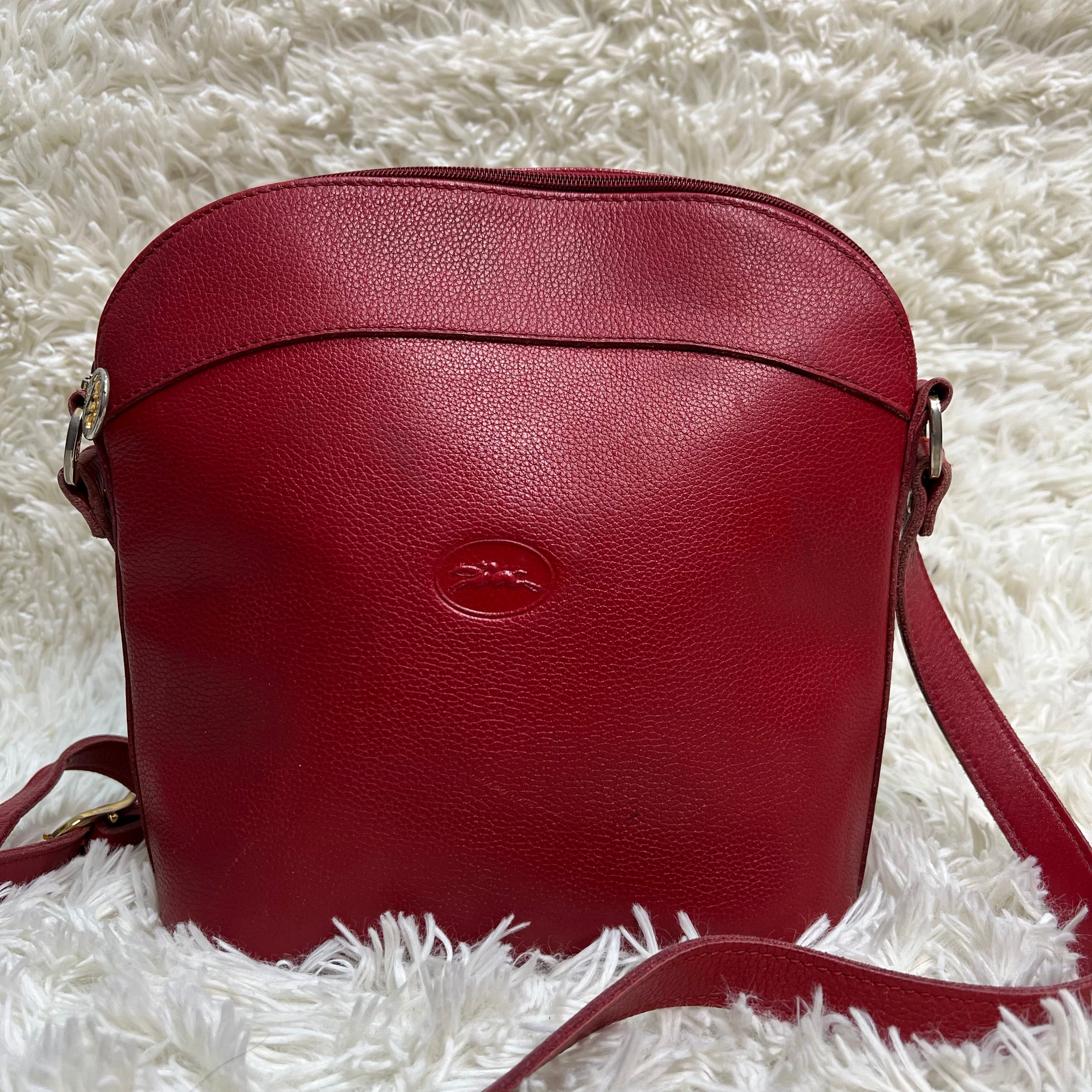 LONGCHAMP ホースロゴショルダーバッグ ロンシャン 赤 レッド レザー
